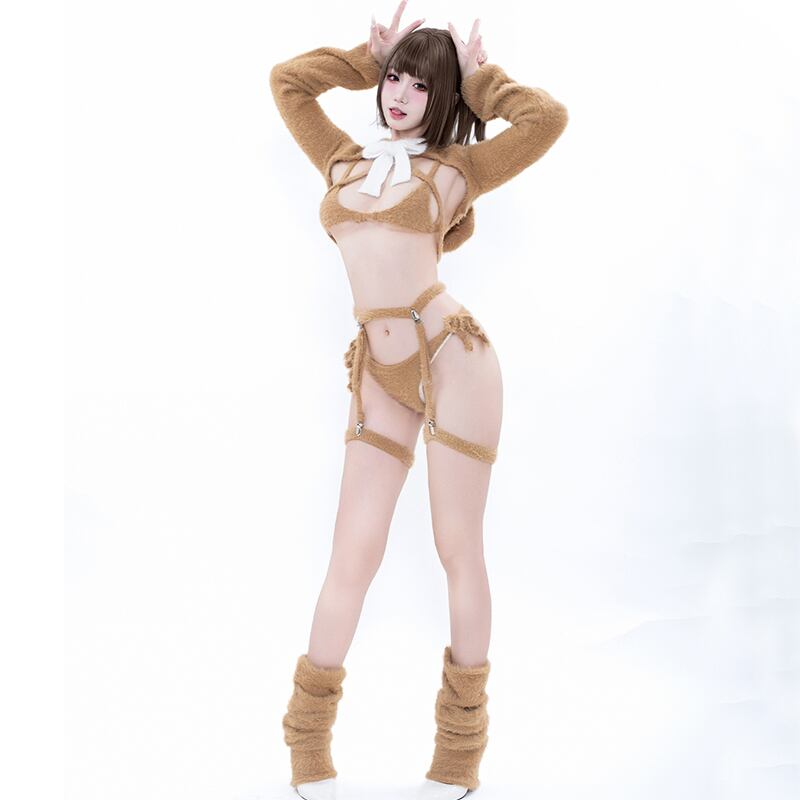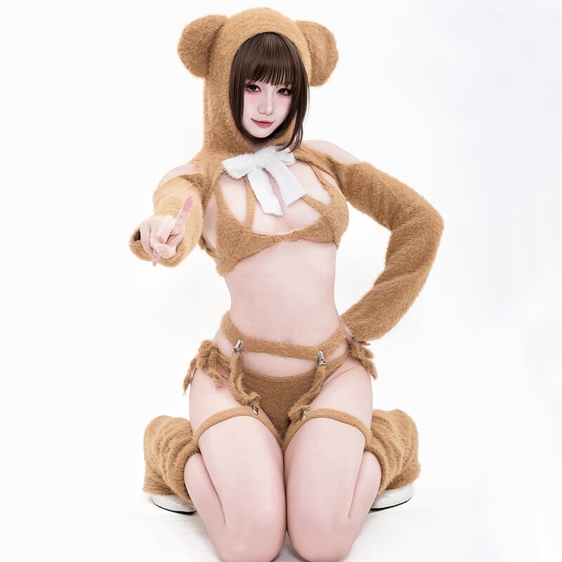 SENMHS セクシー 熊 コスプレ(12点セット) 胸空き ふわふわ 萌え萌え 猫 可愛い ッチ 過激 かわいい 貧乳 ベビードール ハロウィン クリスマス 衣装 ワンサイズ ブラウンdg09