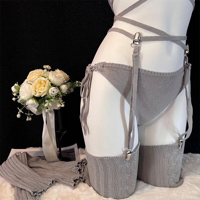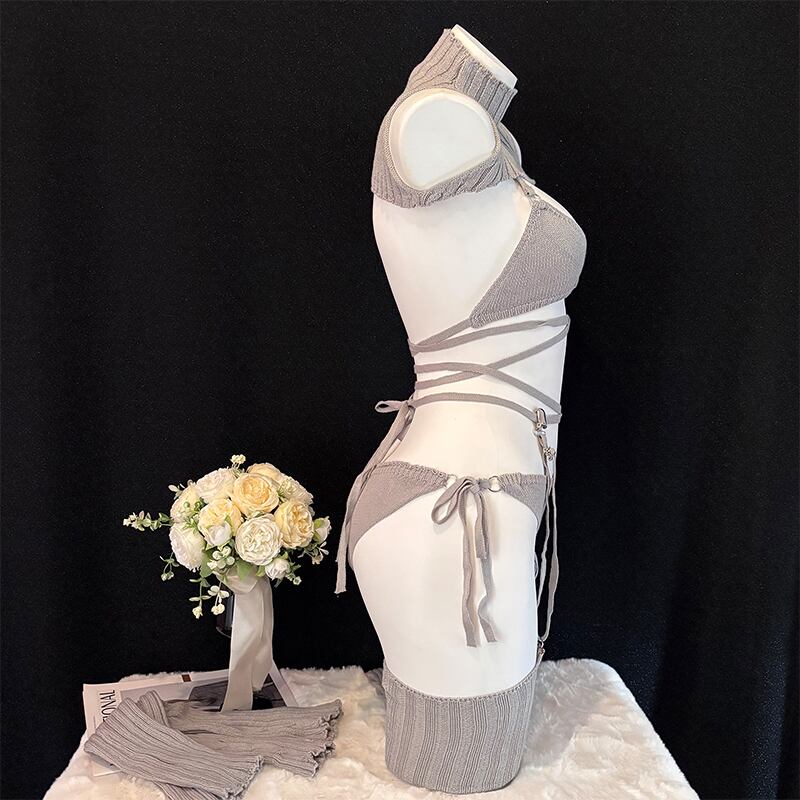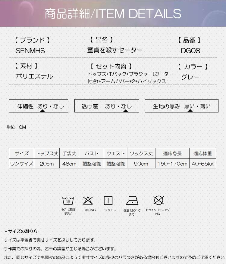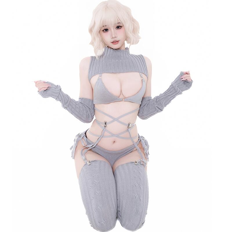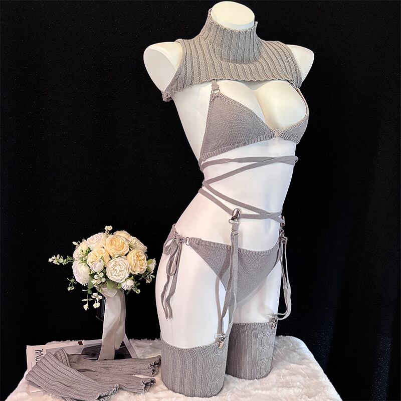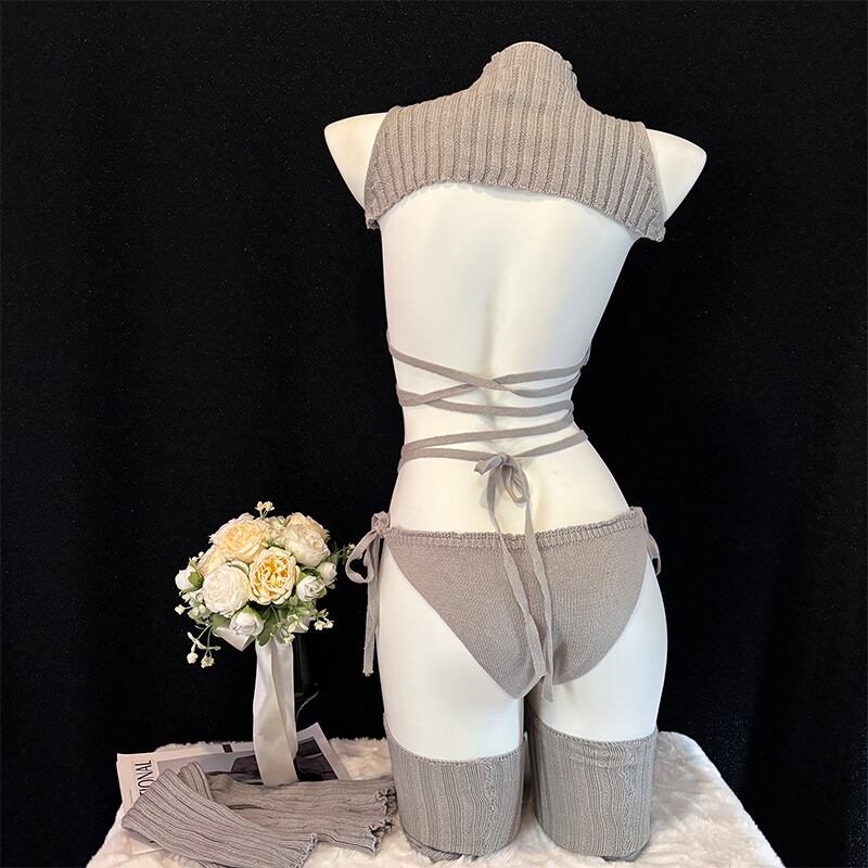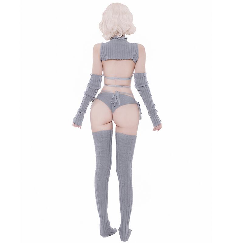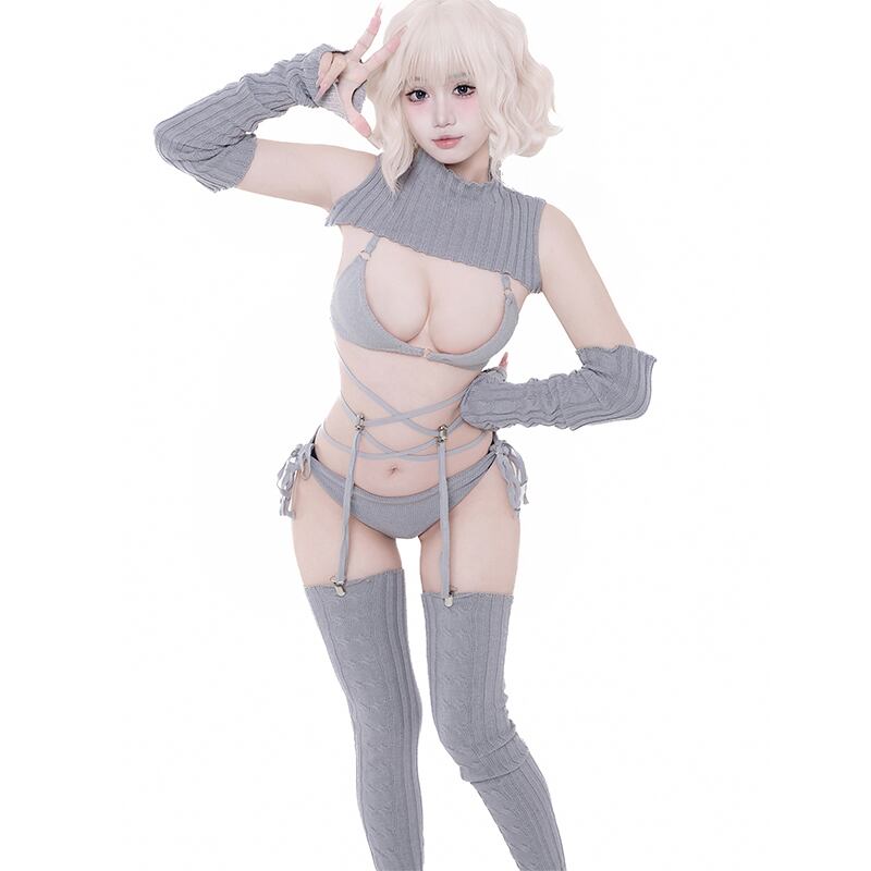 SENMHS 童貞を殺すセーター ロリータ ニット ビキニ セーター セクシー ハイネック ファッション おもしろ コスプレ服 コスチューム 団子少女風 コスチューム イベント パーティー 変装 仮装 撮影 レディース ガーター グレーdg08