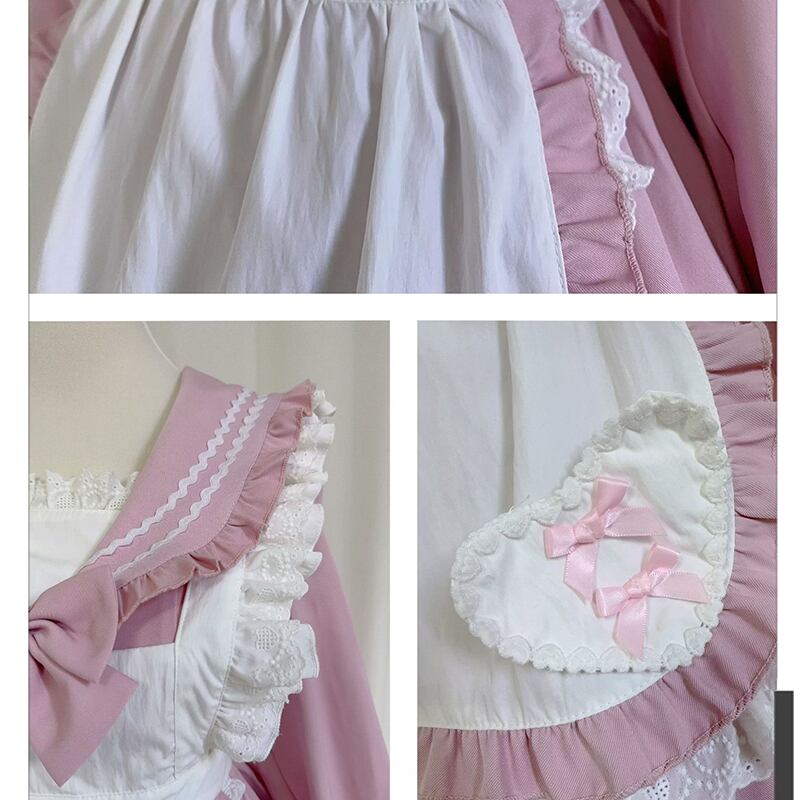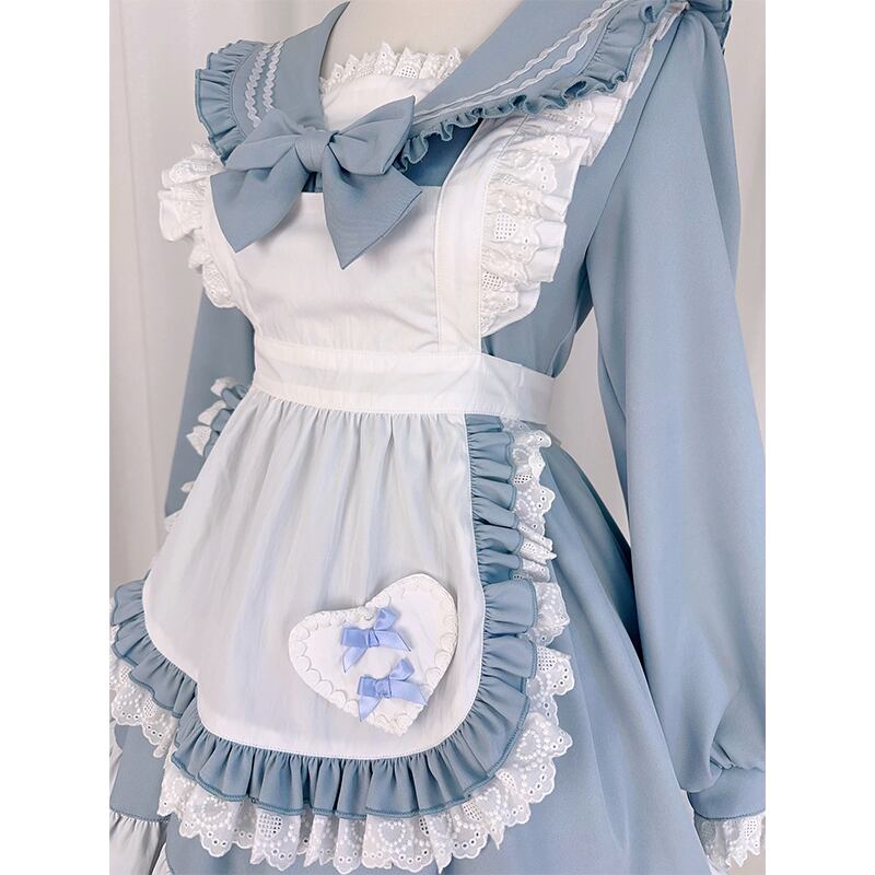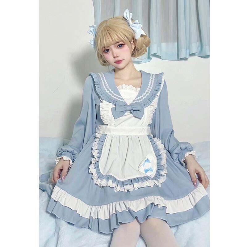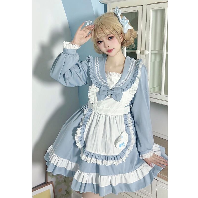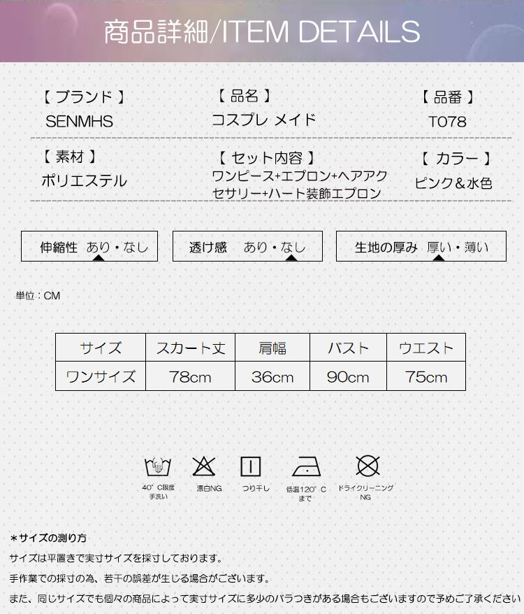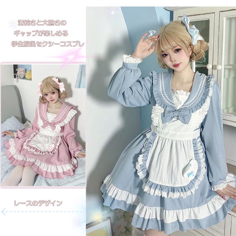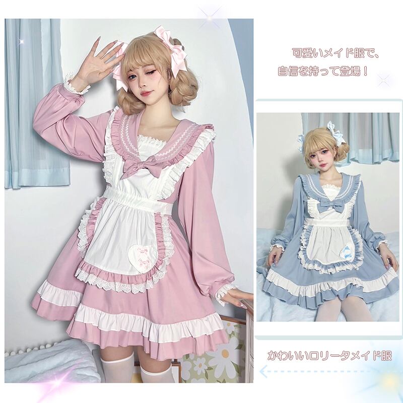 SENMHSメイド メイド服 セット コスプレ コスチューム ロリータ 可愛いフリル付きコスプレ衣装 | ブルー&ピンク デザイン、パーティーやイベントに最適なゴスロリスタイルt078