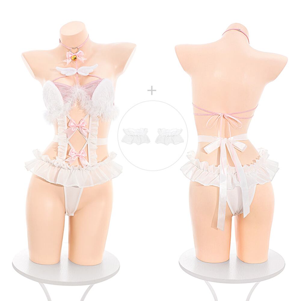 大胆なハイレグカットとふわもこ尻尾、アームリングがアクセントになり、特別な日の演出にぴったり♪