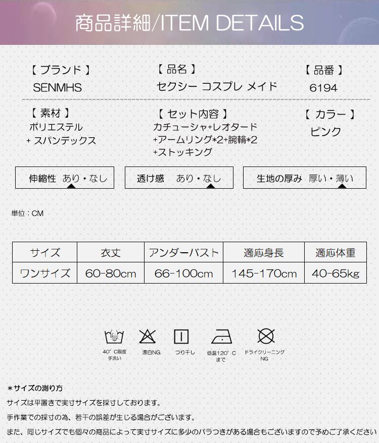 SENMHS セクシーなメイドコスプレ かわいいランジェリーセット 透け透け オープンクロッチ ワンサイズ ピンク カチコーシャ・レオタード・ストッキング付き6194