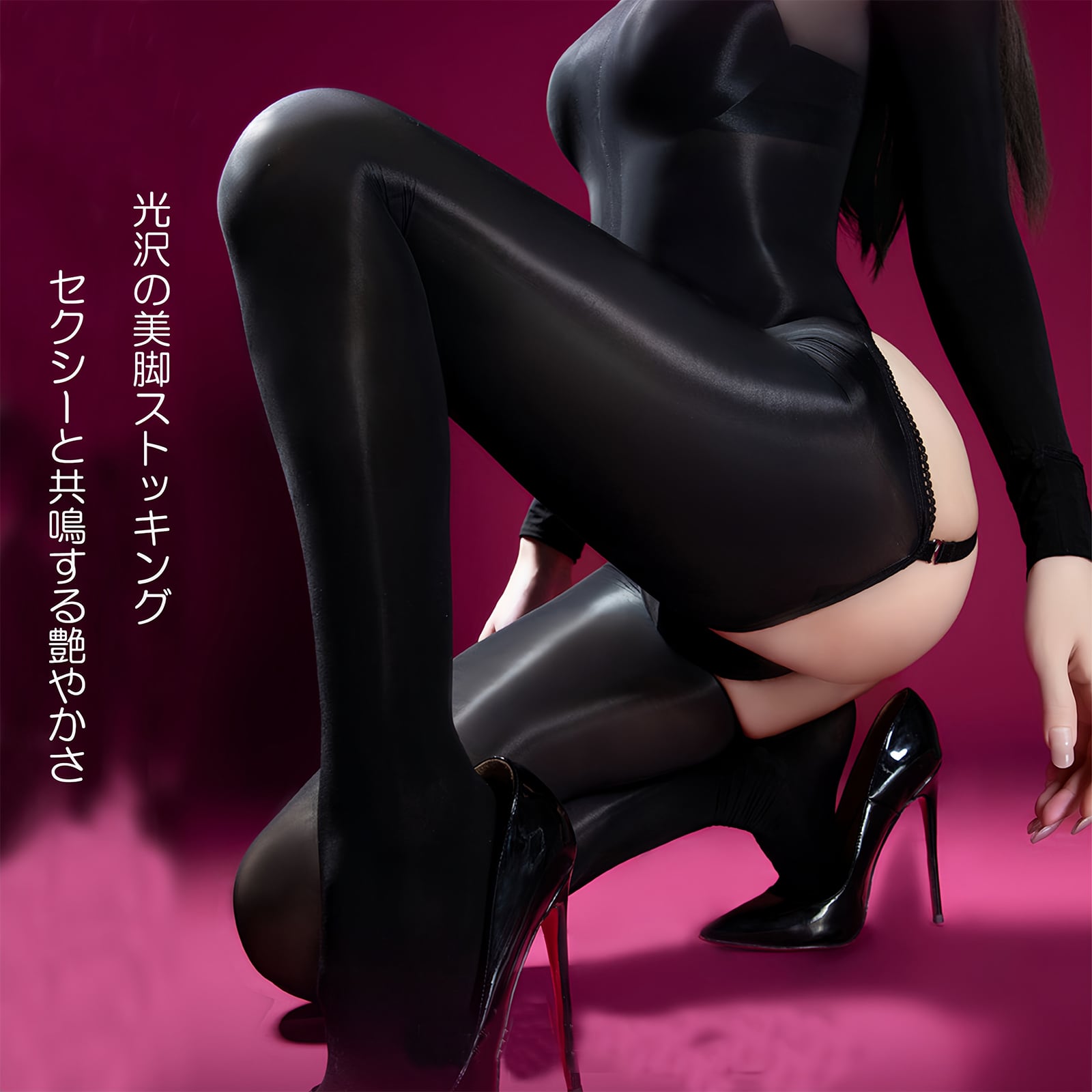 SENMHS 全身ボディストッキング レディース セクシー ランジェリー 開 crotch 超薄型 8D オイル光沢 シースルー タイツ風 ハイレグ 透け感 美脚 インナー コスプレ 衣装 勝負下着 912針 高密度 着圧風 ボディスーツ 70kg対応 ブラックe006
