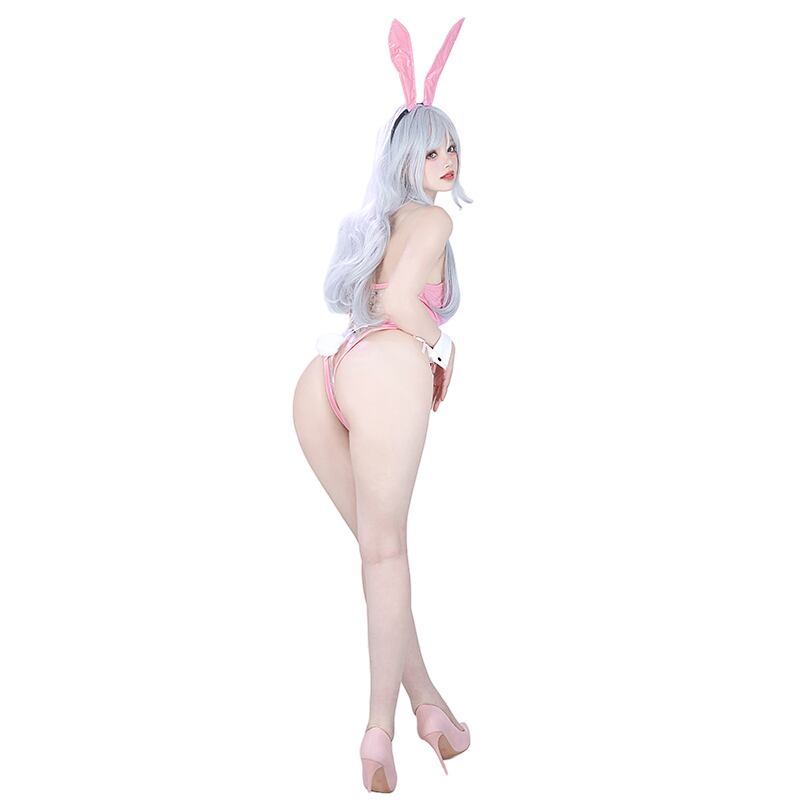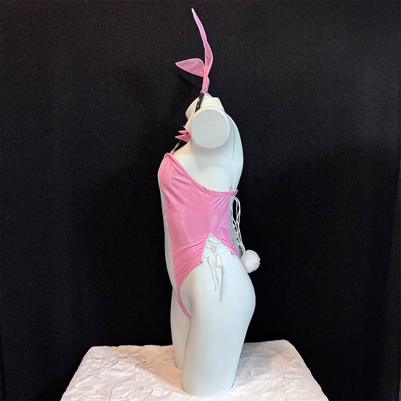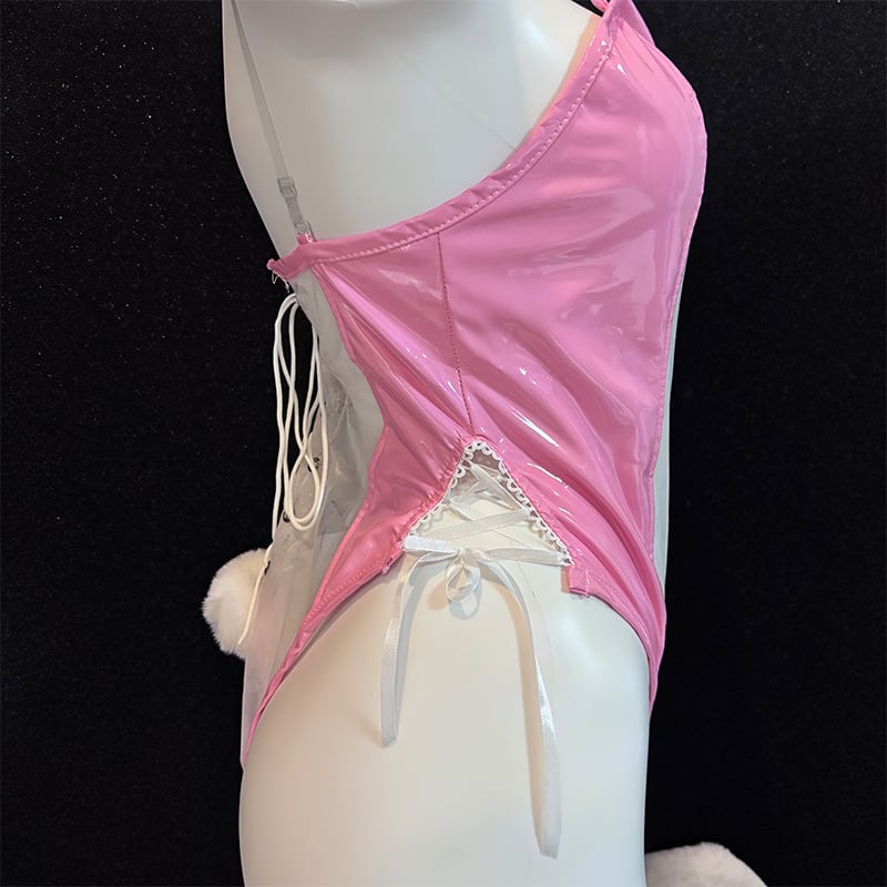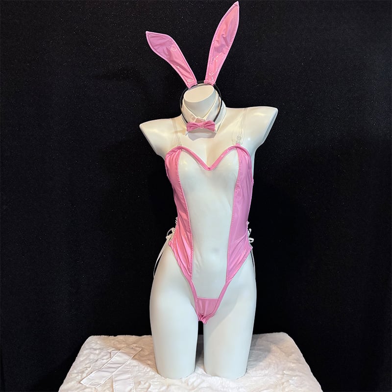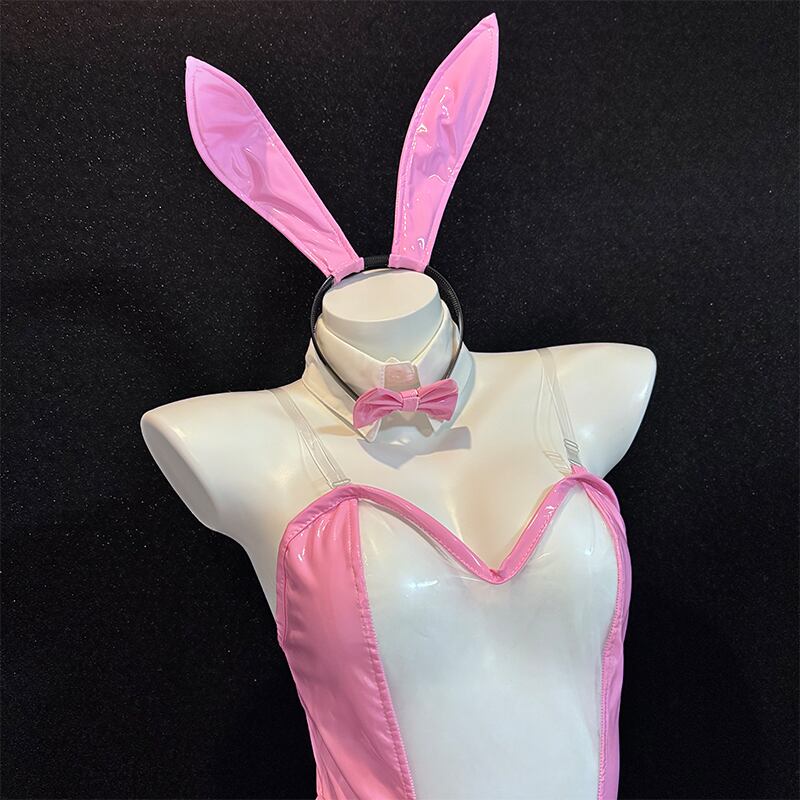 SENMHS 逆バニー シースルー バニーガール コスプレ セクシー 小悪魔 オープンクロッチ バニー コスチューム レオタード 仮装 ハイレグ 大胆 ランジェリー うさぎ耳 カチューシャ パーティー レディース ピンクmh26