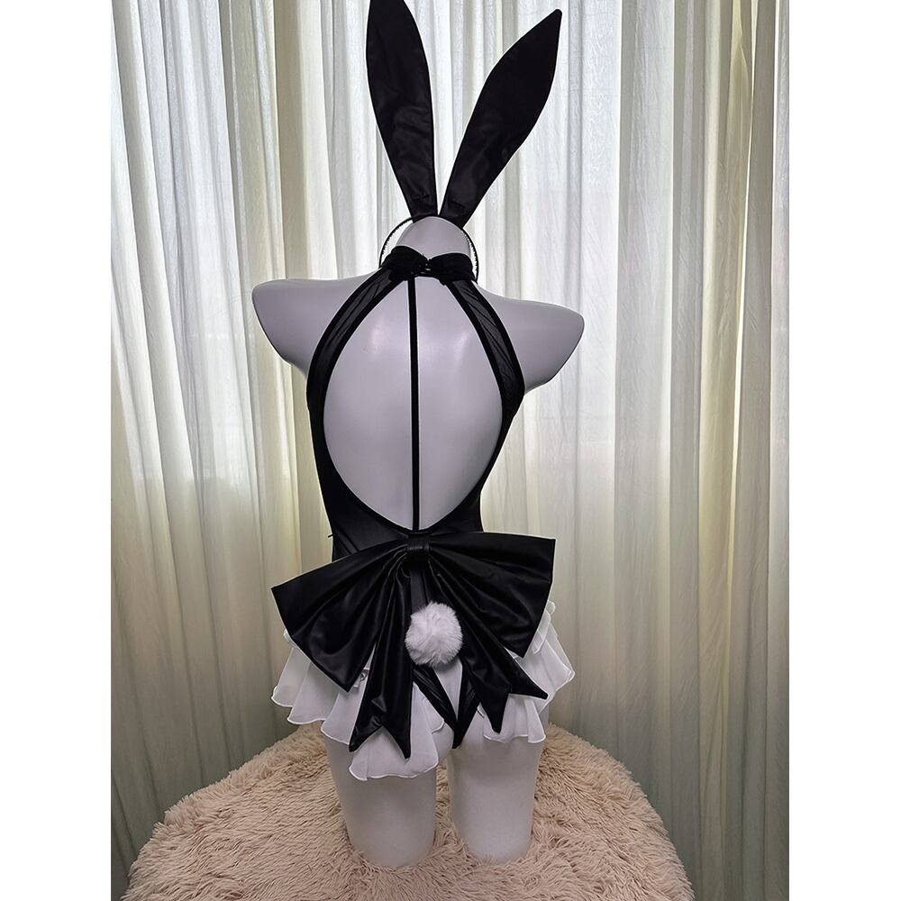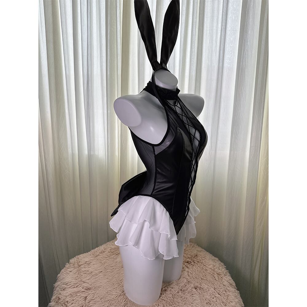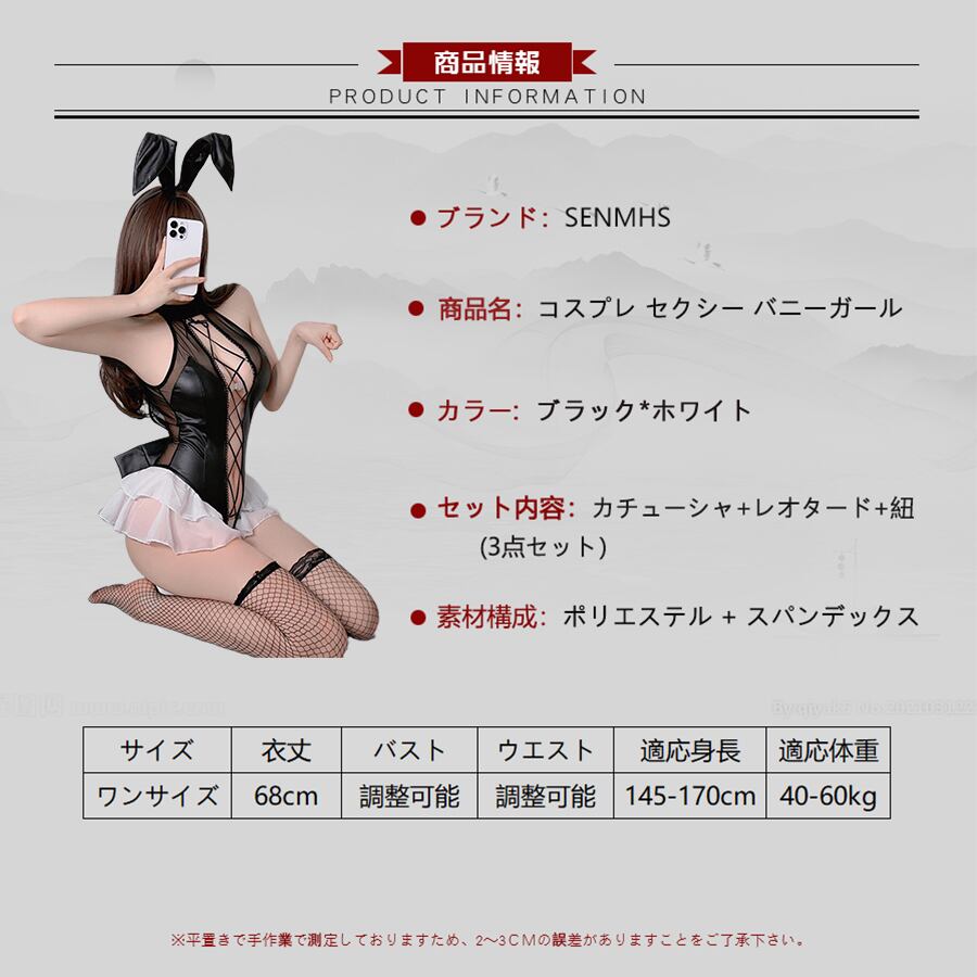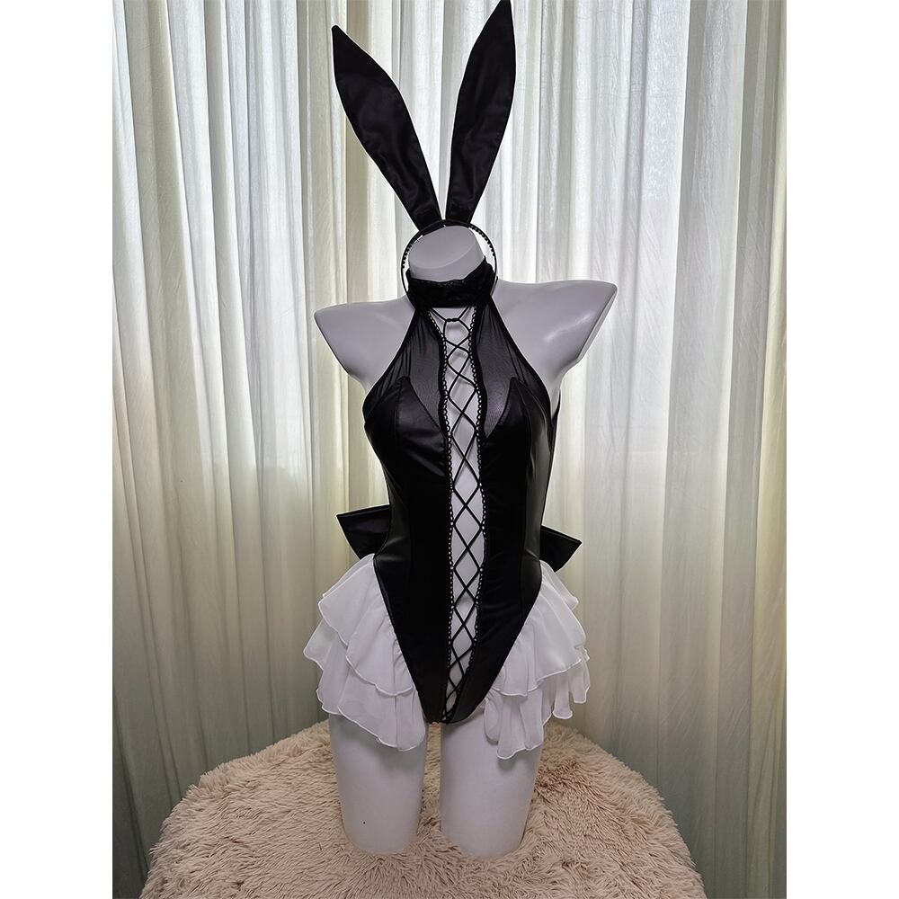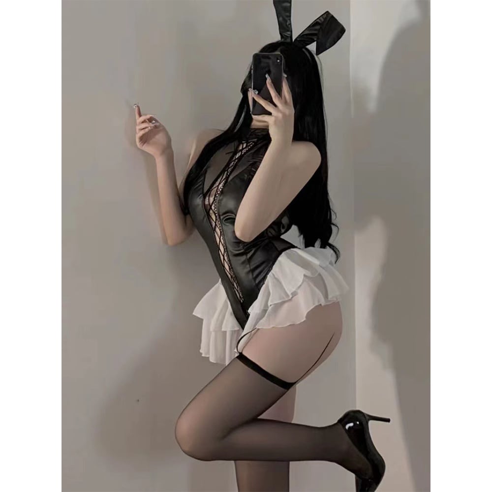 SENMHS バニーガール コスプレ うさぎ バニー ボンテージ 小悪魔 ハイレグ レオタード コスチューム 仮装 大胆 PU革 ランジェリー うさ耳 カチューシャ レディース パーティー クリスマス イベント ハロウィン 撮影 ブラック8347