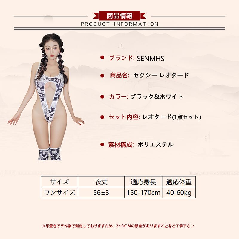 SENMHS アニメキャラクター風プリント スク水風セクシーシースルーレオタード 極薄 超光沢 ぴたフィット!可愛いタイトコスプレ衣装 ルームウェアにも◎ レディース ワンサイズ ホワイト6851