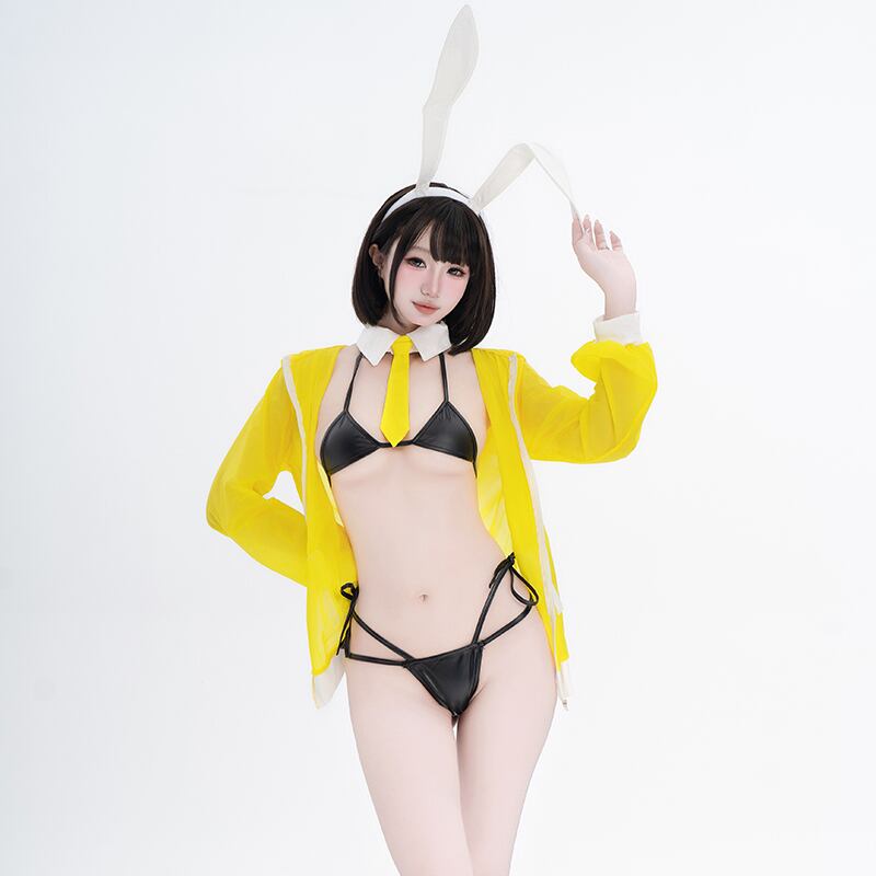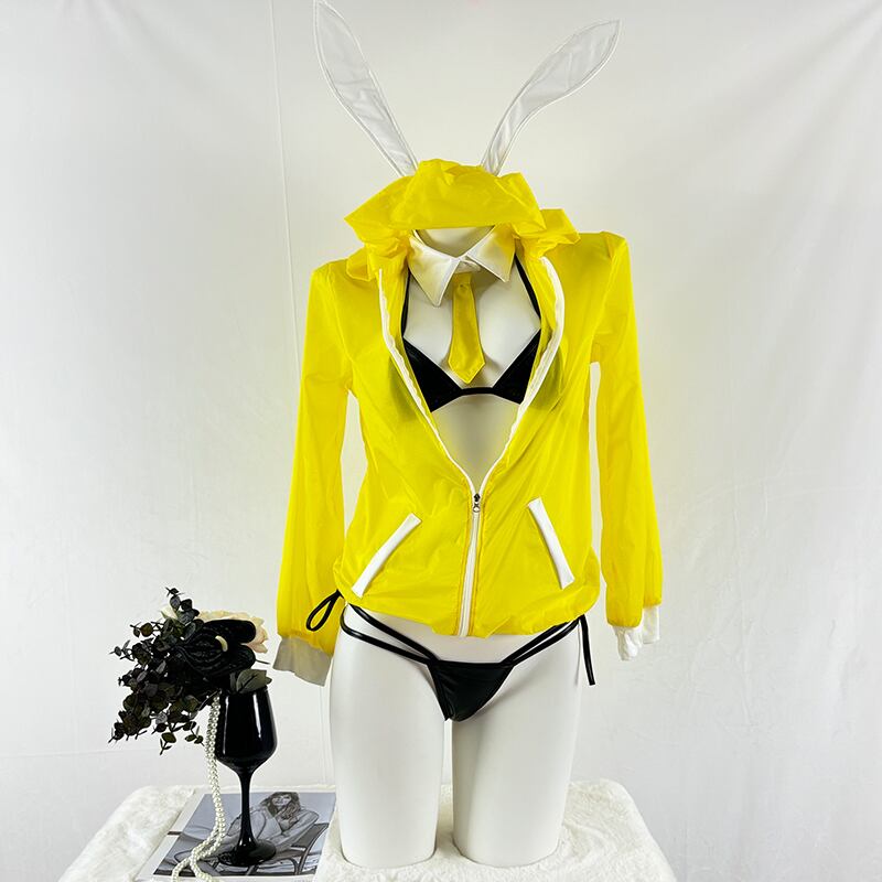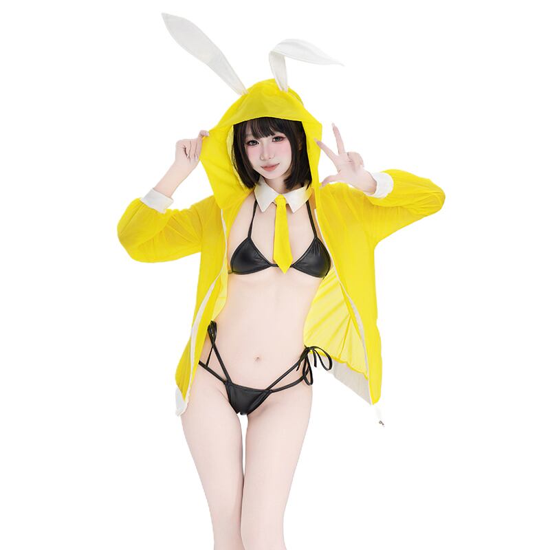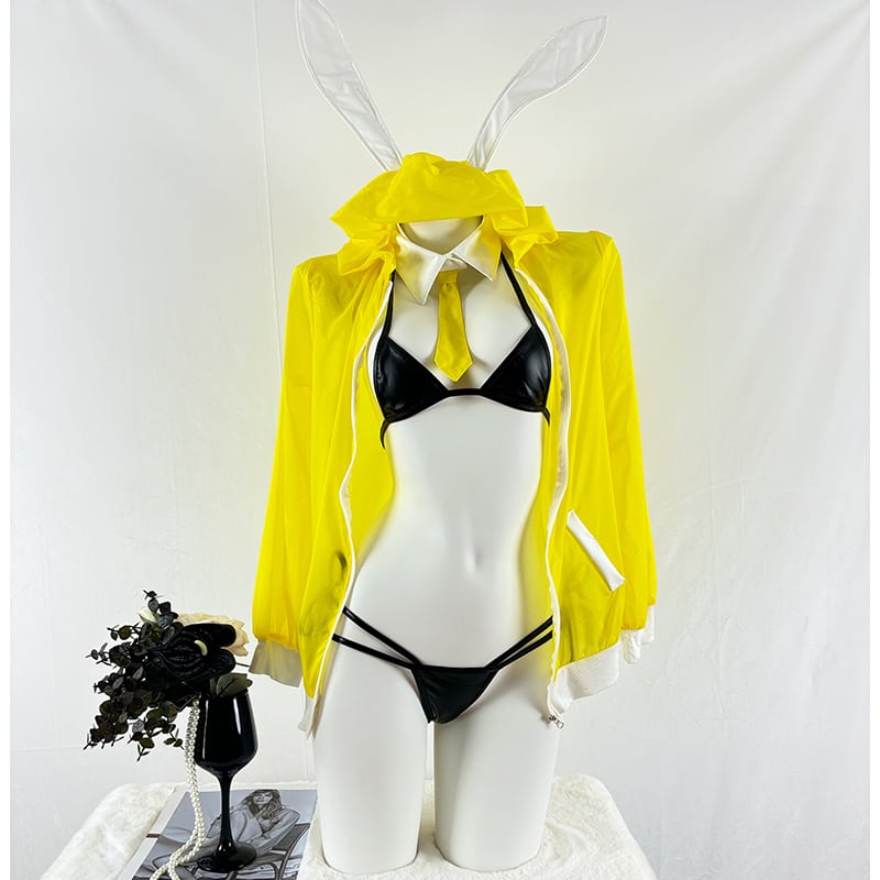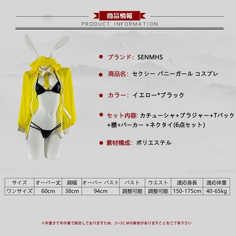 SENMHS サイバーパンク風 セクシー コスプレ 逆バニーガール コスチューム ハイレグ 過激デザイン うさ耳付き レディース 仮装 イベント衣装 フリーサイズ エロ可愛い 6点セット(カチューシャ・バーカー・ブラジャー・Tバック・ネクタイ・腕輪)pc05