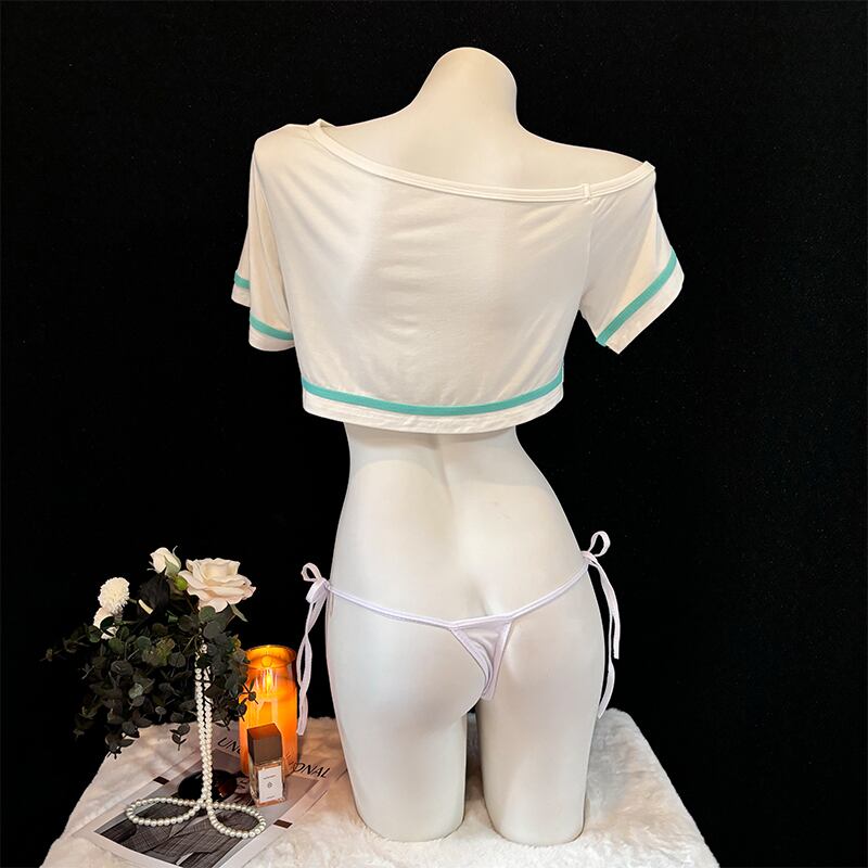 SENMHS セクシー オフショルダーTシャツ 先生マジがエロ風 スリムフィット ランジェリー風デザイン ワンサイズ レディース コスプレ風 トップス103b