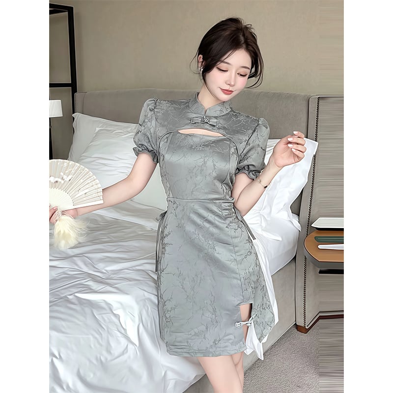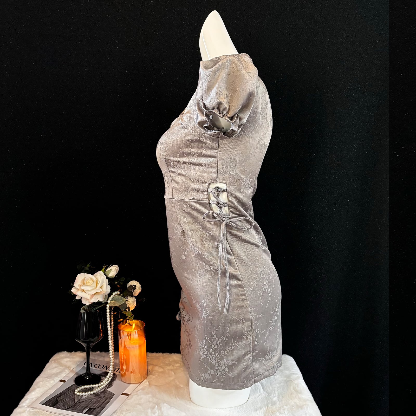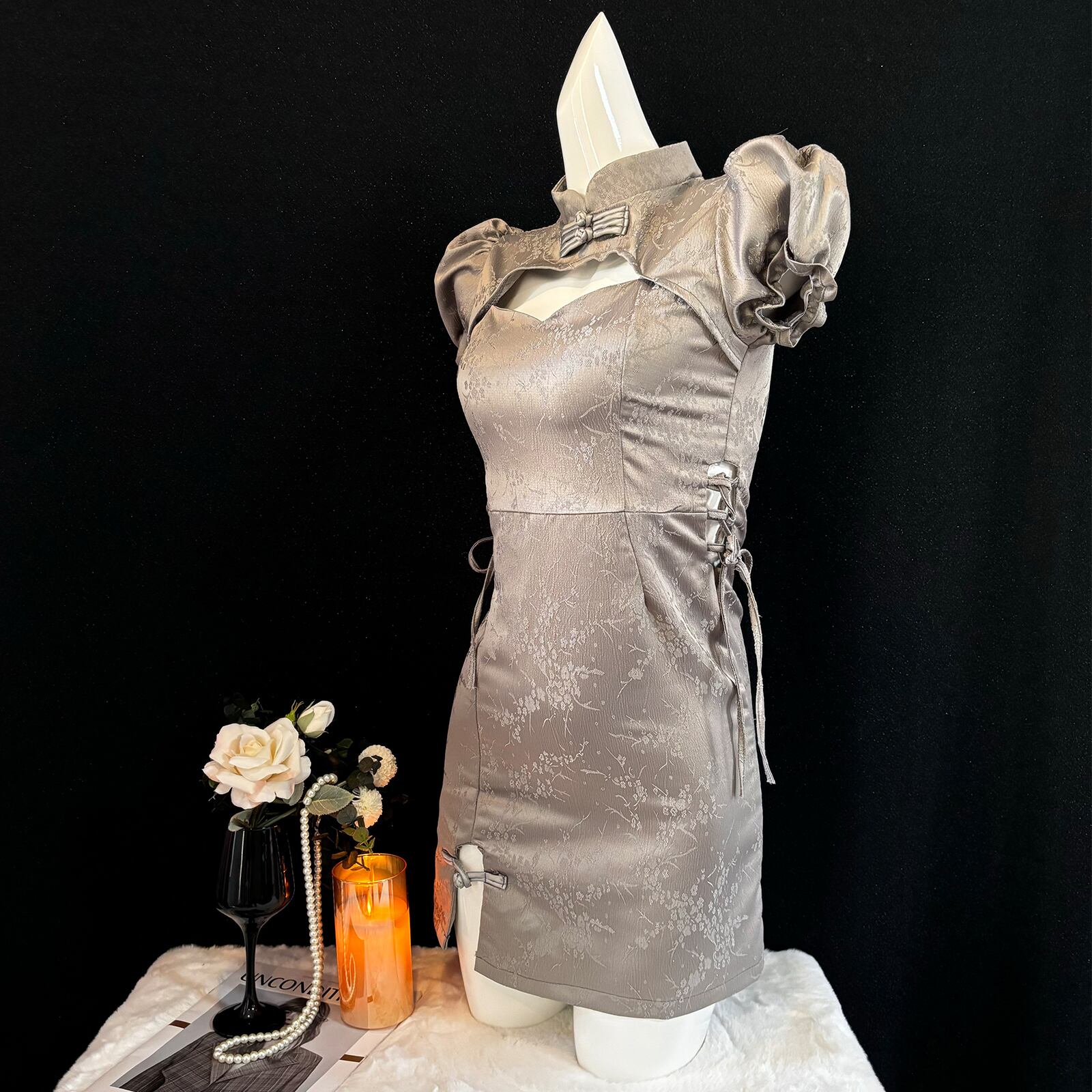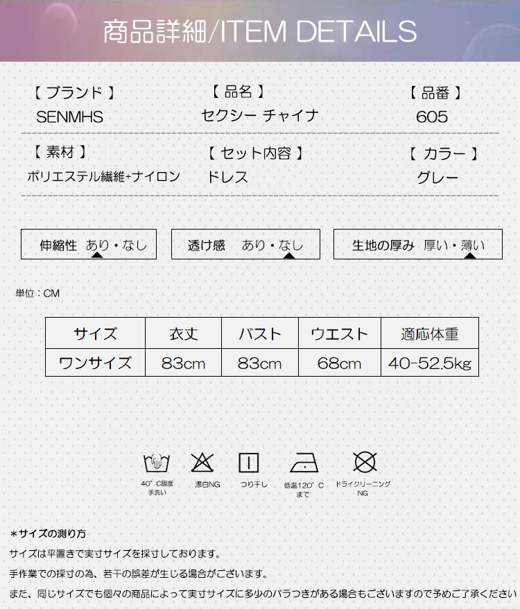 SENMHS チャイナドレス セクシー ボディコン コスプレ衣装 ベビードール風ランジェリー ワンサイズ グレー レディース 大人可愛い 甘辛スタイル オシャレ パーティードレス605