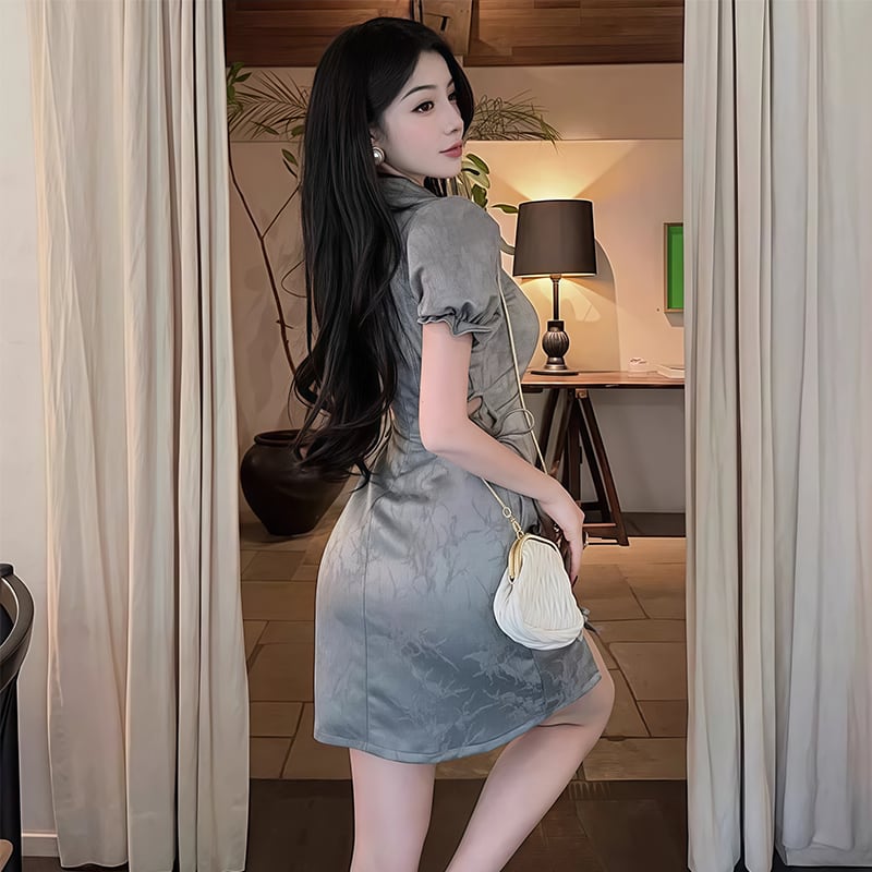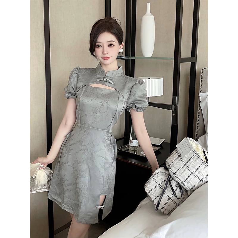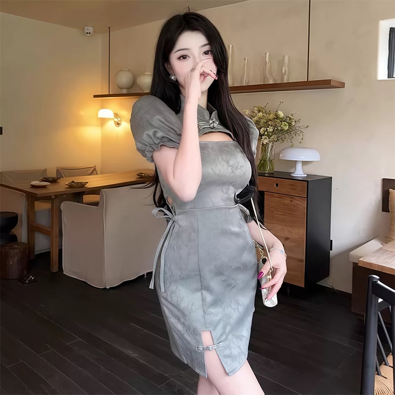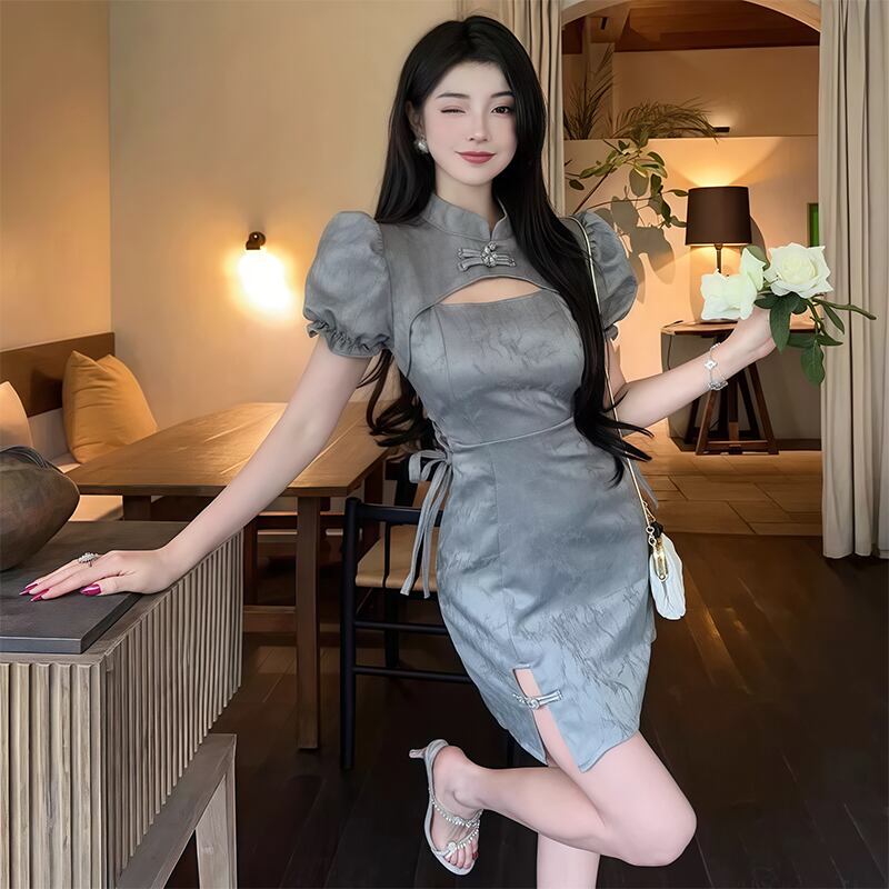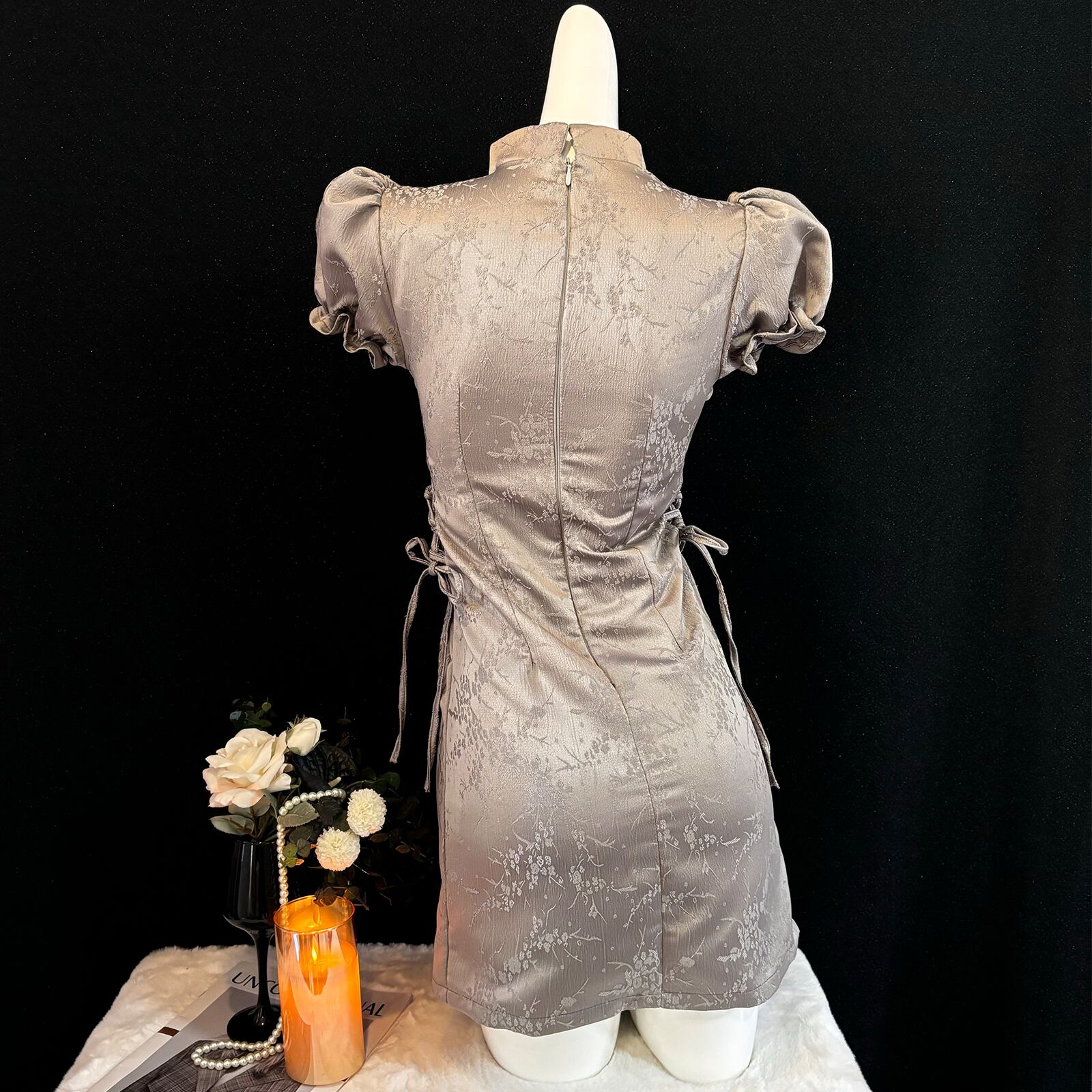 SENMHS チャイナドレス セクシー ボディコン コスプレ衣装 ベビードール風ランジェリー ワンサイズ グレー レディース 大人可愛い 甘辛スタイル オシャレ パーティードレス605