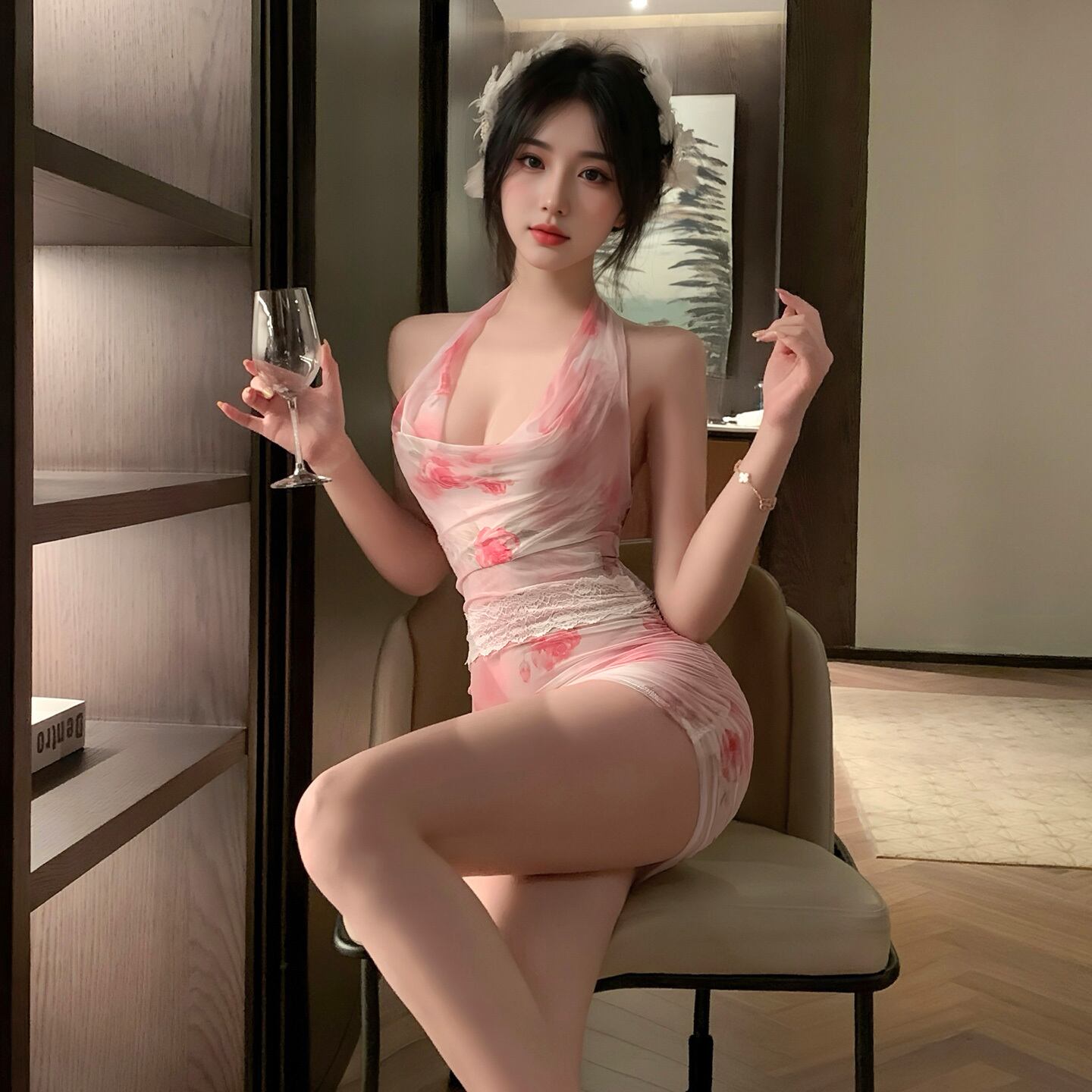 ■セクシーで華やかなローズ柄のキャミソール!SENMHSの「SENMHSセクシー ローズ柄 キャミソール風 コスプレ 2点セット」は、ドレスとTバックの豪華な組み合わせで、特別な夜を演出します。ホルターネックデザインと背中あきのシルエットが、あなたの魅力を最大限に引き立てます!