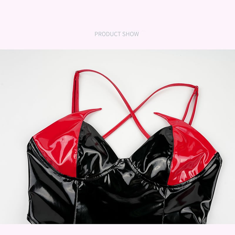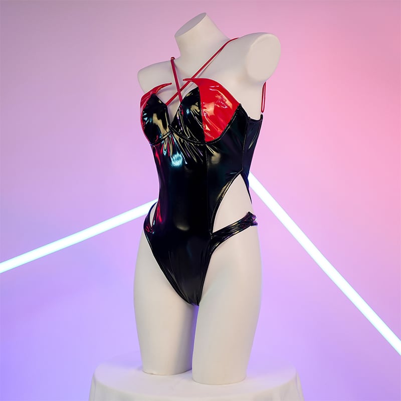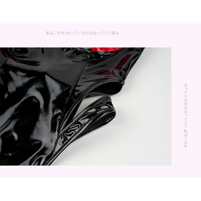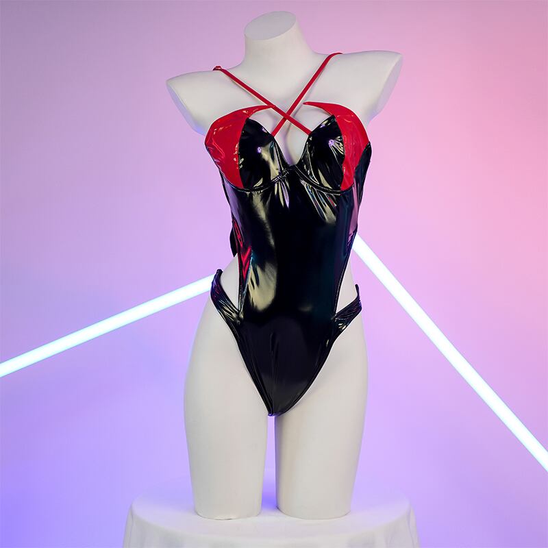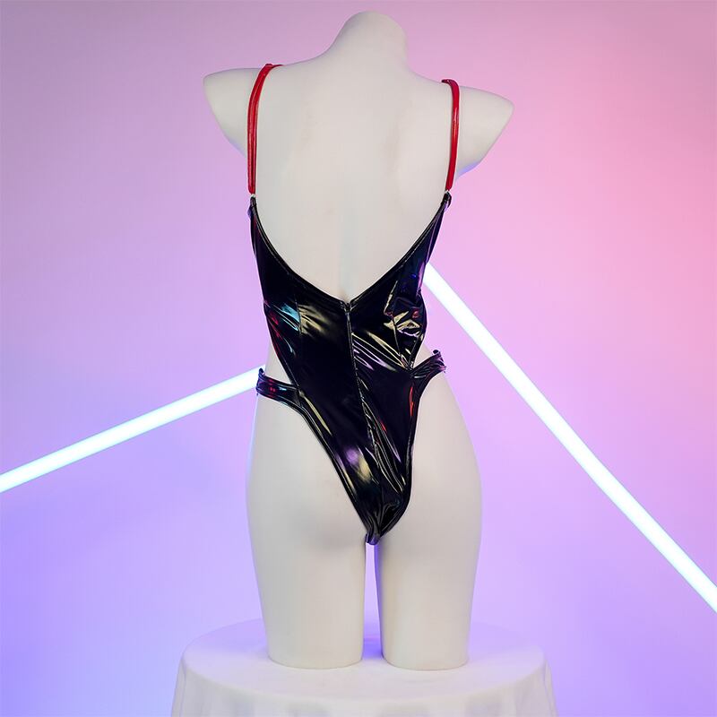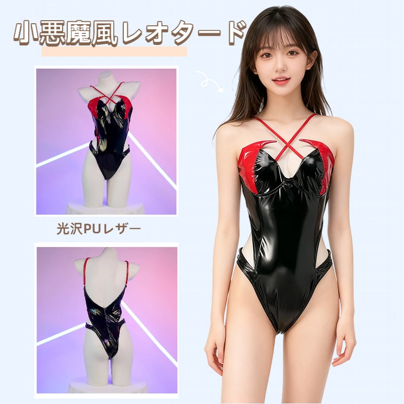 SENMHS 小悪魔風 漆皮光沢 ワンピース セクシー競泳風スク水 コスプレ ランジェリー ハイレグ・タイトフィット 撮影会 レディース フリーサイズ ブラックc2080
