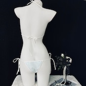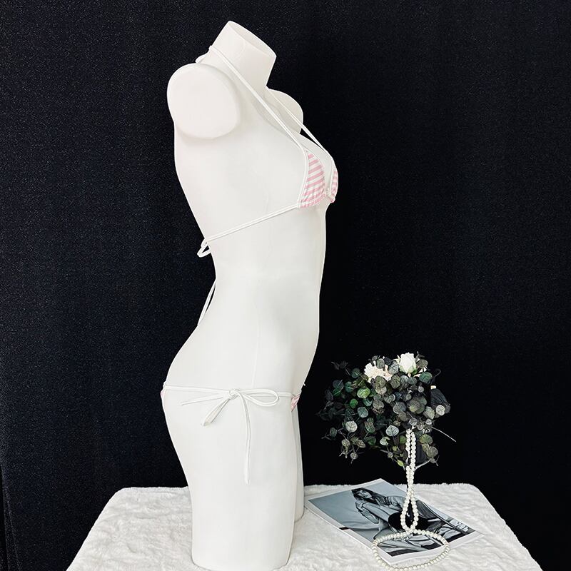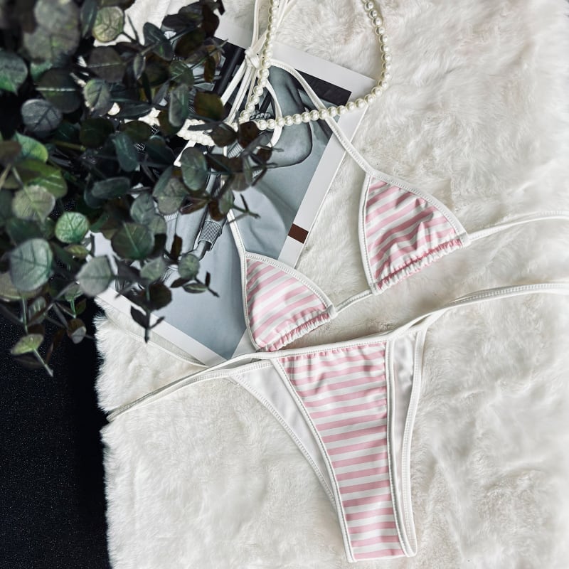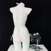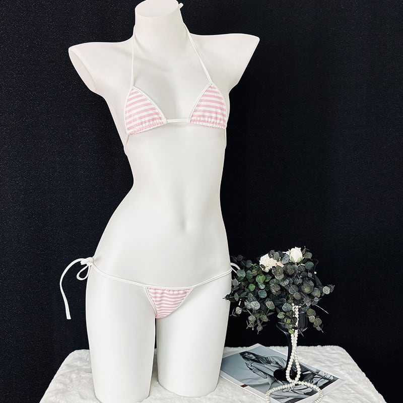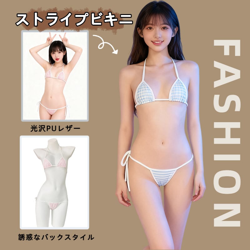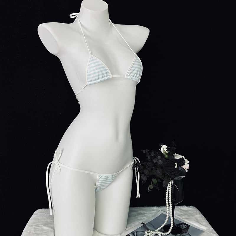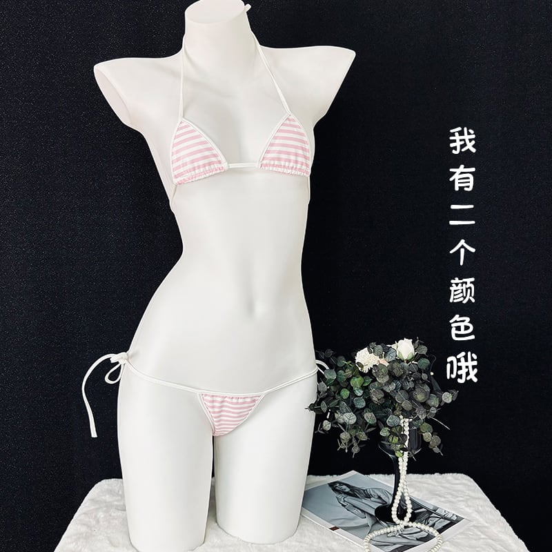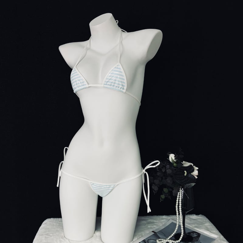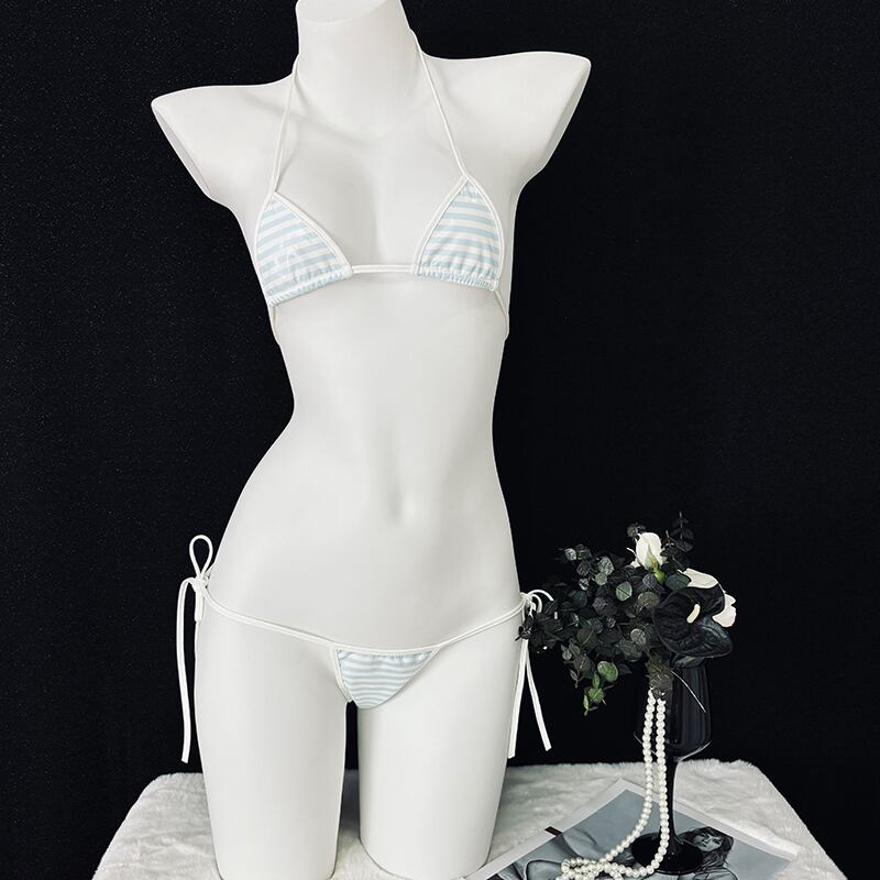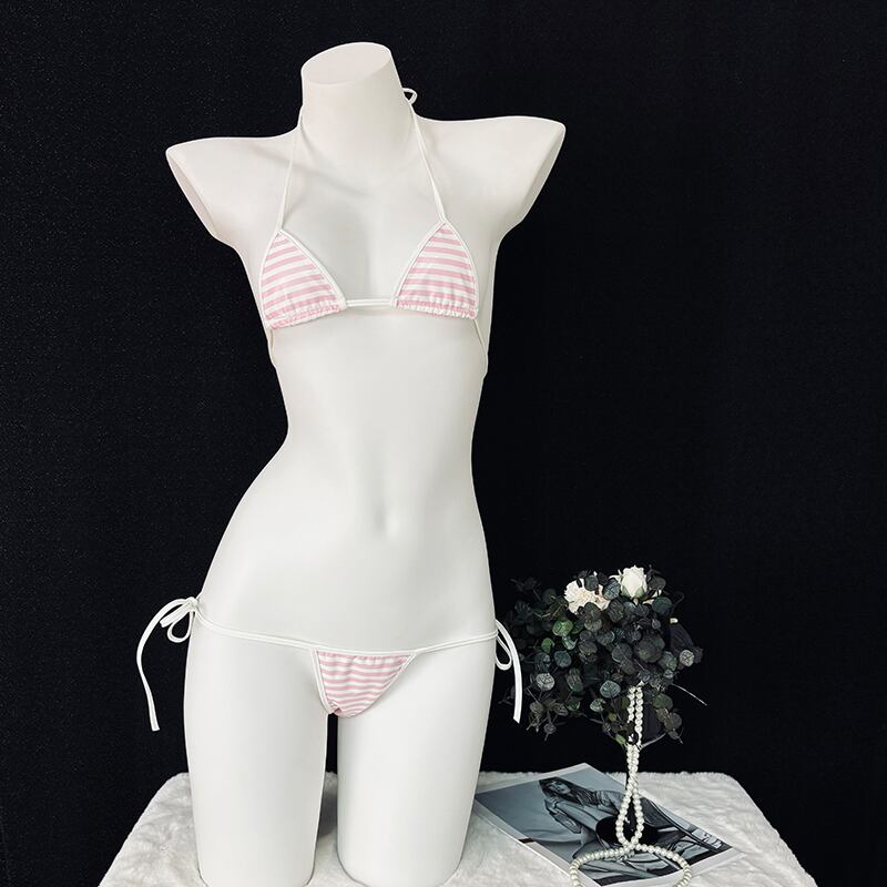 SENMHSセクシー ストライプ カラーブロック レースアップ ビキニ コスプレランジェリー ミニブラ セパレートセット 撮影会用 水着風 レディース フリーサイズ ピンク ブルーc2115