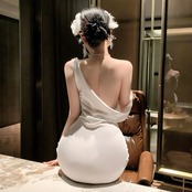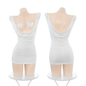 SENMHS セクシー ワンショルダー キャミソール風 ドレス ランジェリー 2点セット(ドレス+Tバック) 大きなリボン デザイン 背中あき 勝負下着 エレガント ナイトクラブ風 レディース ブルー フリーサイズ7887