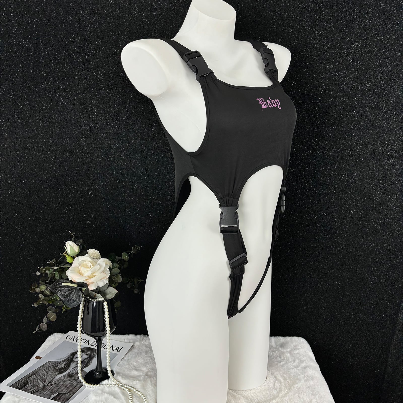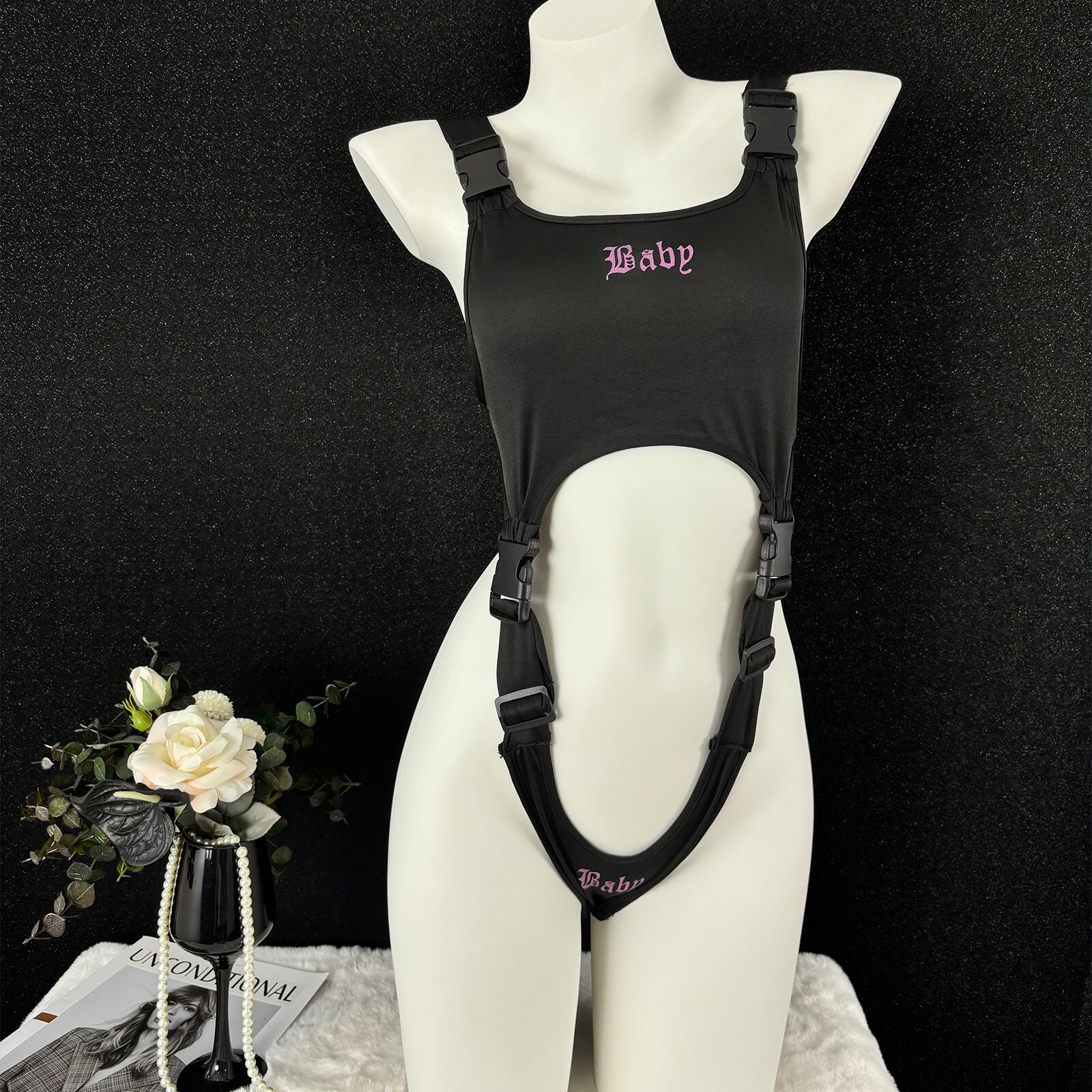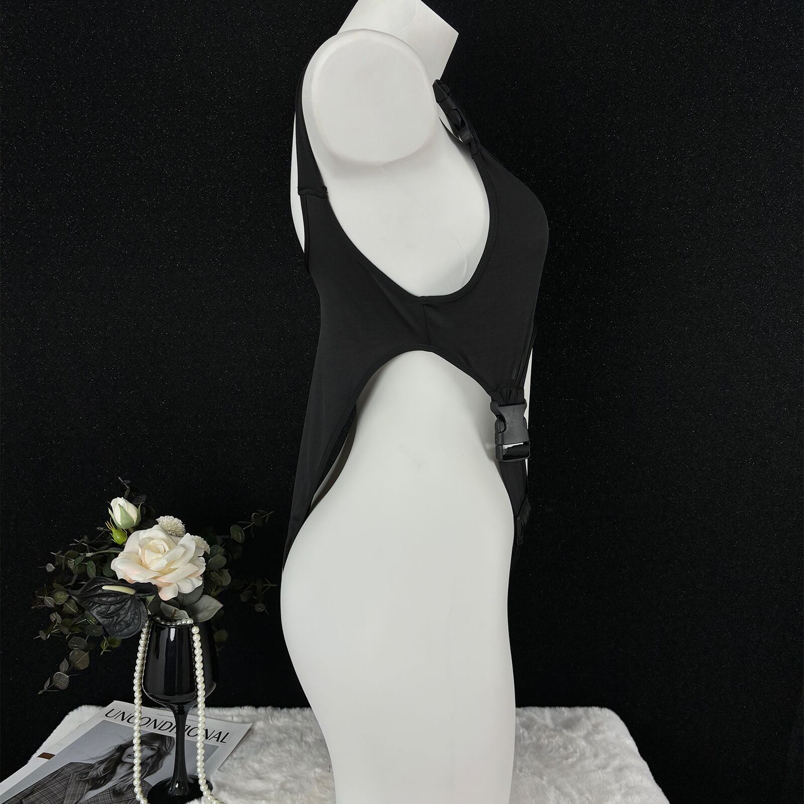 SENMHS セクシー 連体衣 コスプレ 可愛い ハイレグ スクール水着風 ボンデージデザインタイトフィット ランジェリー カップ調整可 超薄 レディース フリーサイズ ブラック 撮影会用p88