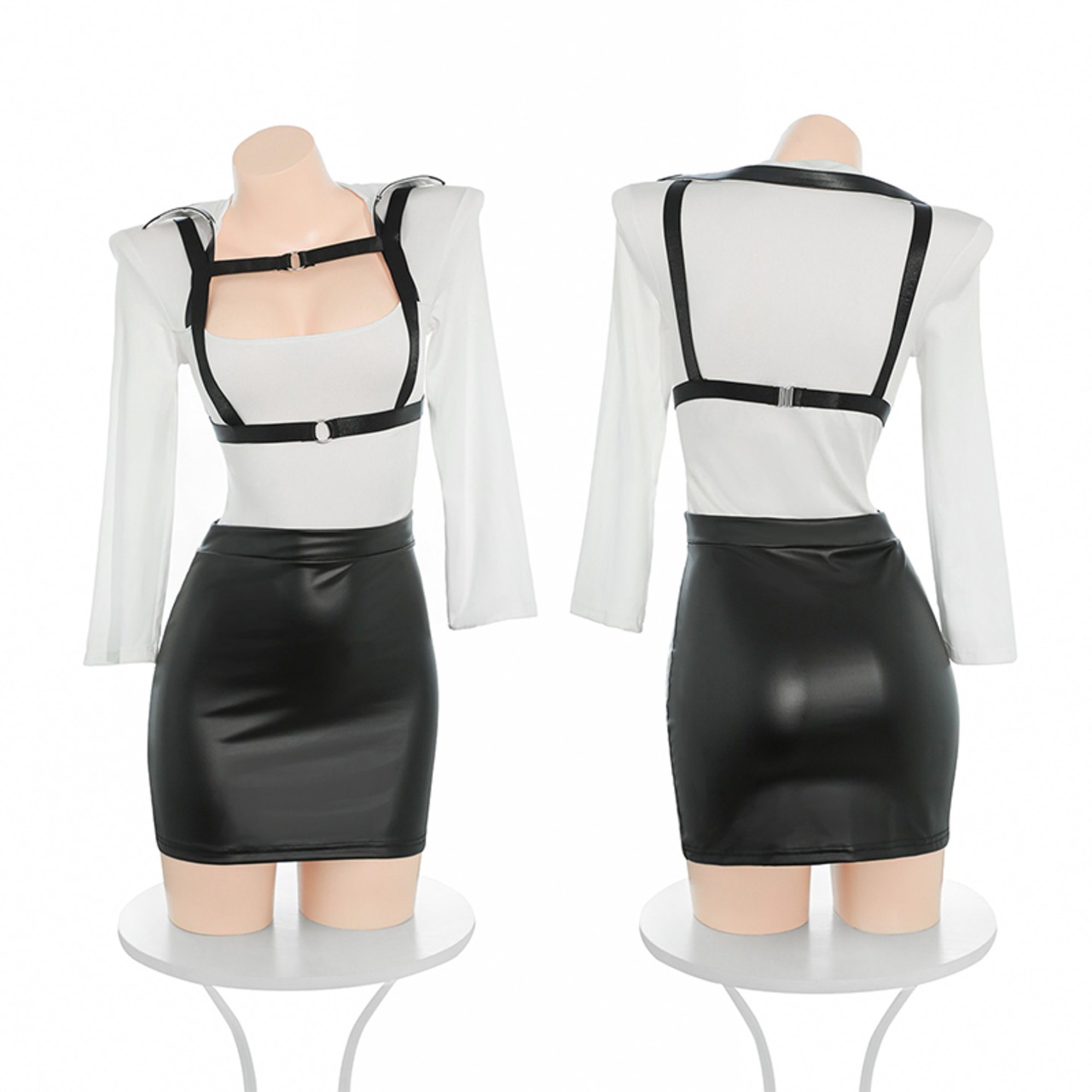 SENMHSセクシー OL コスプレ ランジェリー シースルー 制服 (トップス+ミニスカート+Tバック+腕輪2点+束縛ベルト) 女教師 秘書風 大人 レディース コスチューム ブラック ワンサイズ6203