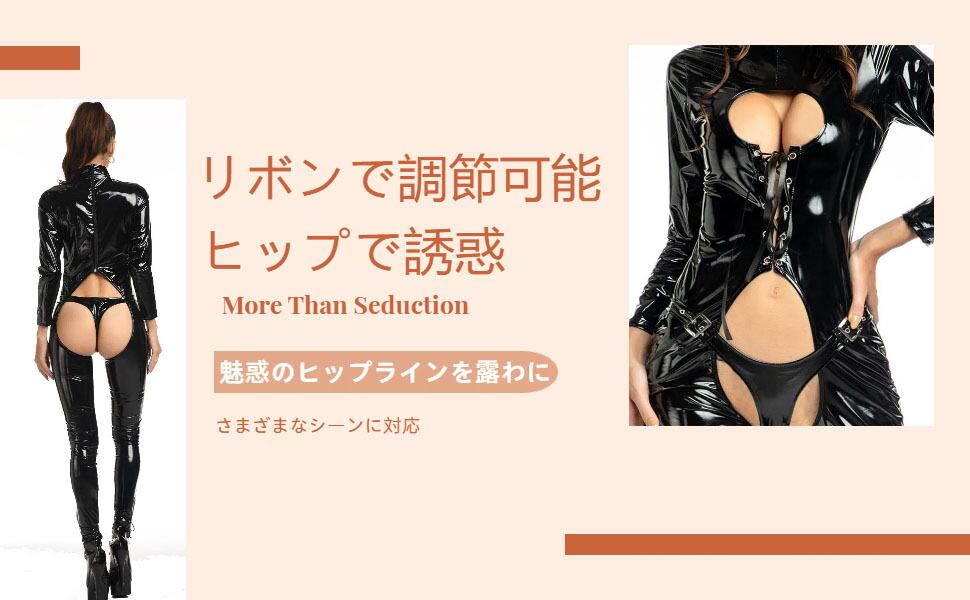 SENMHS セクシースクール水着風レオタード レディース コスプレ 光沢エナメル ハイレグ 大胆デザイン ランジェリー ブラック/レッド ハロウィン 撮影会 パーティー用6817
