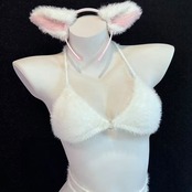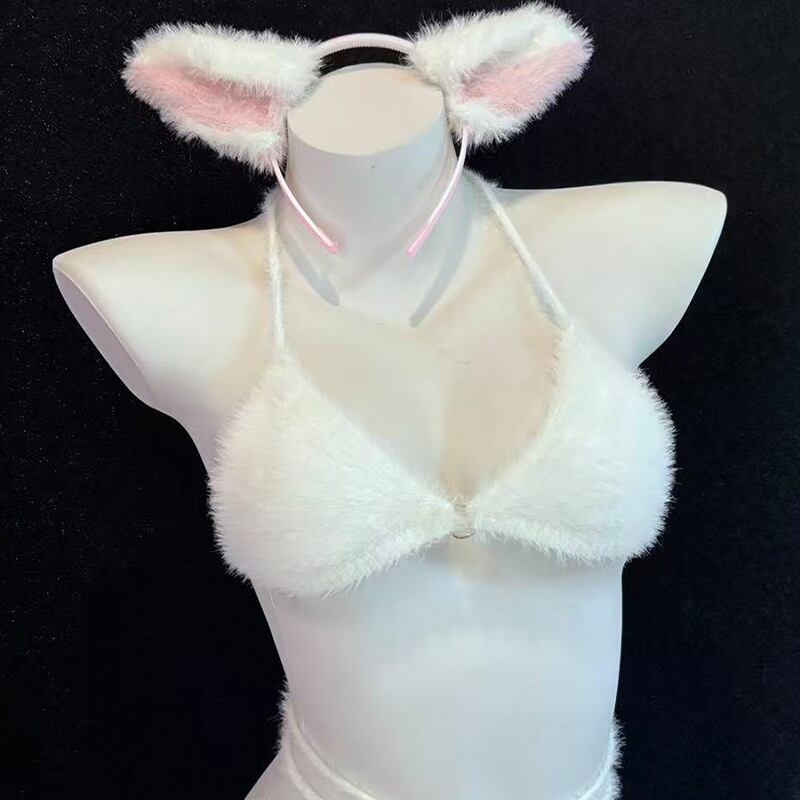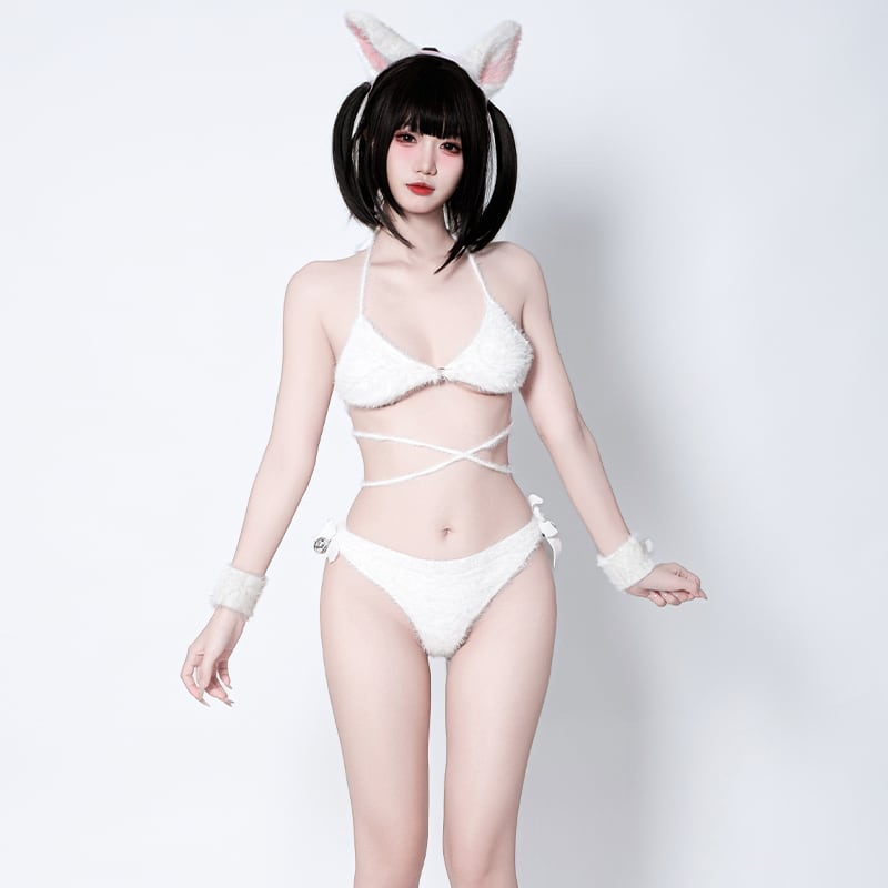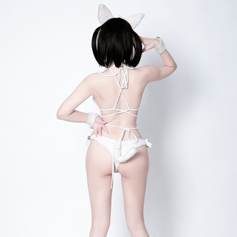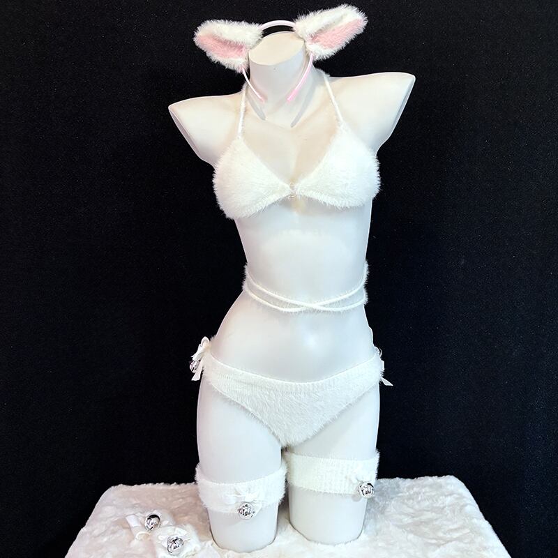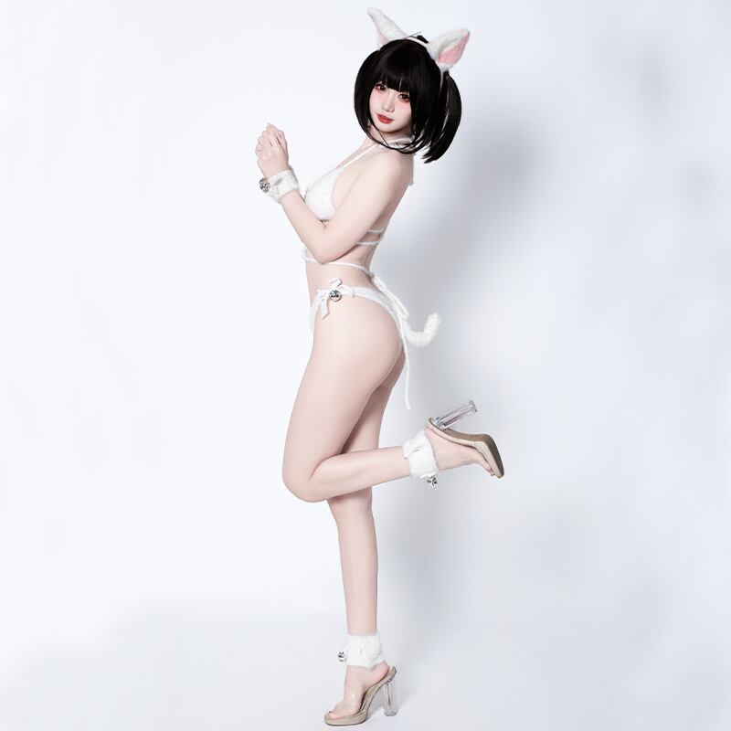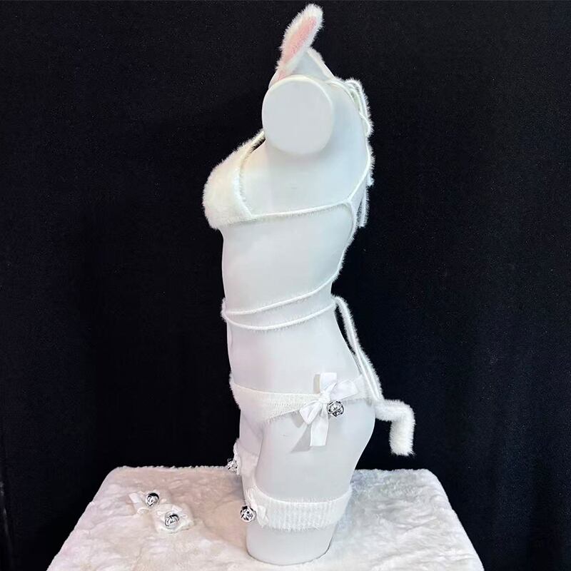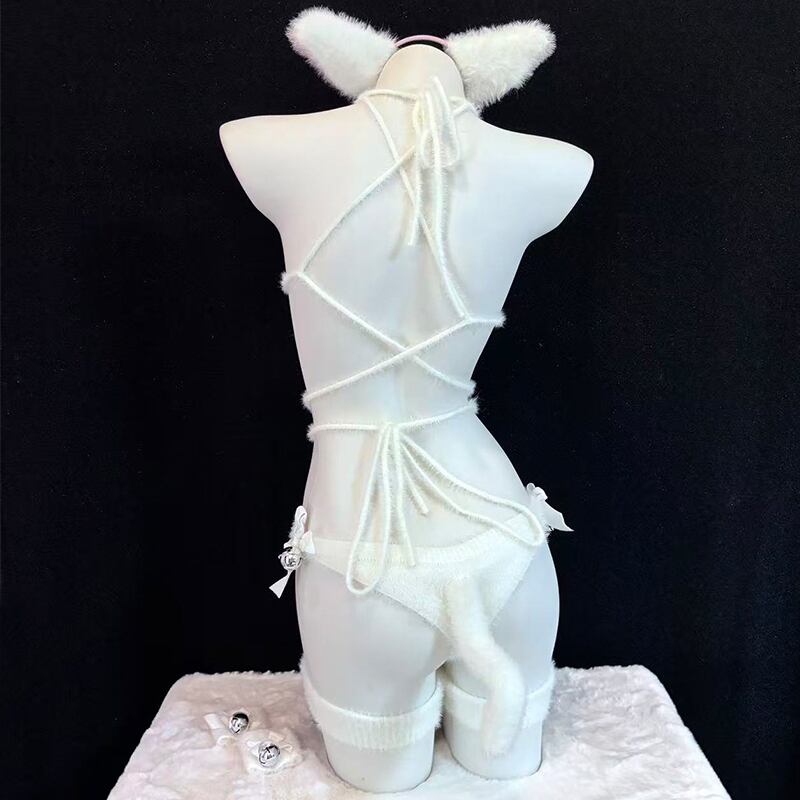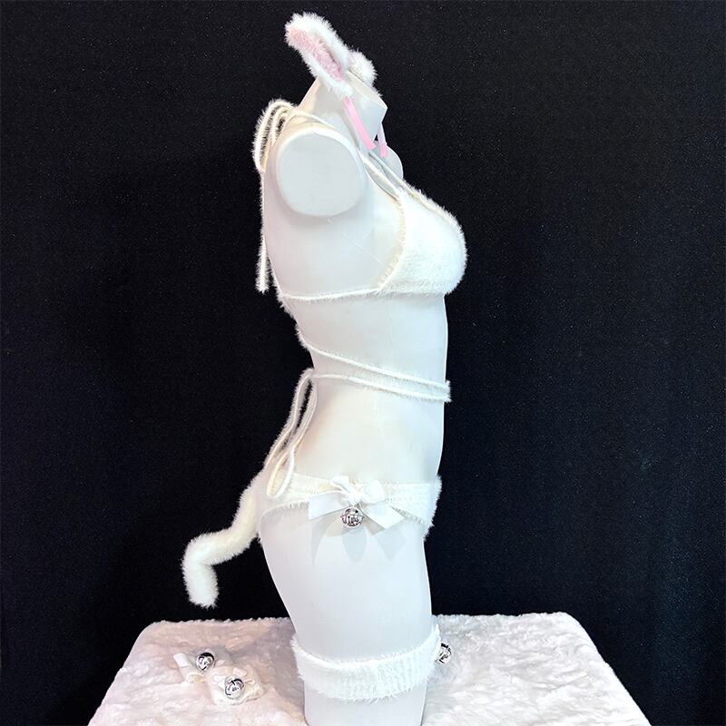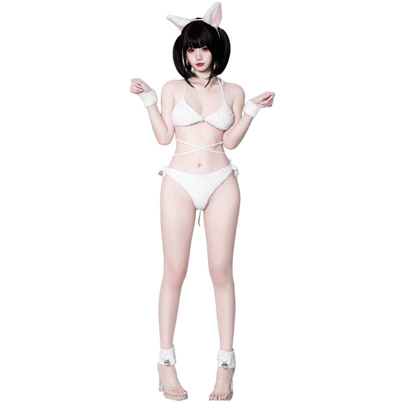 SENMHS可愛い 猫耳付き ねこコスプレ レディース 大人向けもふもふニット素材 ビキニ セパレート 手首リング・足首リング付き 萌え系 撮影会・イベント・宅コス用 コスチュームdg15