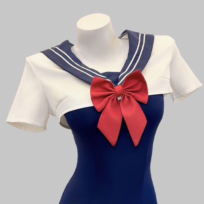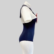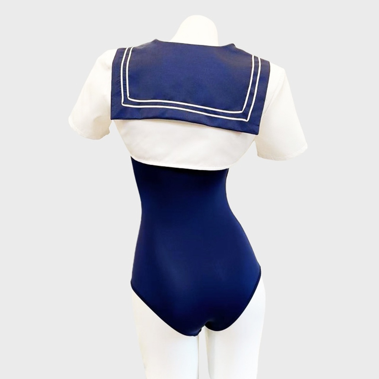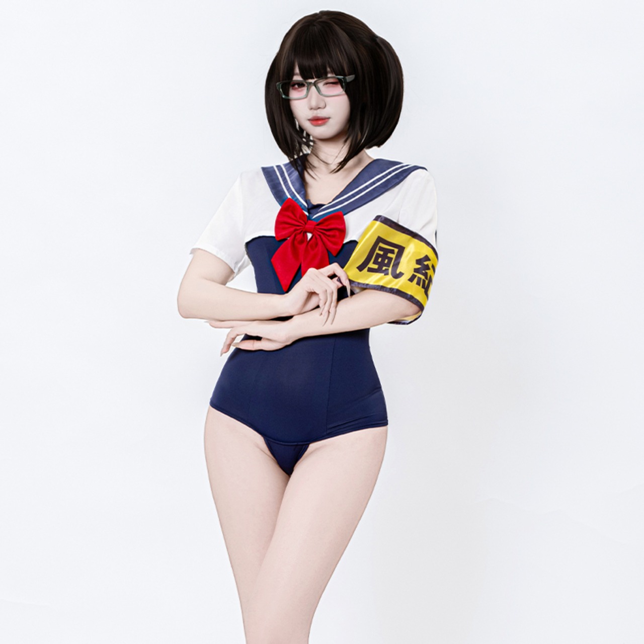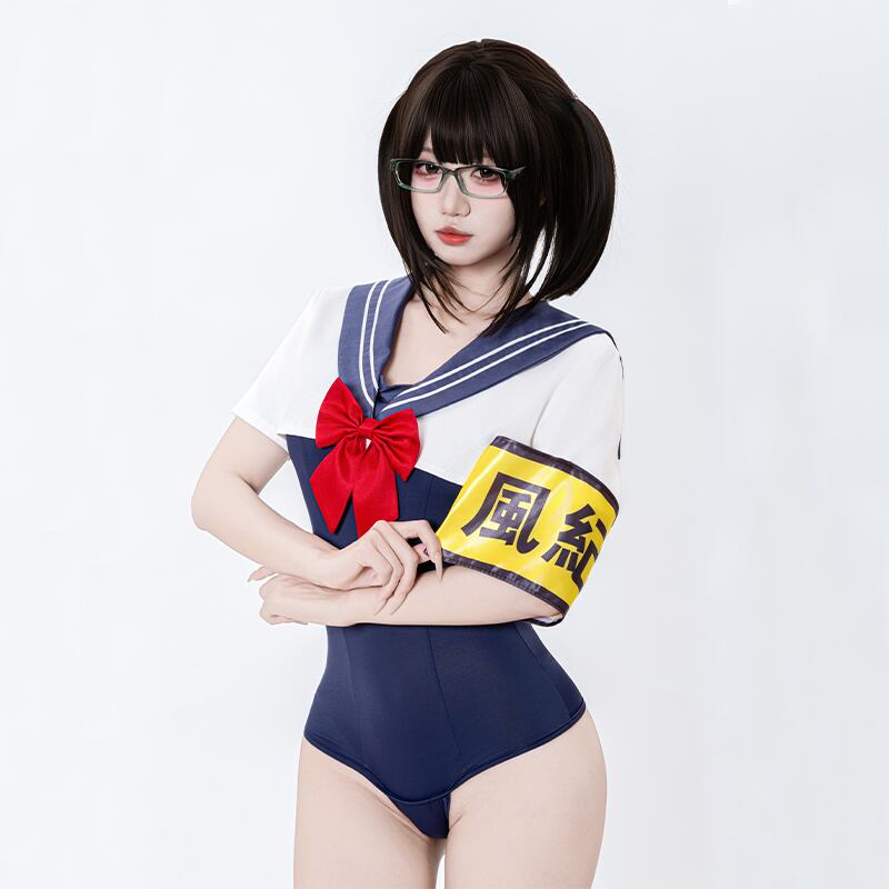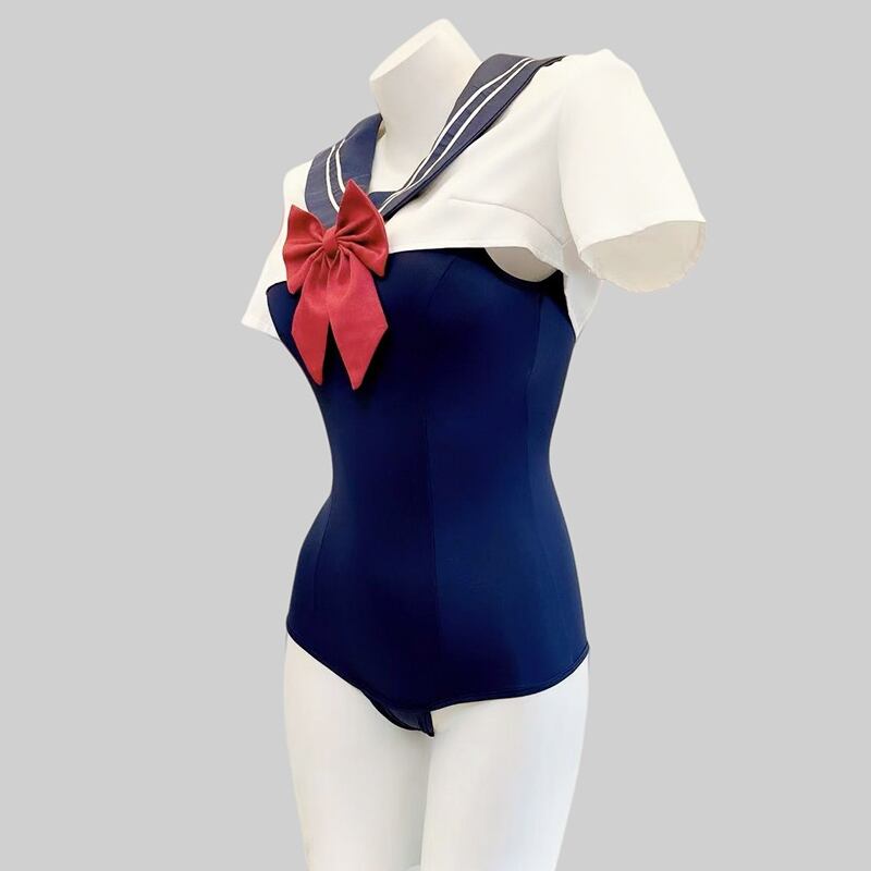 SENMHS 風紀委員モチーフ スク水風 学園コスプレ レディース 大人向け レオタード+トップス+ワッペン付き袖+リボン 4点セット 萌系 セパレートタイプ 撮影用・水着兼用 コスチュームmh30
