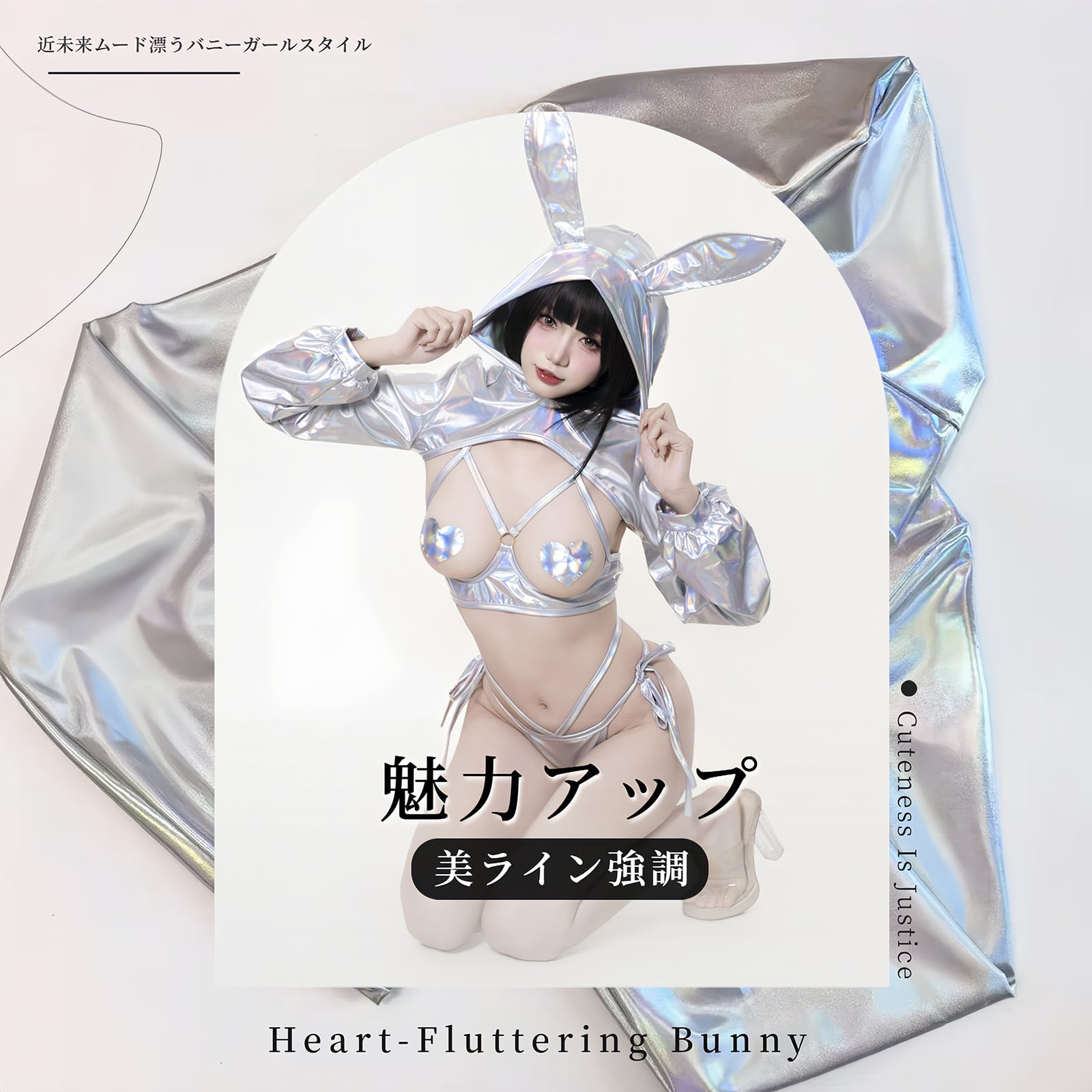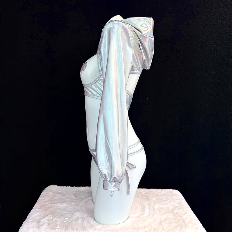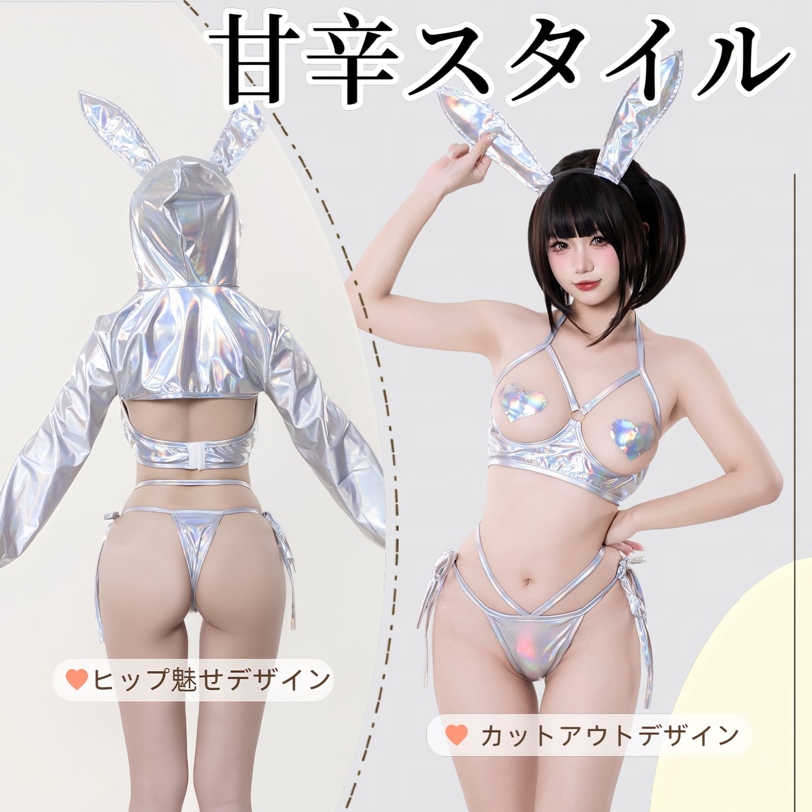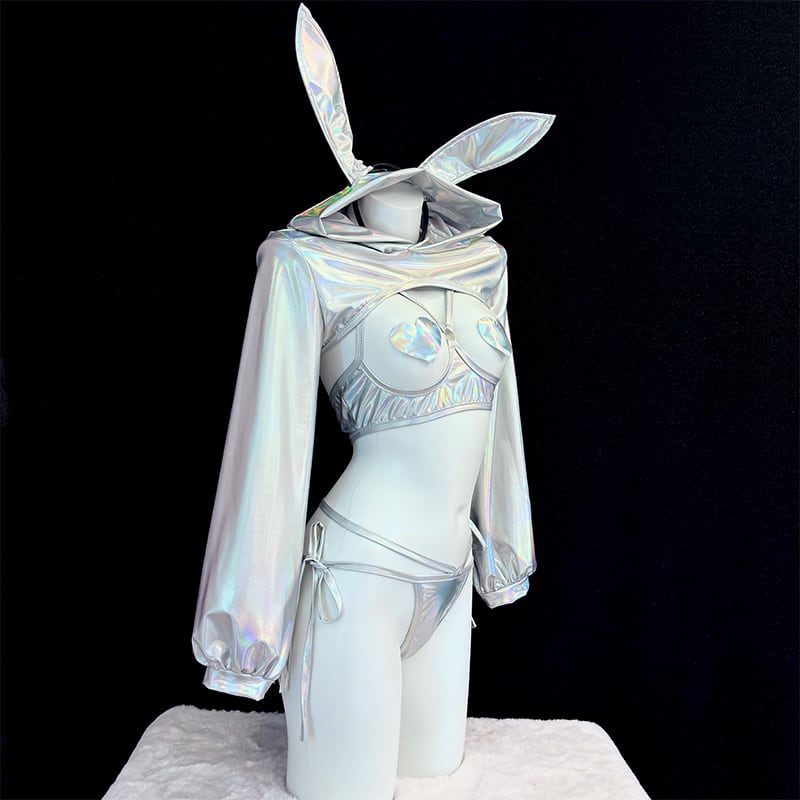 SENMHS 逆バニー バニーガール コスプレ セクシー シースルー ハイレグ レオタード うさぎ耳カチューシャ付き レディース 仮装 パーティー シルバーmh31