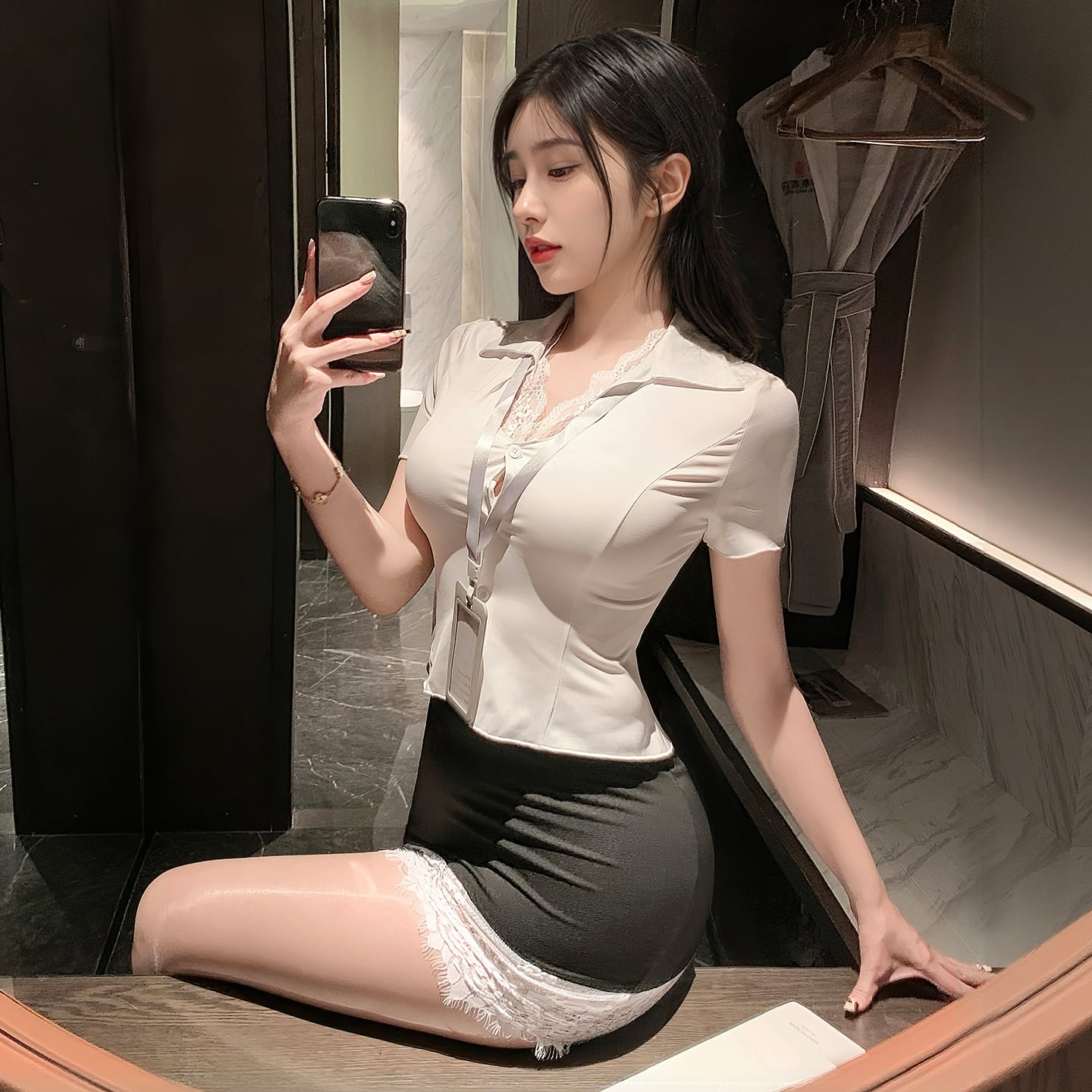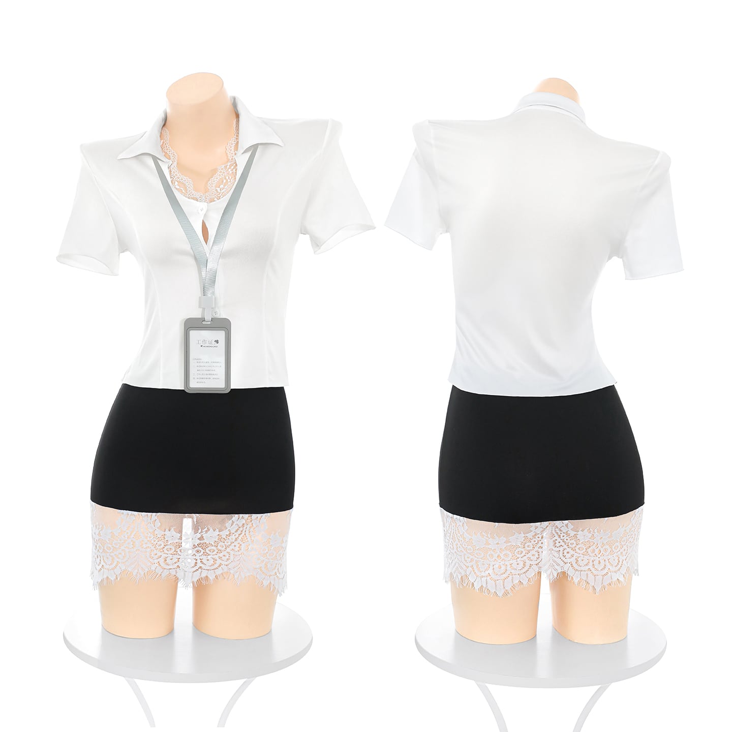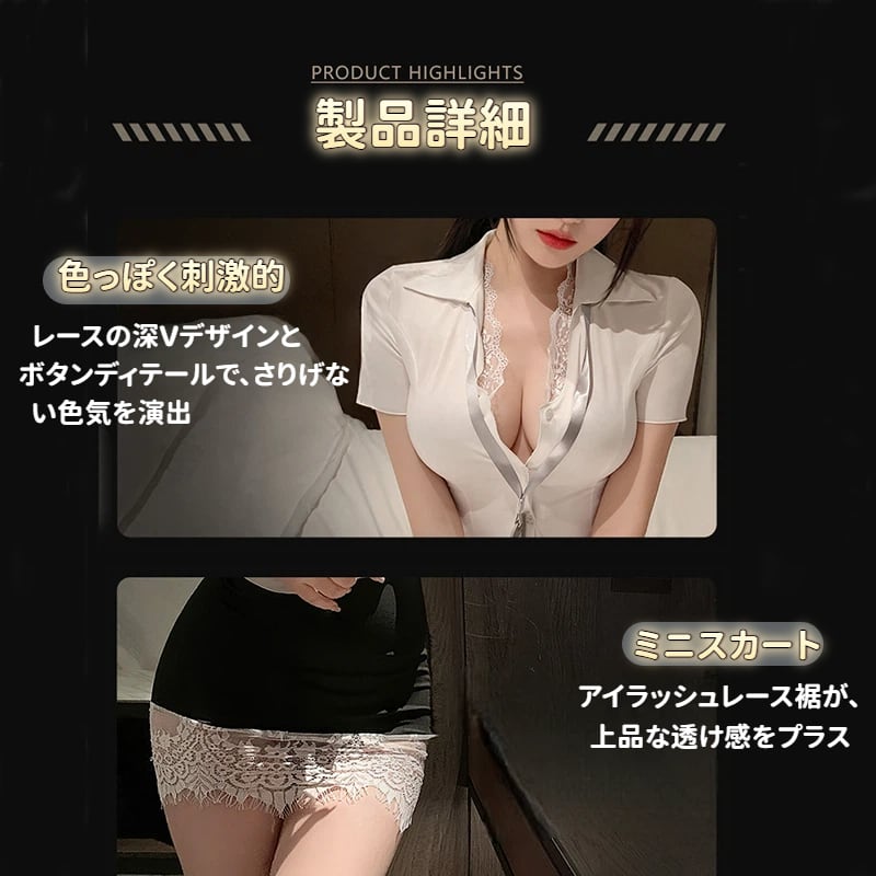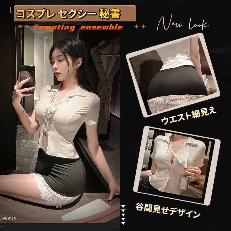 SENMHS セクシー OL コスプレ ランジェリー シースルー 制服(ドレス+Tバック+ミニスカート+ネ一ム夕グ)(4点セット) 女教師 秘書 事務員風 スケスケ 下着 大人 女性 コスチューム 透け透け 衣装 cosplay セクシーランジェリー6206
