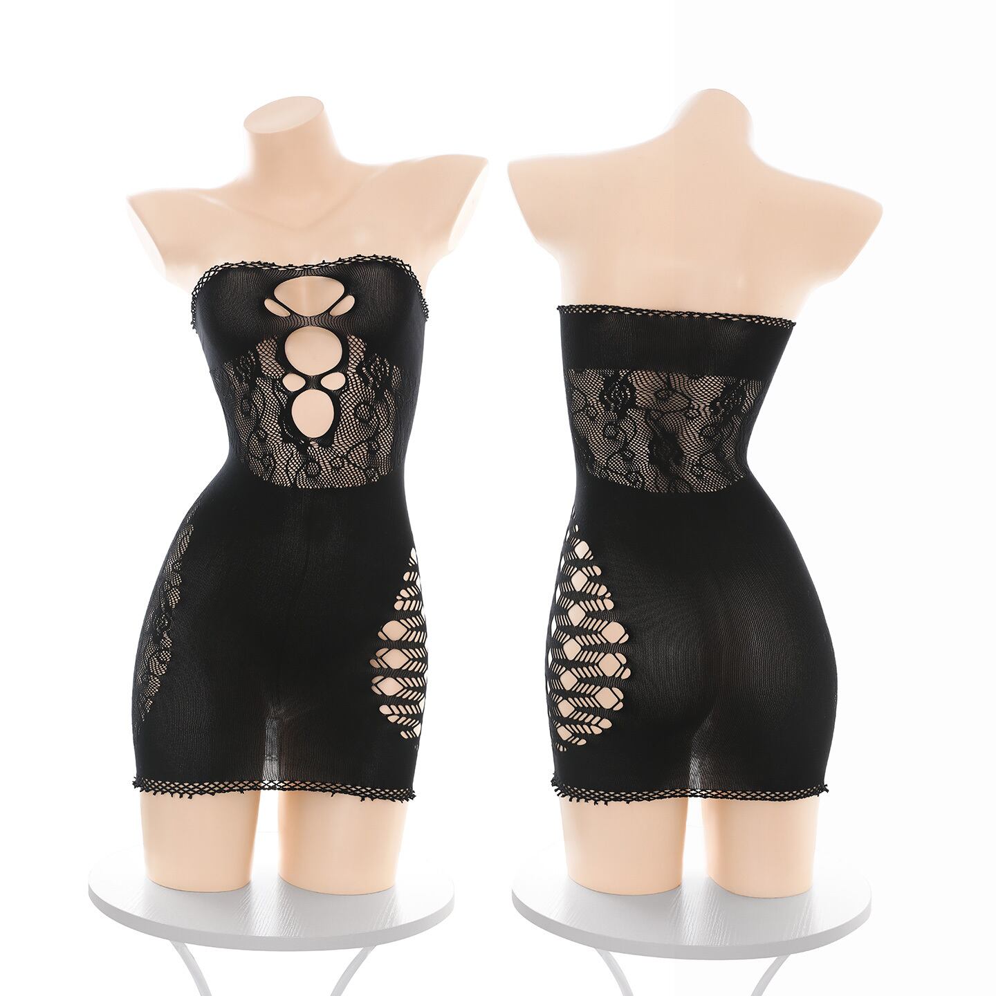 SENMHS セクシー ジャガード ボディドレス Cosplay ランジェリー ベアトップデザイン シースルー カットアウト ボディストッキング 高弾力素材 連身網デザイン 美シルエット ミニ丈 レディース 大人可愛い ナイトウェア パーティー 撮影会7544 | MEGO SHOP