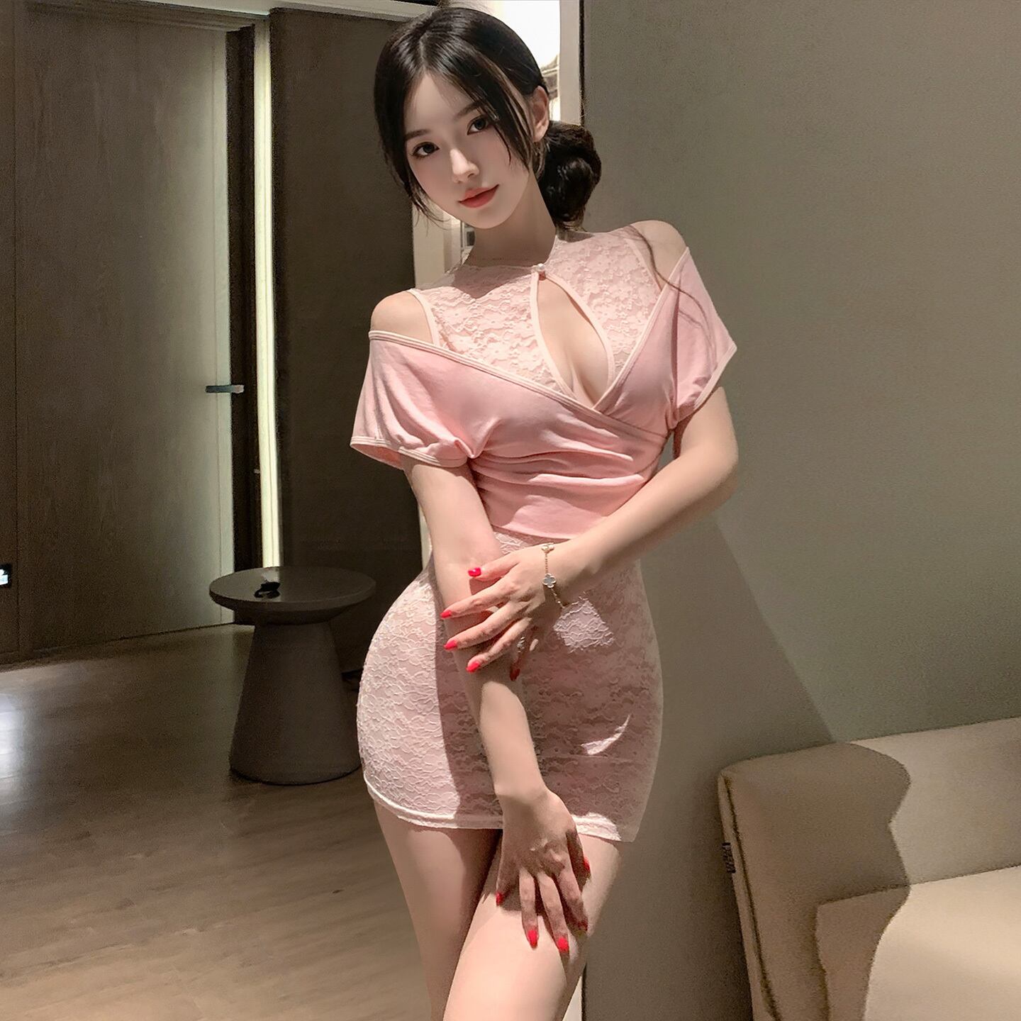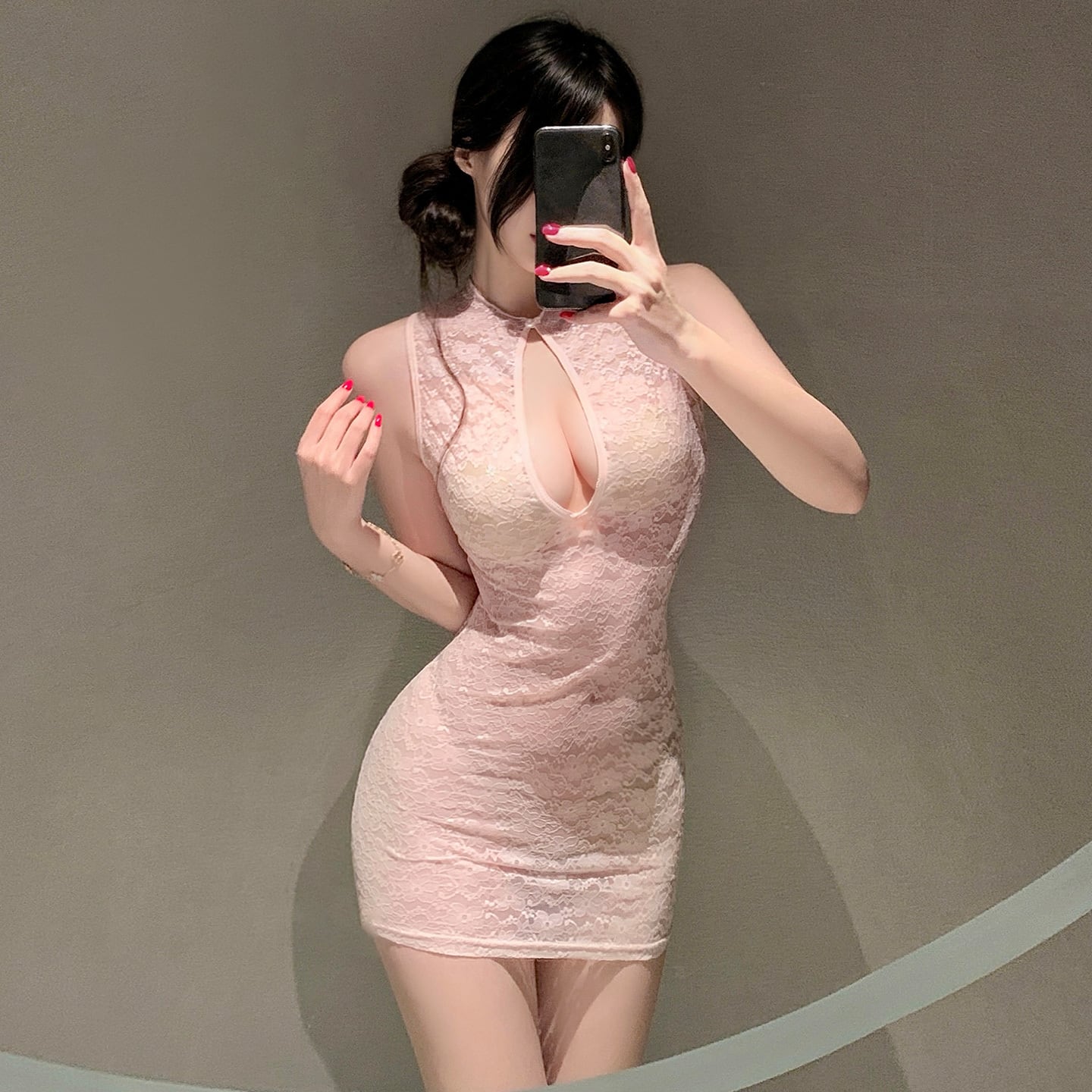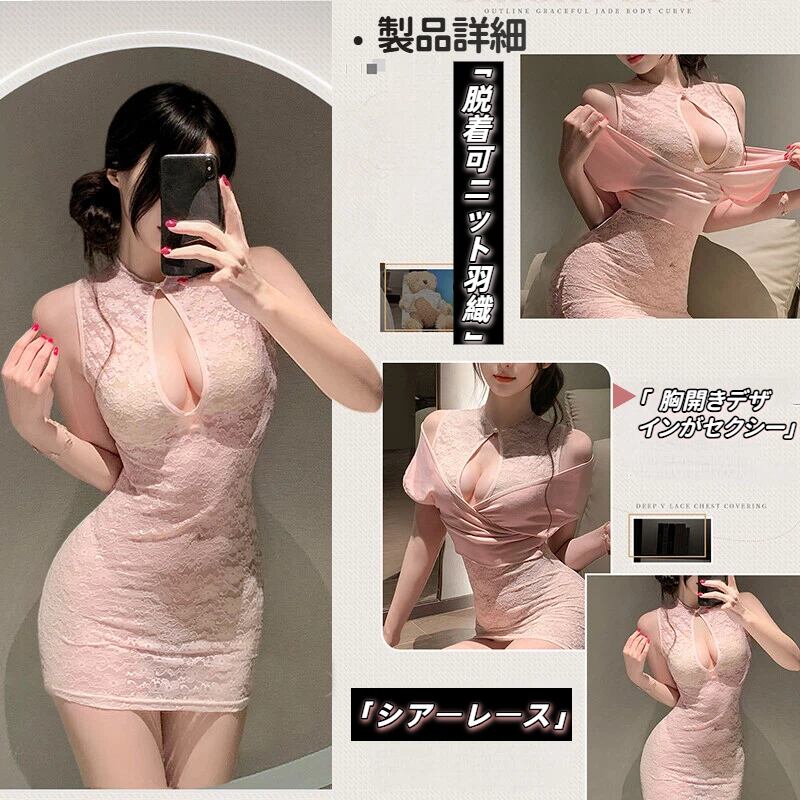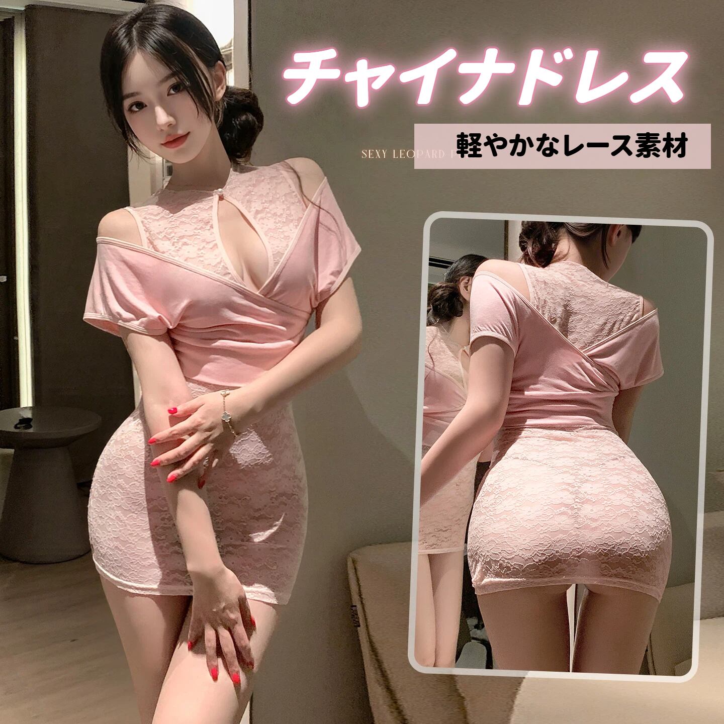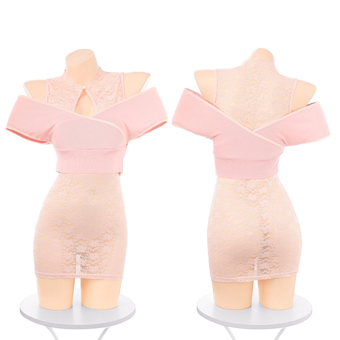 SENMHS セクシー チャイナ風 コスプレ ランジェリー 2点セット(ワンピース+ショール)レース 透け感 デザイン 細見え シルエット 2WAY着こなし ピンク 甘く上品 フリーサイズ ルームウェアzy175 | MEGO SHOP