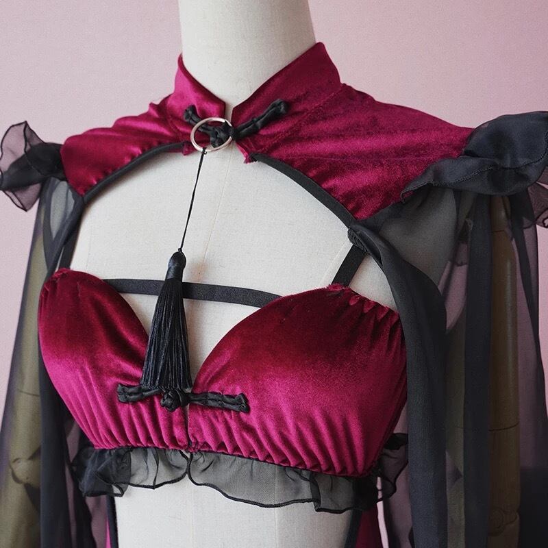 中国の伝統的なキャミソール 、スプリットデザインでドキドキ感UP↑↑ テンションもあがって素敵な夜を過ごせそう。遊び心いっぱいの夜を楽しんで!