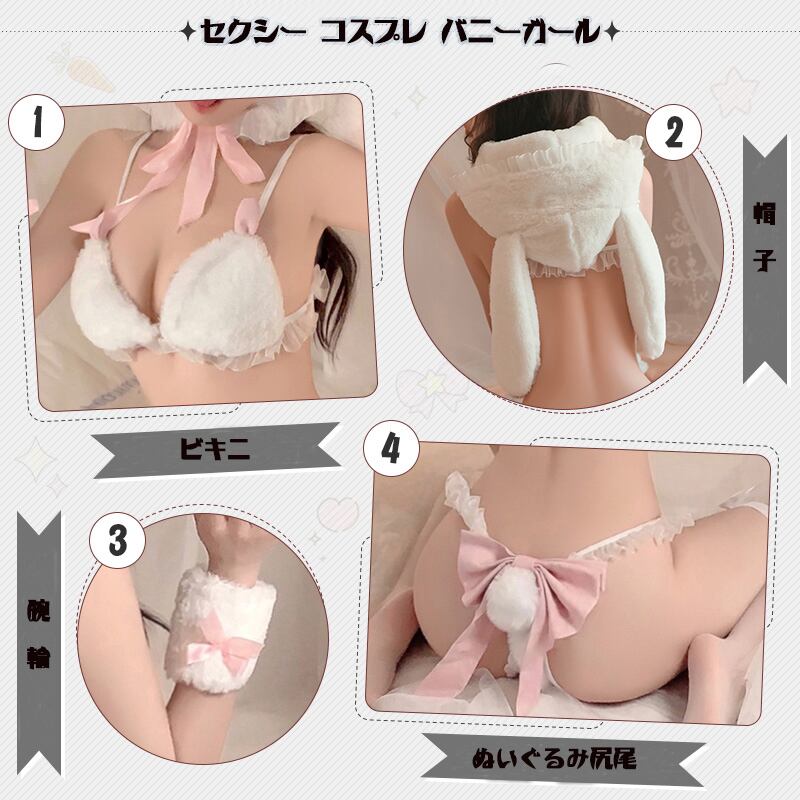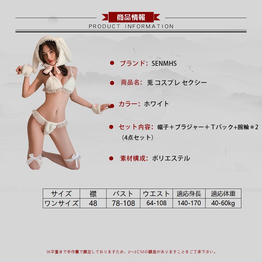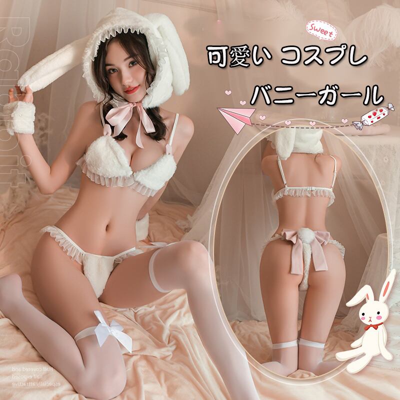 SENMHS セクシー コスプレ バニーガール バニー うさぎ 帽子 萌え萌え 熊耳 ビキニ ベビードール ランジェリー 下着 仮装 可愛い アニマル コスチューム 手袋付き 上下セット6899