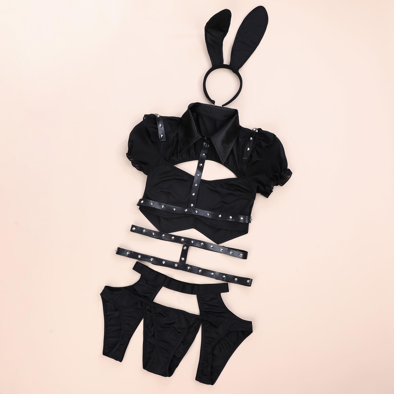 SENMHS 逆バニー ハーネス セクシー バニーガール コスプレ うさぎ バニー ボンテージ エロ エッチ な 調教 誘惑 小悪魔 コスチューム 仮装 大胆 ランジェリー うさ耳 カチューシャ レディース パーティー クリスマス イベント ハロウィン 撮影 黒9511
