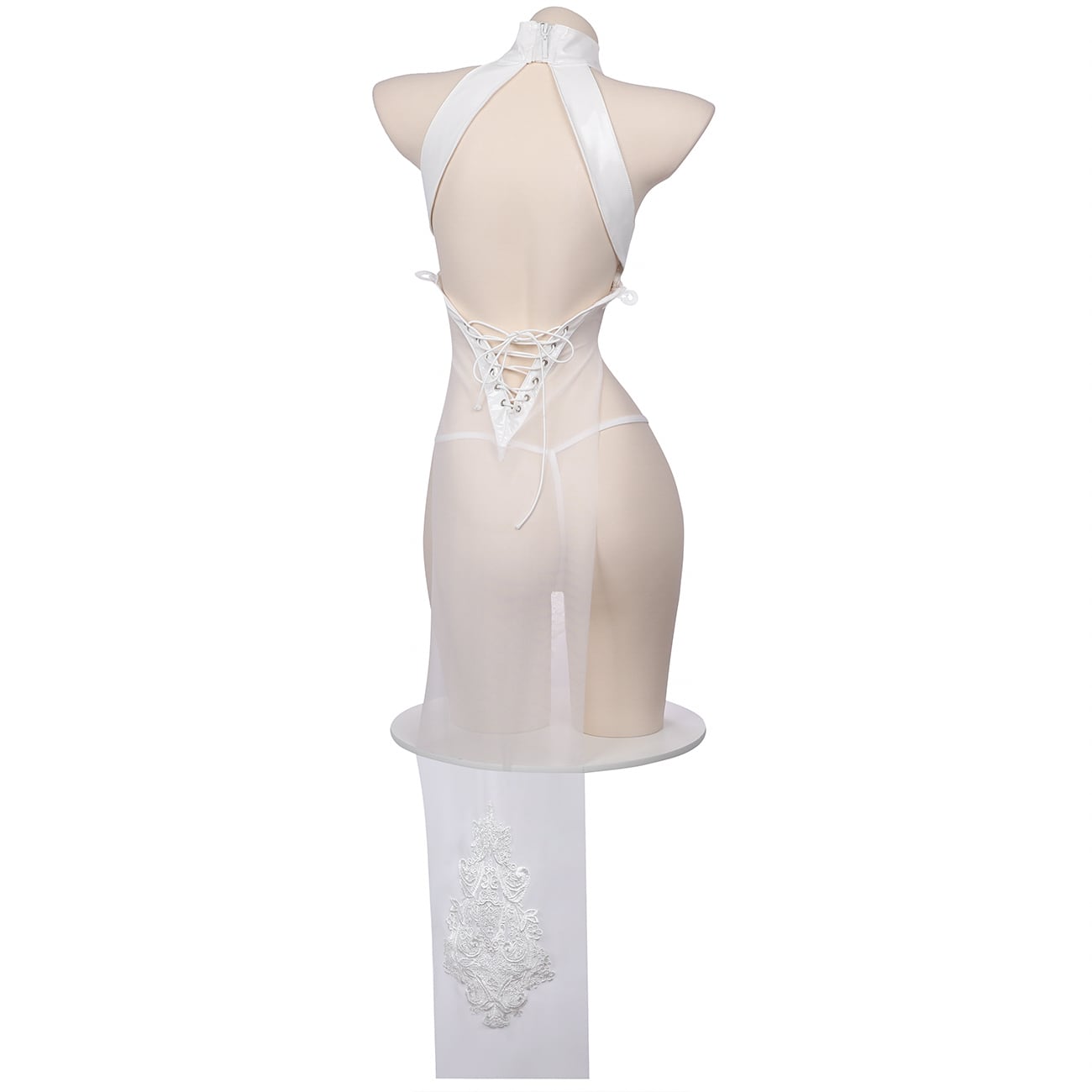 SENMHS コスプレ セクシー チャイナ チャイナドレス チャイナ服 エロ エッチ な コスプレ 下着 可愛い 露出 過激 アダルト ランジェリー レザー風 PU ベビードール シースルー ボンデージ ボディコン エナメル PVC 女王様 2色8105