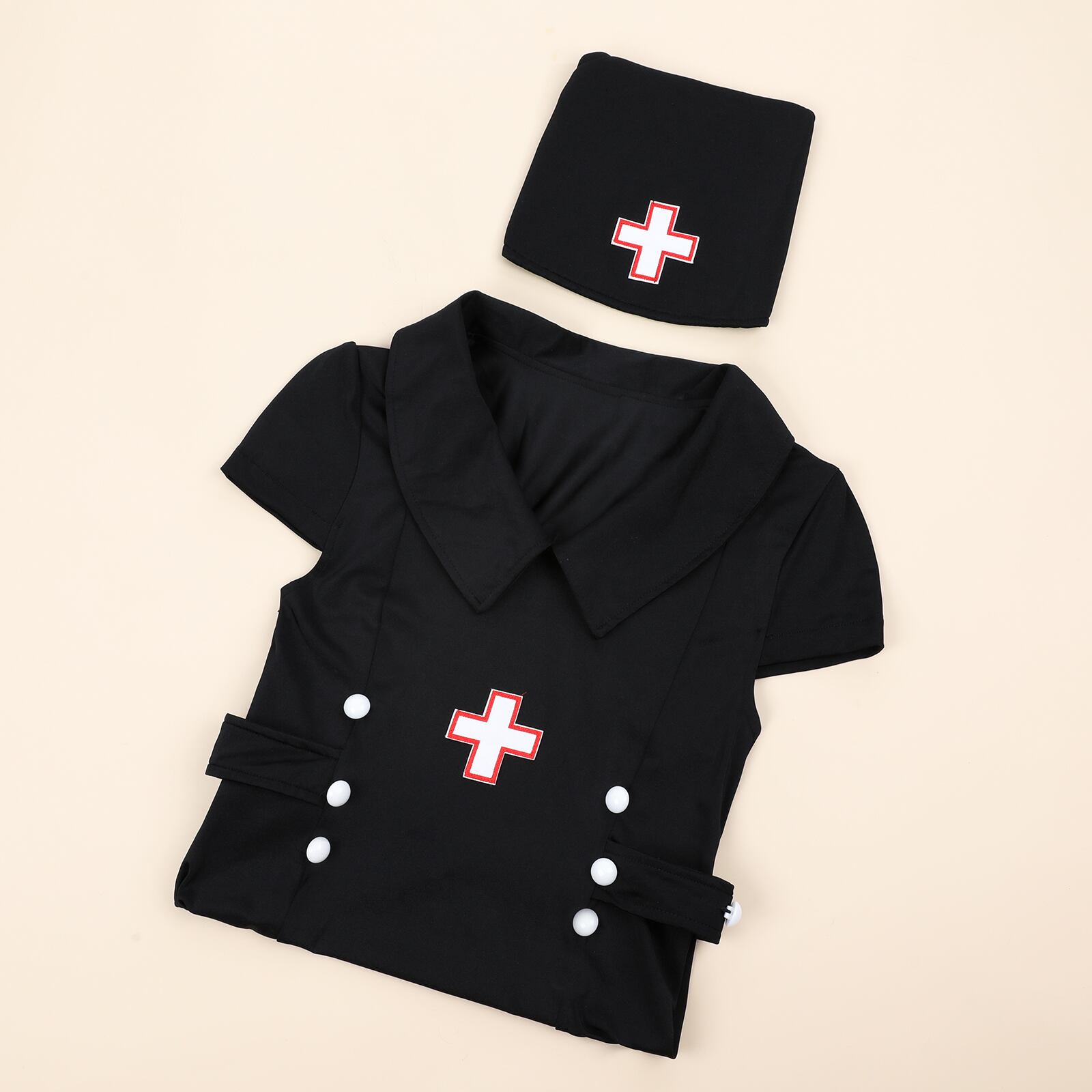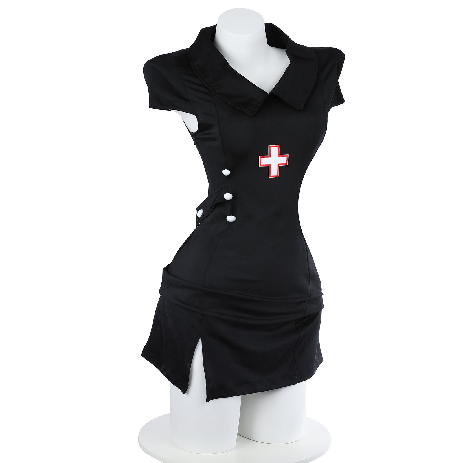 SENMHS セクシー ナース服 コスプレ 制服 セクシー ランジェリー 看護婦 コスチューム ワンピース ナースキャップ 2点セット レディース ブラック ホワイトds208
