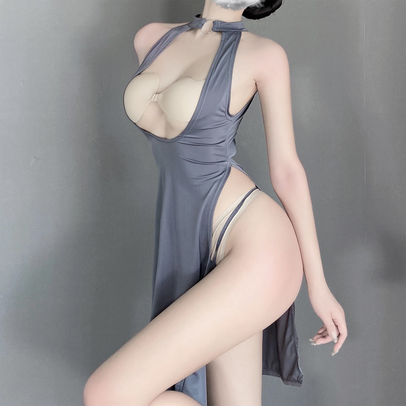 SENMHS チャイナ チャイナドレス チャイナ服 中華 コスプレ セクシー ボディコン エッチ な エロ 過激 アダルト 可愛い 下着 シースルー ランジェリー ベビードール ボンテージ 貧乳 ワンピース レディース グレー ブラック1020