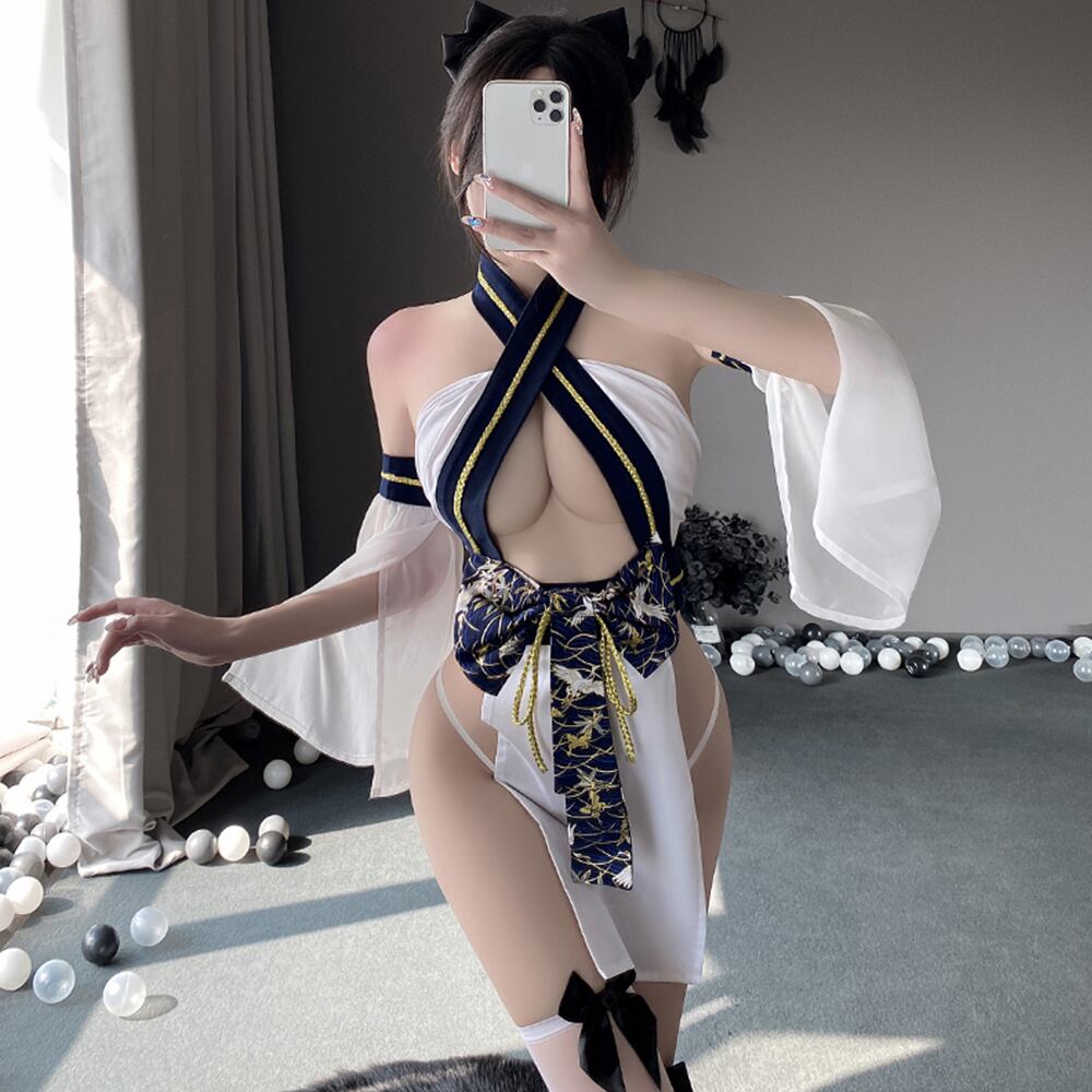 花魁風の和服デザインで、伝統的な和装の美しさとセクシーさが融合。