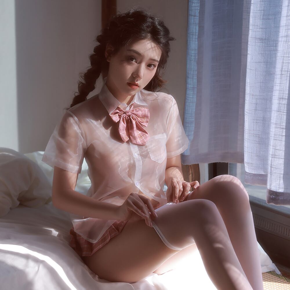 SENMHS コスプレ セクシー セーラー服 シースルー 半袖 透け 制服 女子制服 高校生 学生 女子高生 エロ 可愛い コスプレ コスチューム ミニスカート セクシー 過激 フリーサイズ 半袖トップス・ミニスカート・Tバック ・蝶ネクタイ 4点セット6903