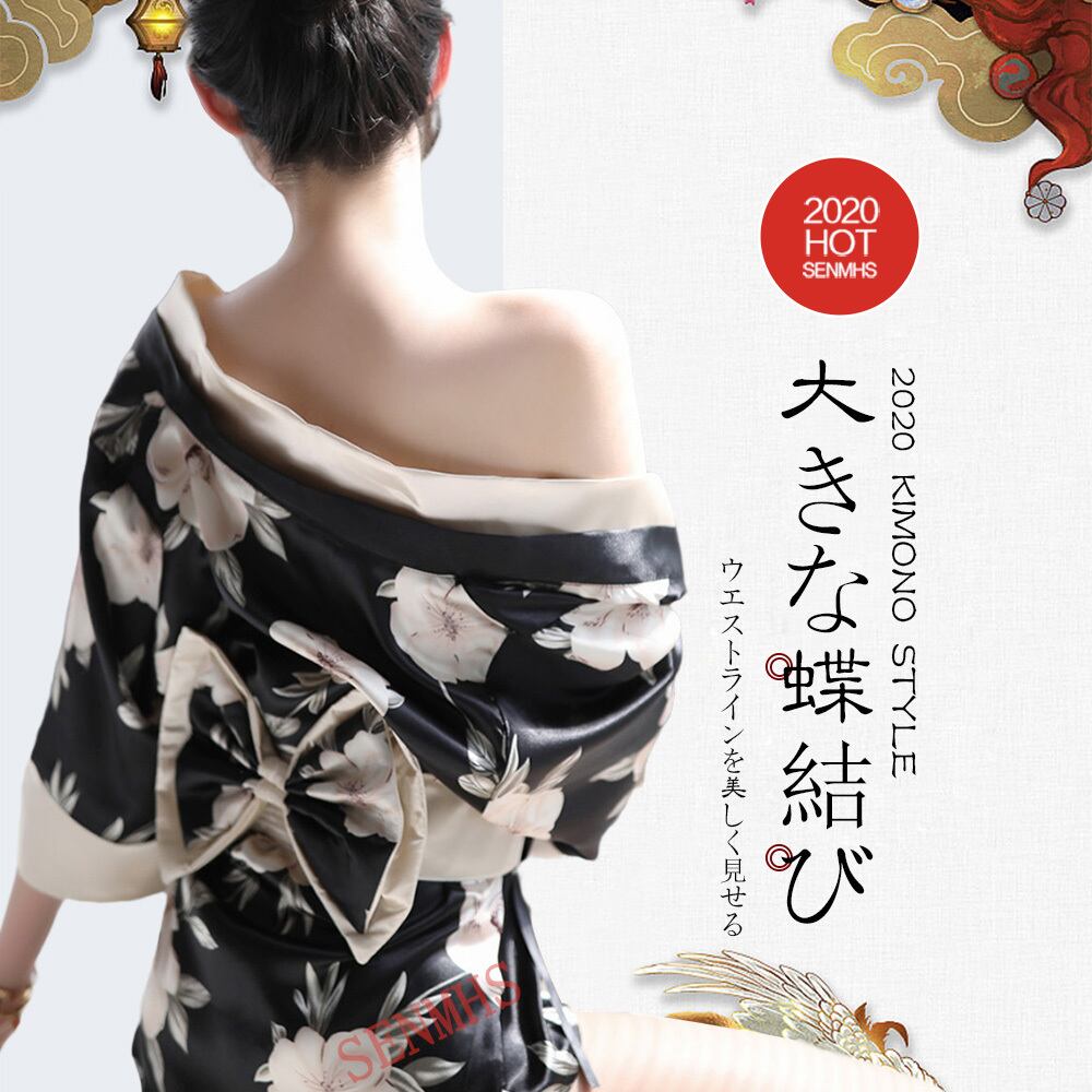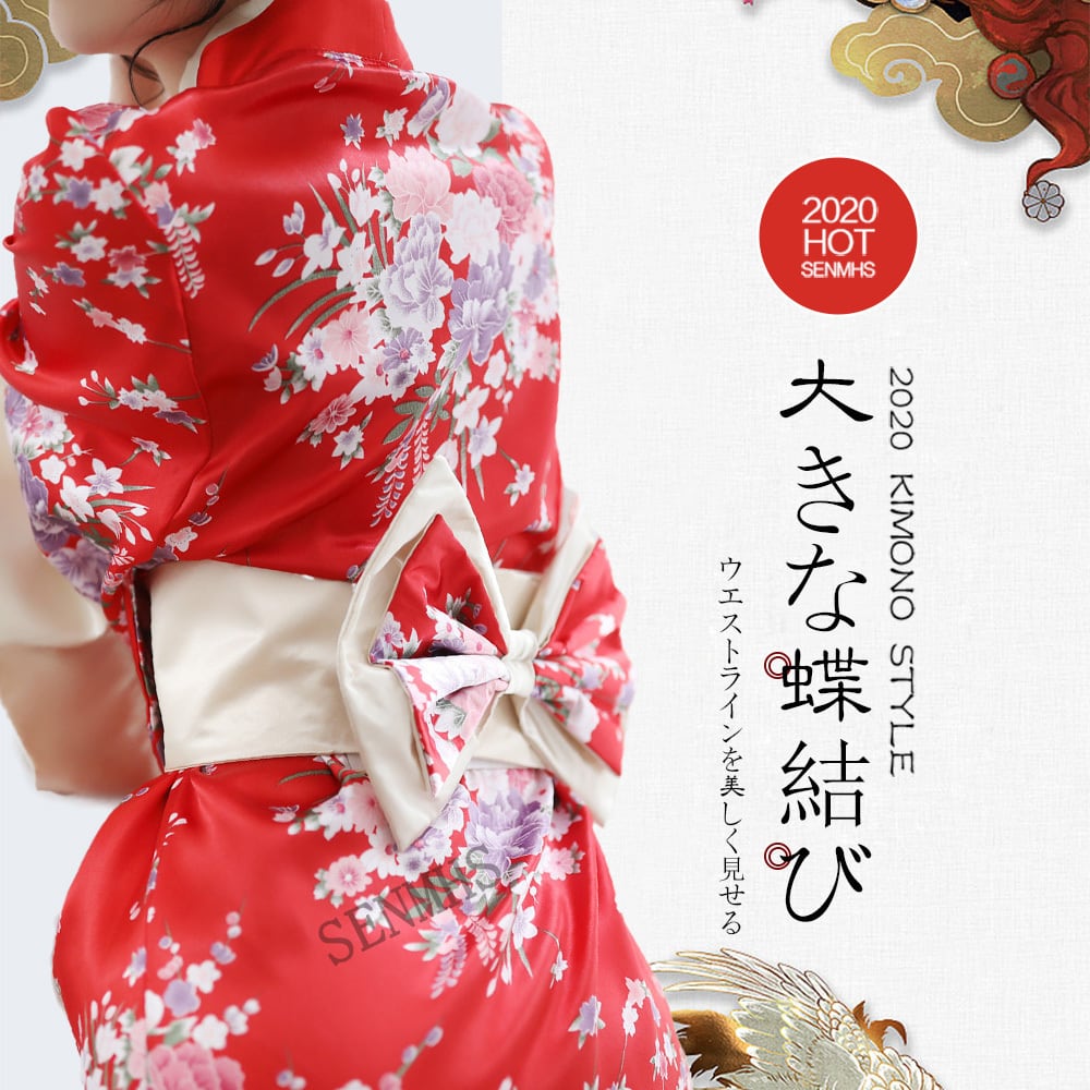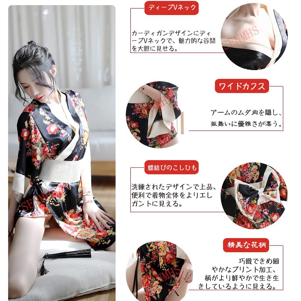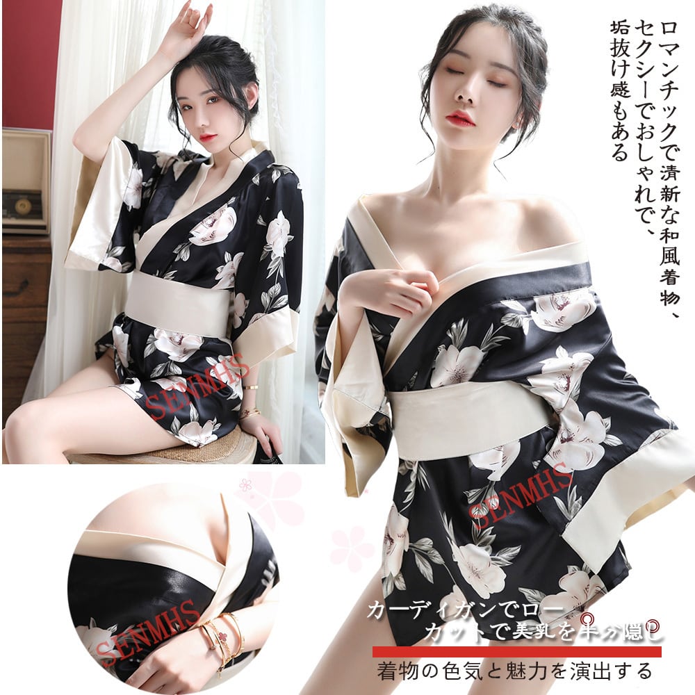 SENMHS浴衣 セクシー コスプレ 花魁 和服 着物 ランジェリー 衣装 女性 和風 和装 コスチューム ベビドール 前開き 花魁 衣装 パジャマ 寝間着 ナイトウェア誘惑 ネグリジェ エロ下着 【ガウン リボンベルト Tバック】3点セット7056