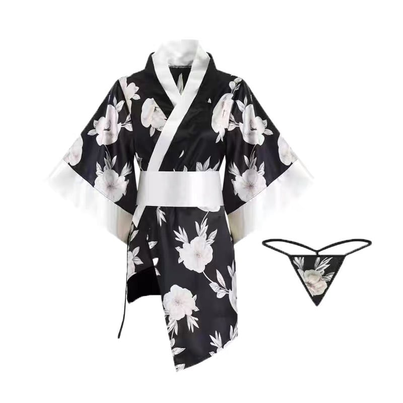■セクシーなガウンを脱げば、そこには大胆な姿! ゴージャスな花柄が美しい、着物風ランジェリー! 艶やかな花魁(おいらん)のような和装コスプレで、しっぽり、しっとりしたいときの特別なイメージプレイに。着物風のガウンを彼女に着せたらアナタはもう、お殿様気分。帯をほどくときに、洋服を脱がせるときの気分とは違って興奮しちゃうかも!