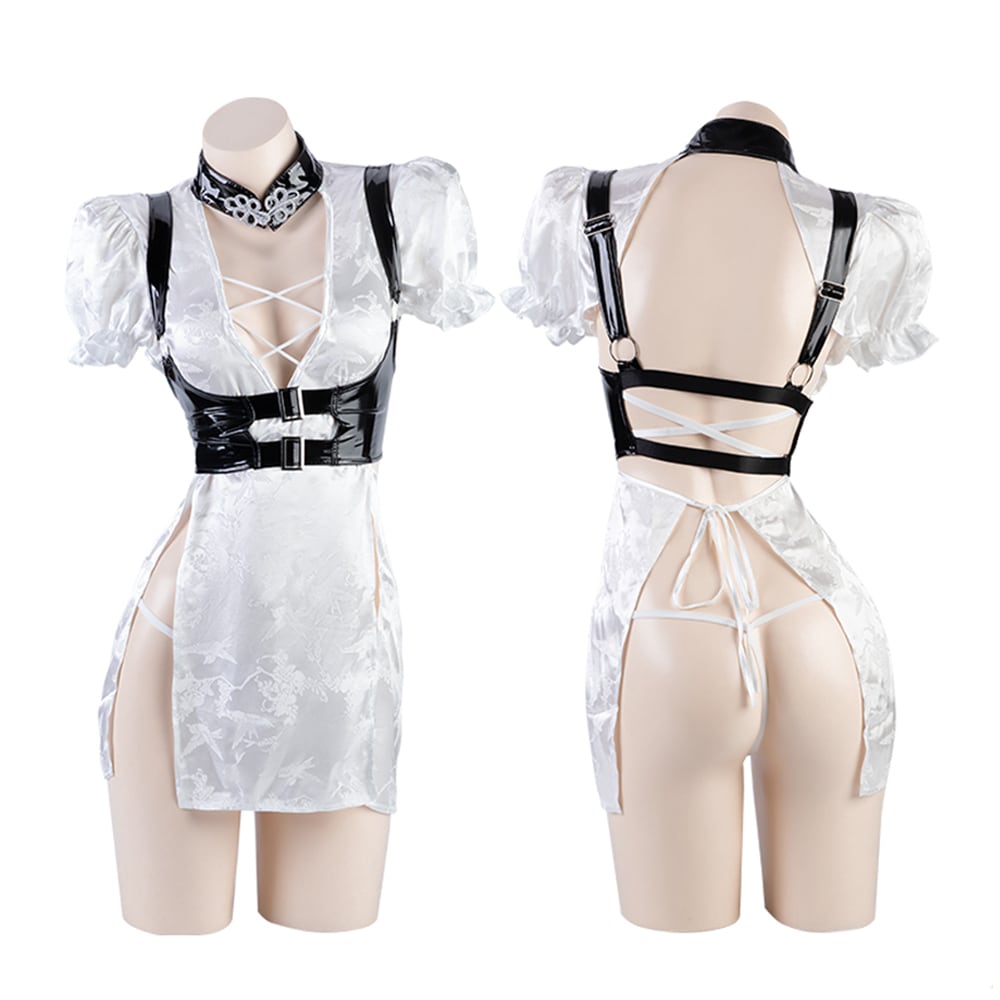 SENMHS メイド メイド服 セット コスプレ コスチューム 胸空き チャイナ チャイナガール エロ 誘惑 過激 下着 萌え フリルセクシー コス 可愛い 萌え ベビードール ランジェリー ホワイト レディース ワンサイズ9173