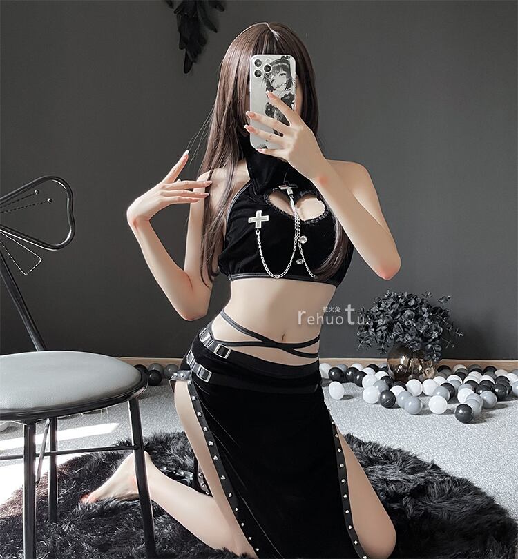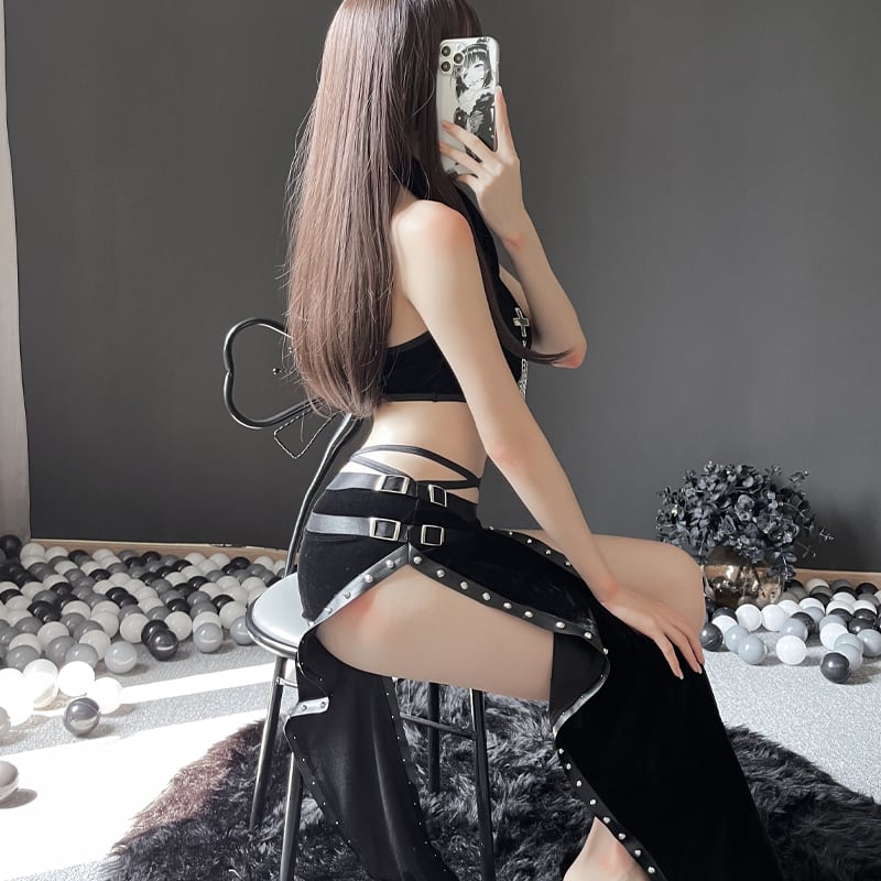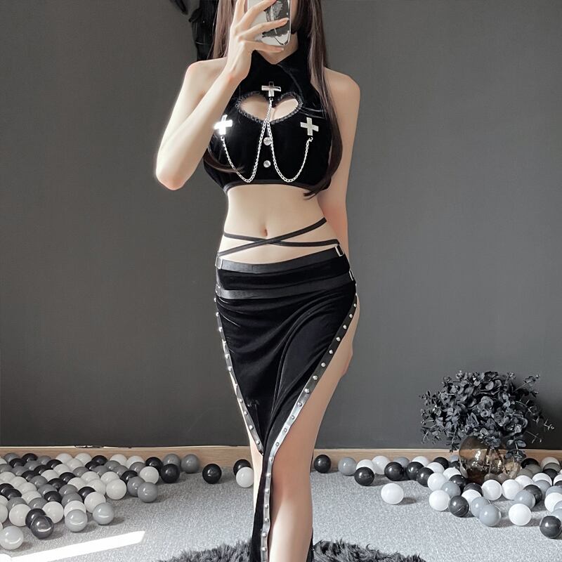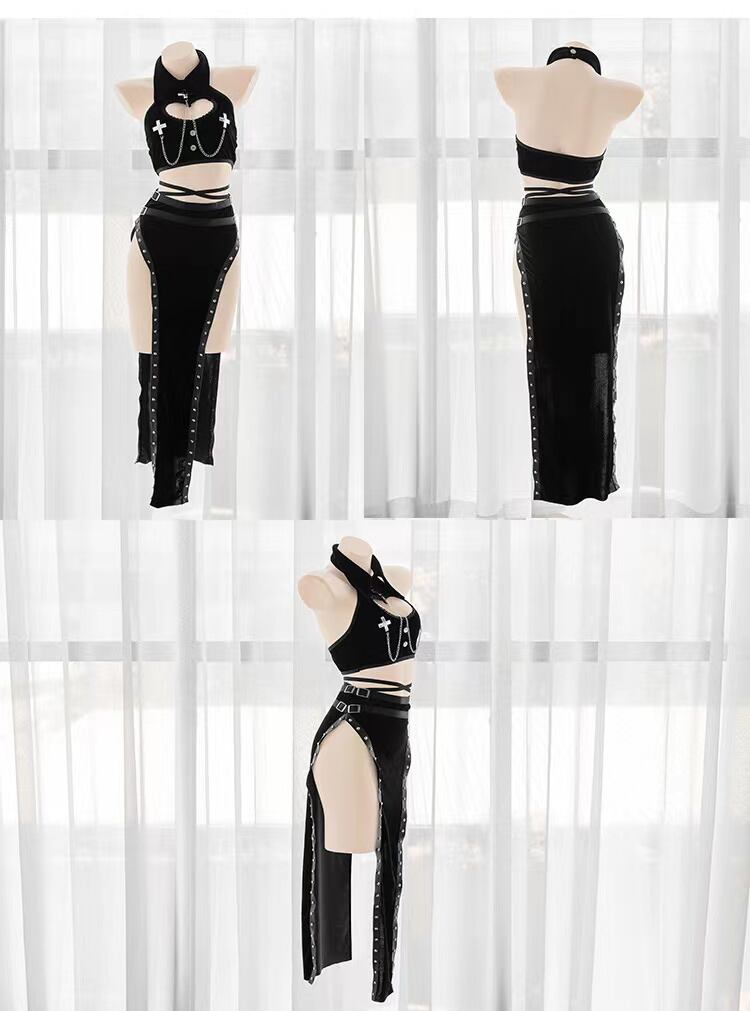 SENMHSコスプレ セクシー チャイナ メイド エロ エッチ な 下着 過激 可愛い 情趣 ボディコン 中華 チャイナドレス チャイナ服 ワンピース ランジェリー ベビードール ロング レディース ストッキング 手袋付き8346