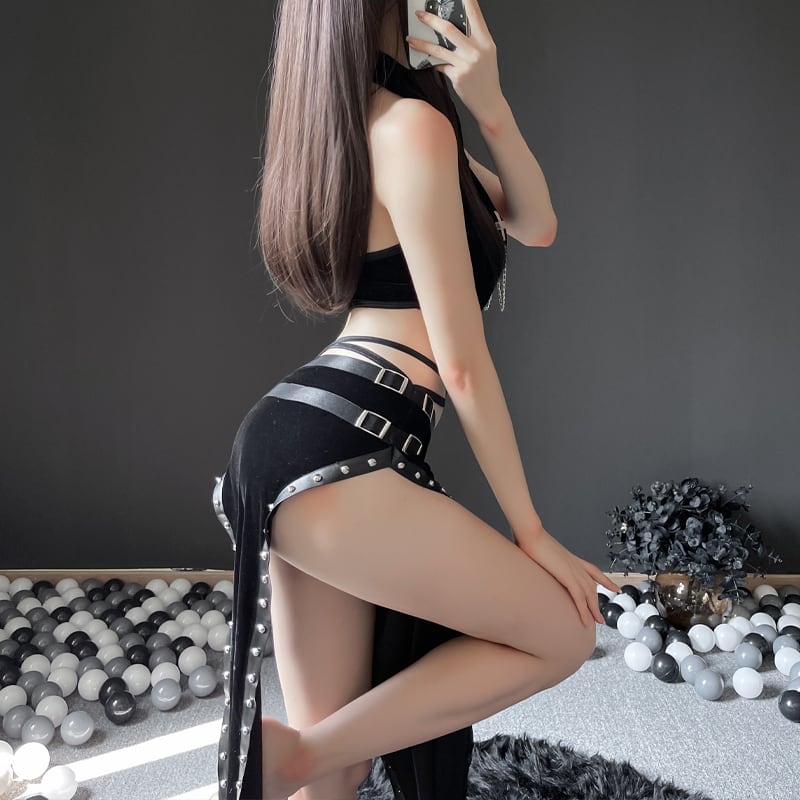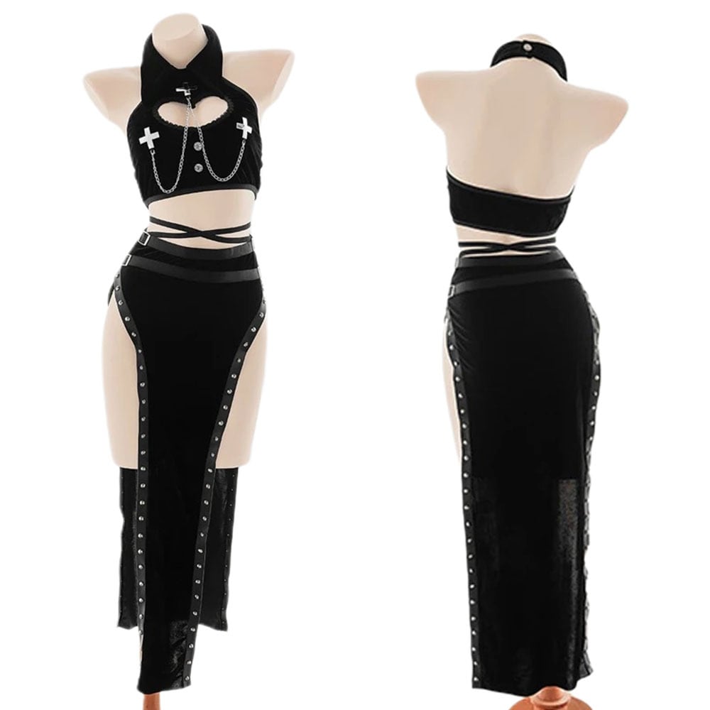 ■シンプルなブラックをベースに、豪華で高級感溢れる洗練されたデザインのチャイナドレス風コスチューム!