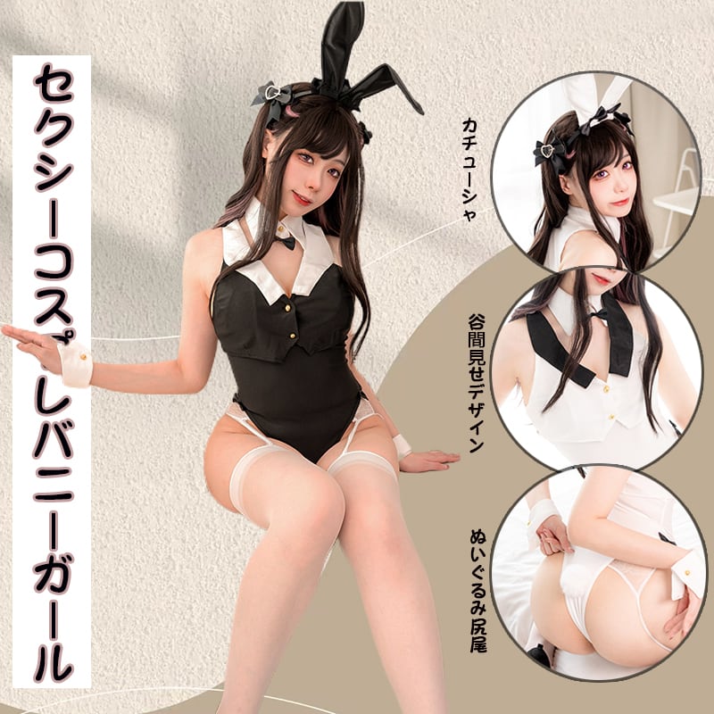 SENMHSコスプレ ランジェリー セクシー かわいい バニー バニーガール うさ耳 うさぎ カチューシャ コス ランジェリー 下着 レディース 可愛いコスプレ 大人 コスチューム ロリータ ブラック ホワイト1603