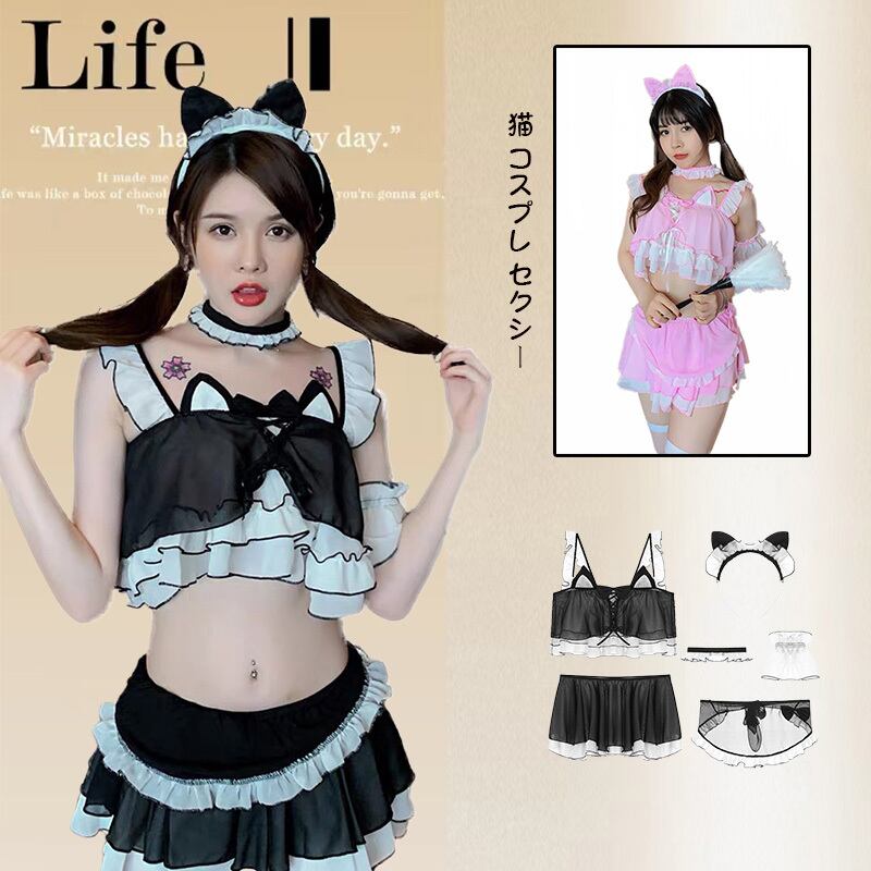 SENMHS 猫コスプレ ランジェリー ベビードール キャット セクシー コスプレ キャット コスチューム 衣装 コスプレ かわいい レディース ハロウィン クリスマス イベント 仮装 大胆 萌え萌え 人気 ネコ耳カチューシャ339