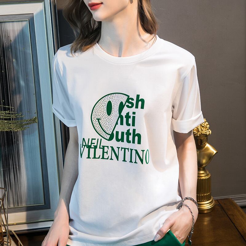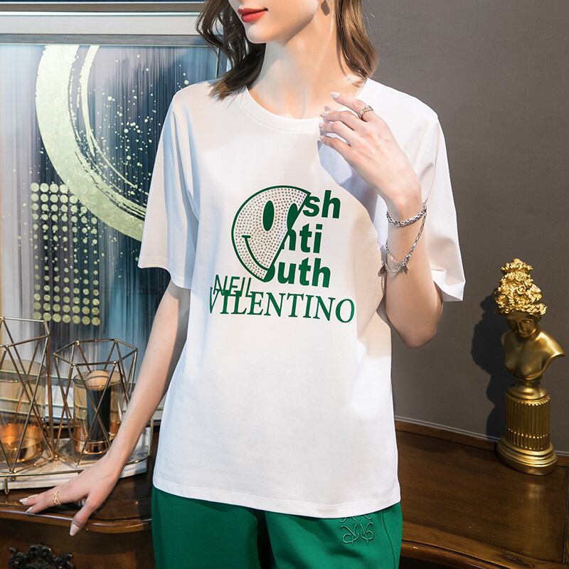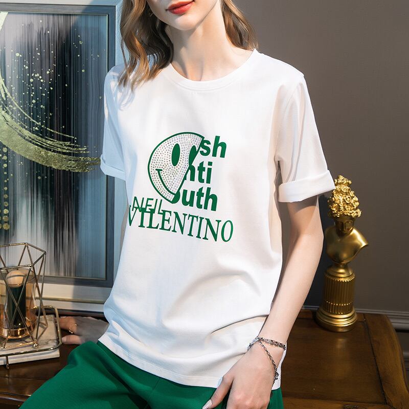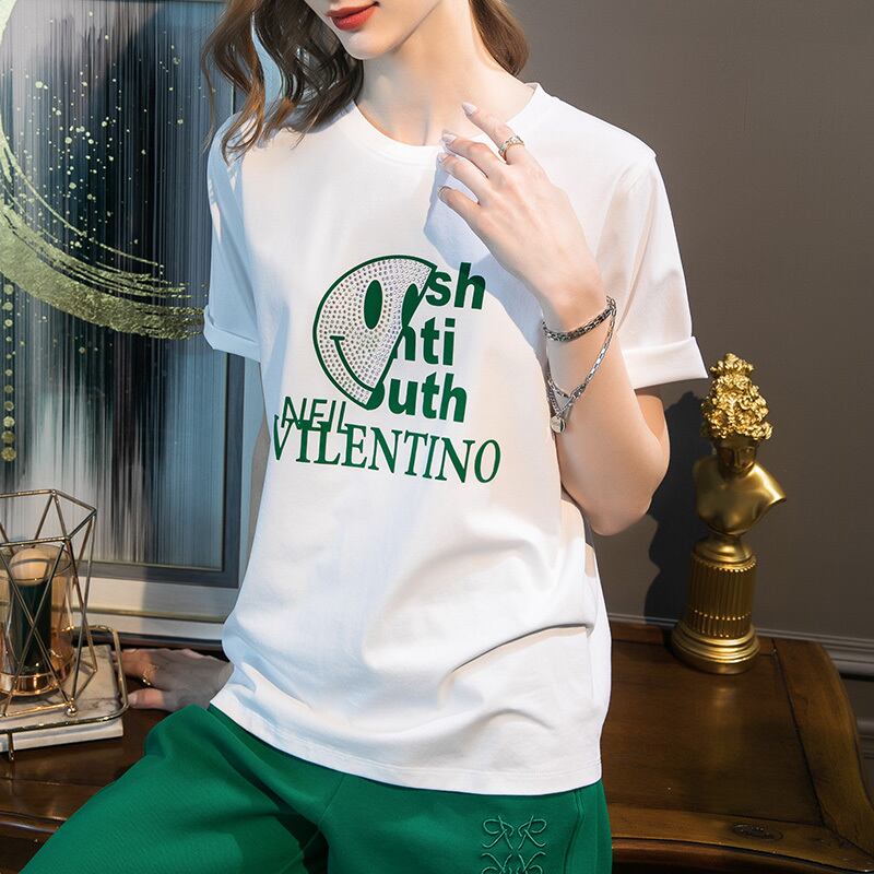 SENMHS Tシャツ 半袖 クルーネック クラシックフィット カジュアル おしゃれ シンプル 無地 トップス ファッション 可愛い ゆったり プリントスポーツ レディース 女性用 春 夏秋 白 緑 2022 新作j535