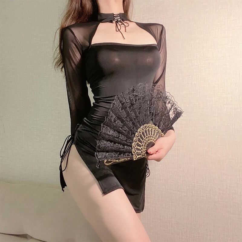 SENMHS セクシー チャイナ コスプレ ベビードール チャイナドレス風 チャイナ服 パジャマ 可愛い ランジェリー 透け透け スリップ シースル チャイナドレス 透明 セクシー寝間着7990