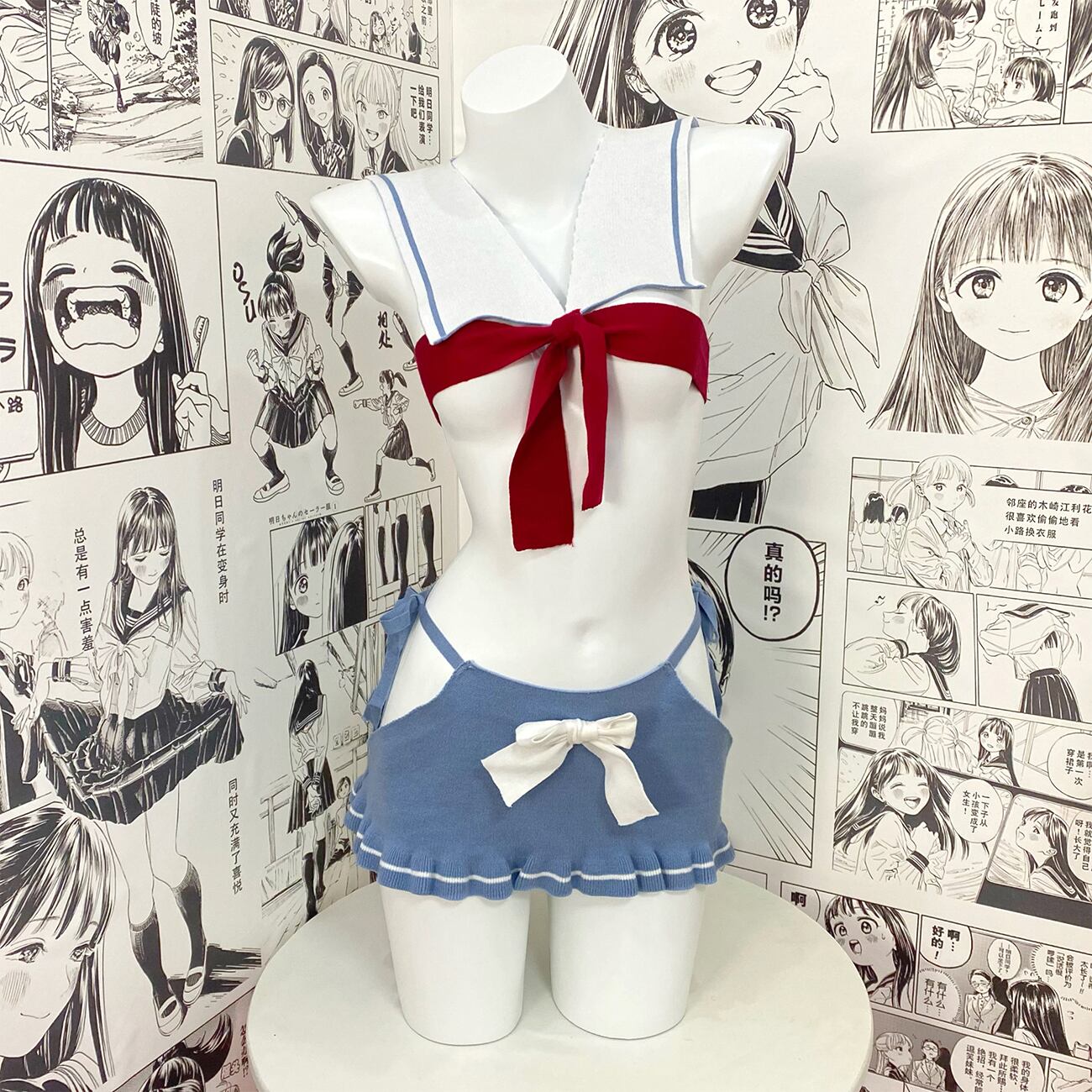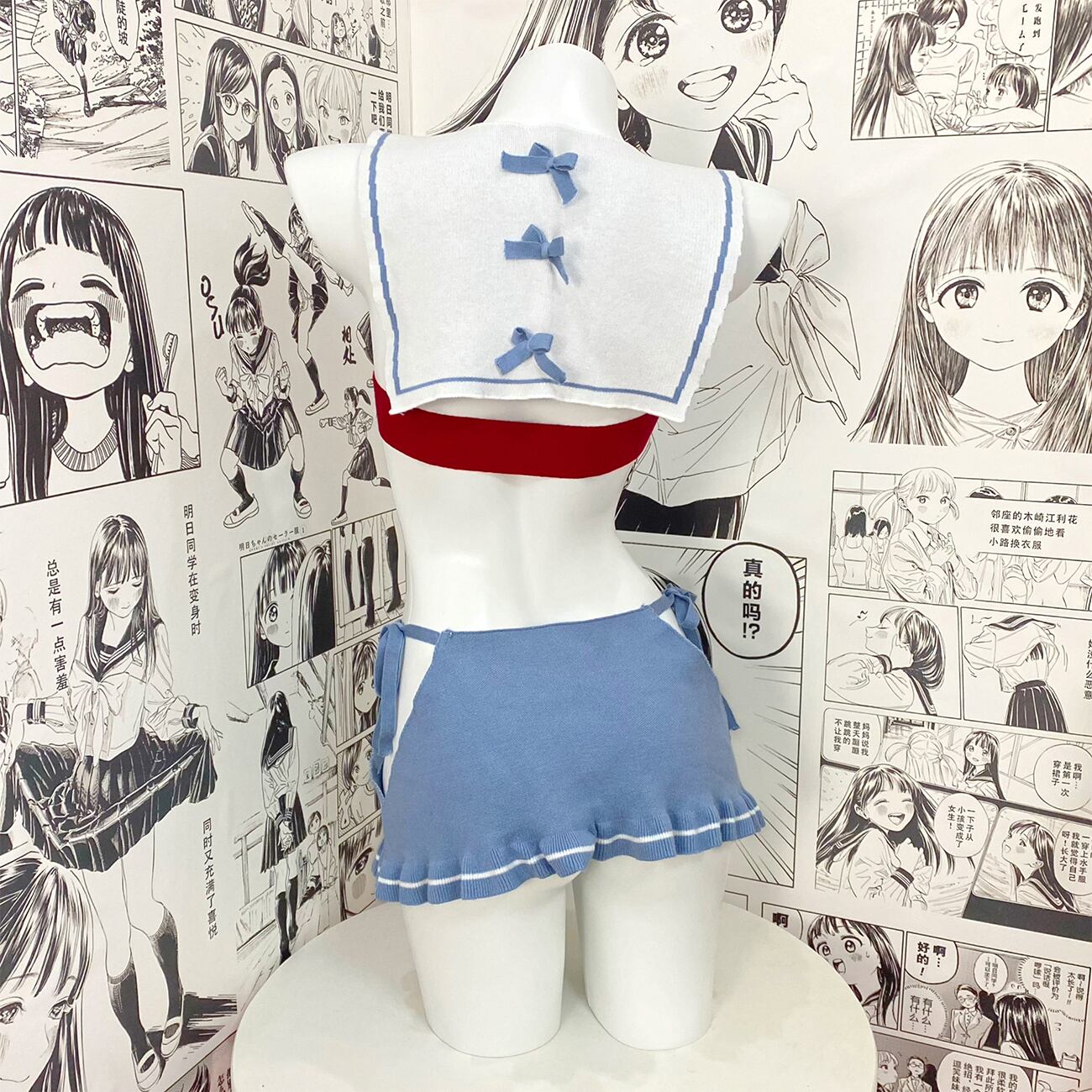 SENMHS 童貞を殺すセーター ロリータ ニット 編み上げ 背中 胸 開き エロ 可愛い 誘惑 調教 過激JK セーター セクシー おもしろ 団子少女風 コスプレ コスチューム パーティー 変装 仮装 撮影 レディース ブルーsq350