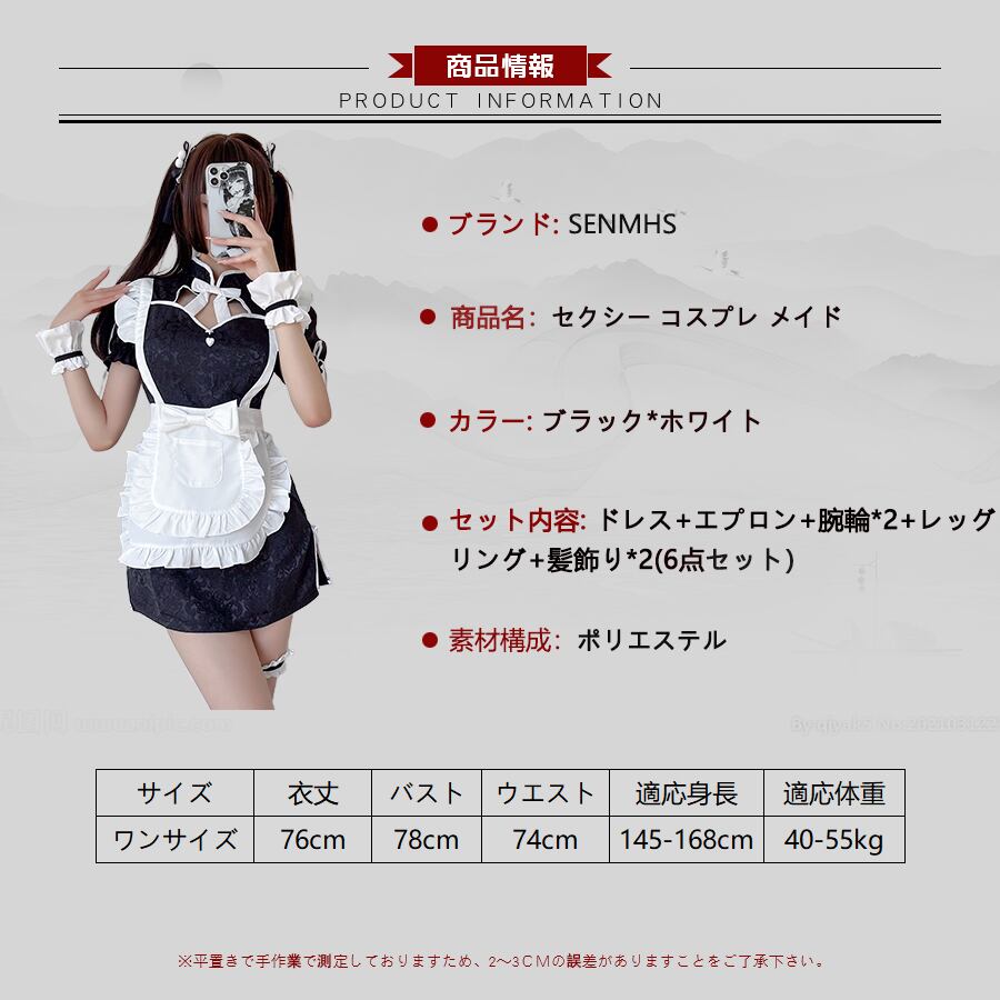 SENMHS セクシー コスプレ メイド メイド服 チャイナ チャイナドレス 胸空き エロ 誘惑 過激 下着 萌え フリル 可愛い ワンピース ミニ コスチューム ハロウィン レディース ワンサイズ ホワイト ブラック8382