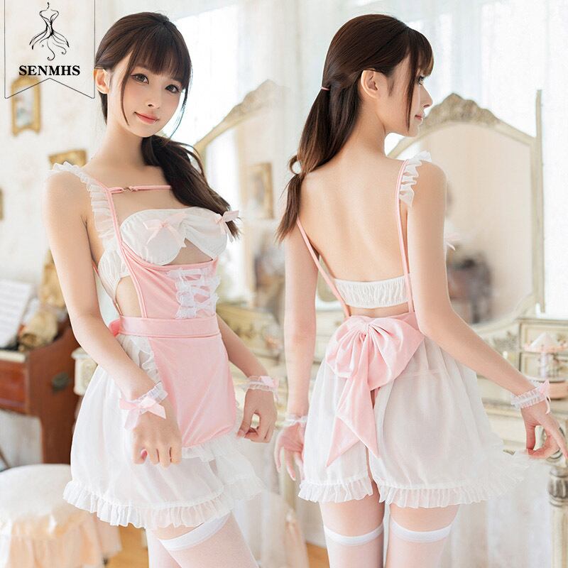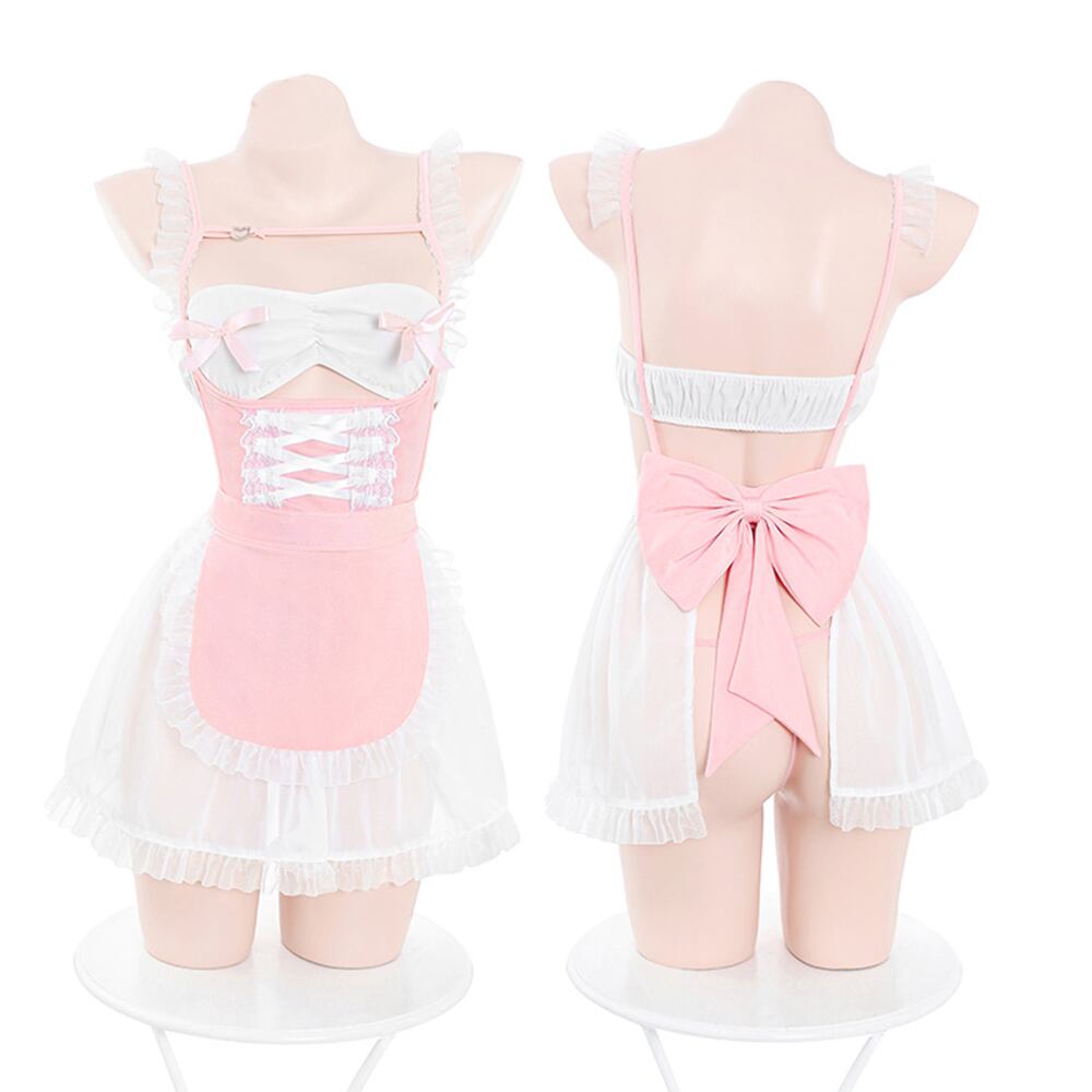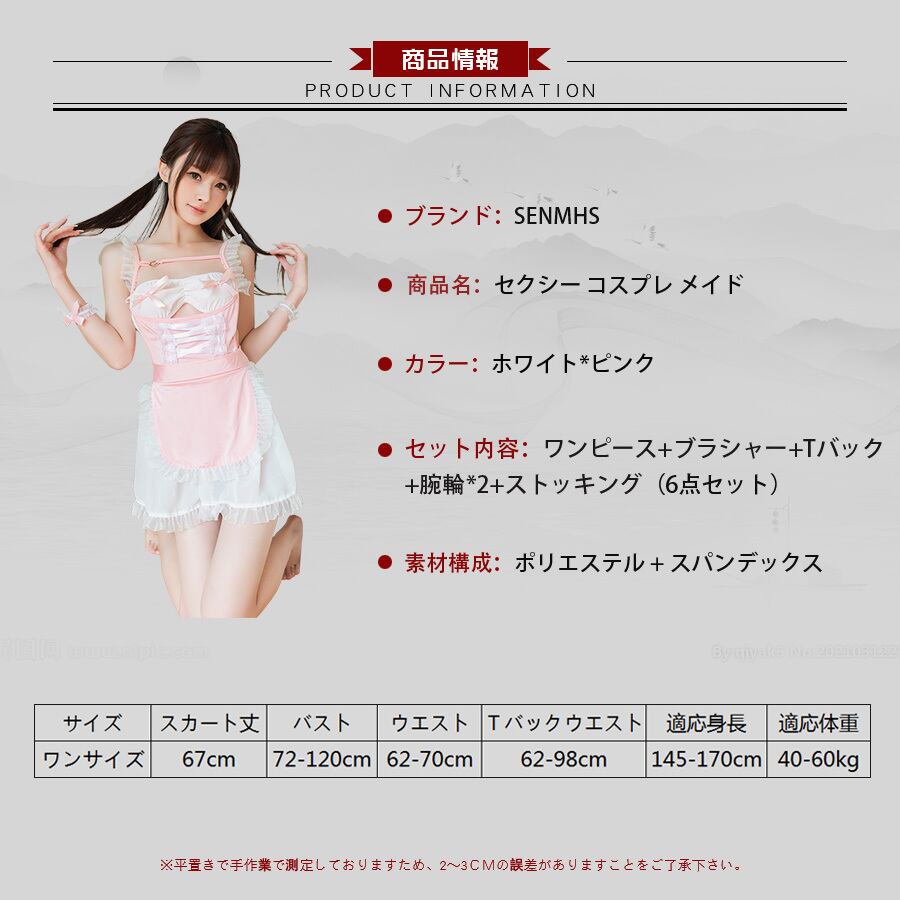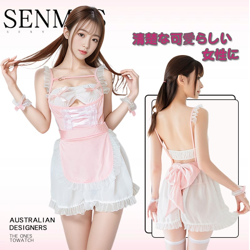 SENMHS セクシー メイド コスプレ メイド服 セット コスチューム エロ 誘惑 過激 下着 萌え フリル コス すけすけ エプロン 可愛い 萌え ベビードール ランジェリー ピンク レディース ワンサイズ6742