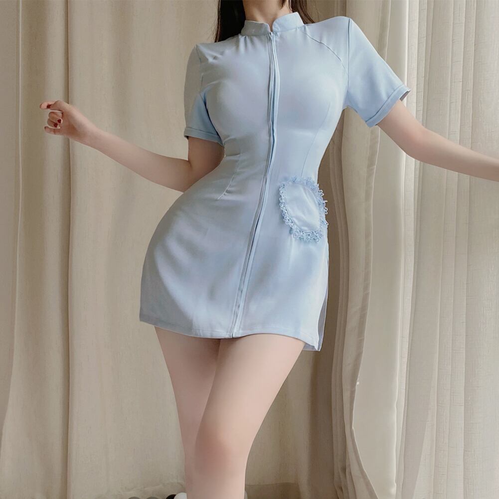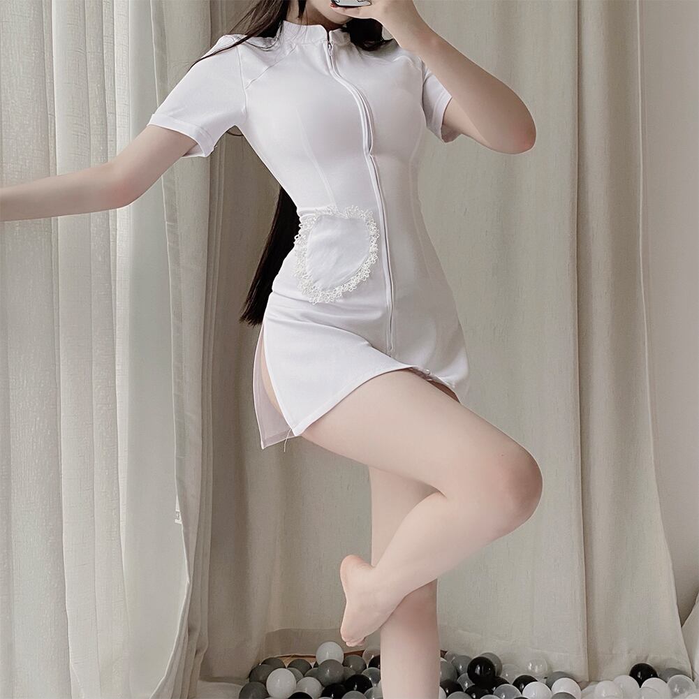 ■目を引くのが少し動くだけでみえてしましそうな丈感のワンピースはパートナーの興奮を煽ること間違いなし。伸縮性がある生地はボディラインを露にし、フロントジッパーではだけ具合を楽しめる珍しいデザインです。過度な露出も少ないのでコスプレ初心者さんでも挑戦しやすいアイテムです。