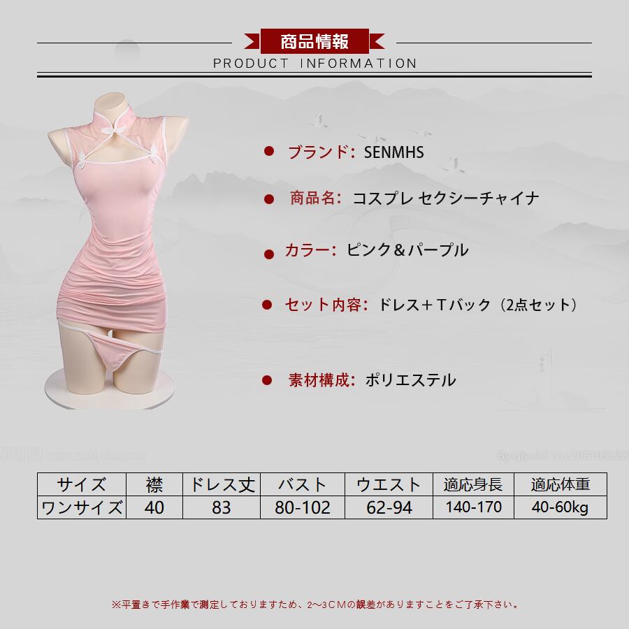 SENMHS チャイナ チャイナドレス セクシー コスプレ エロ 過激 エッチ な えろい ボディコン チャイナ服 ランジェリー シースル 下着 ワンピース コスチューム ドレス 可愛い レディース ピンク パープル7028