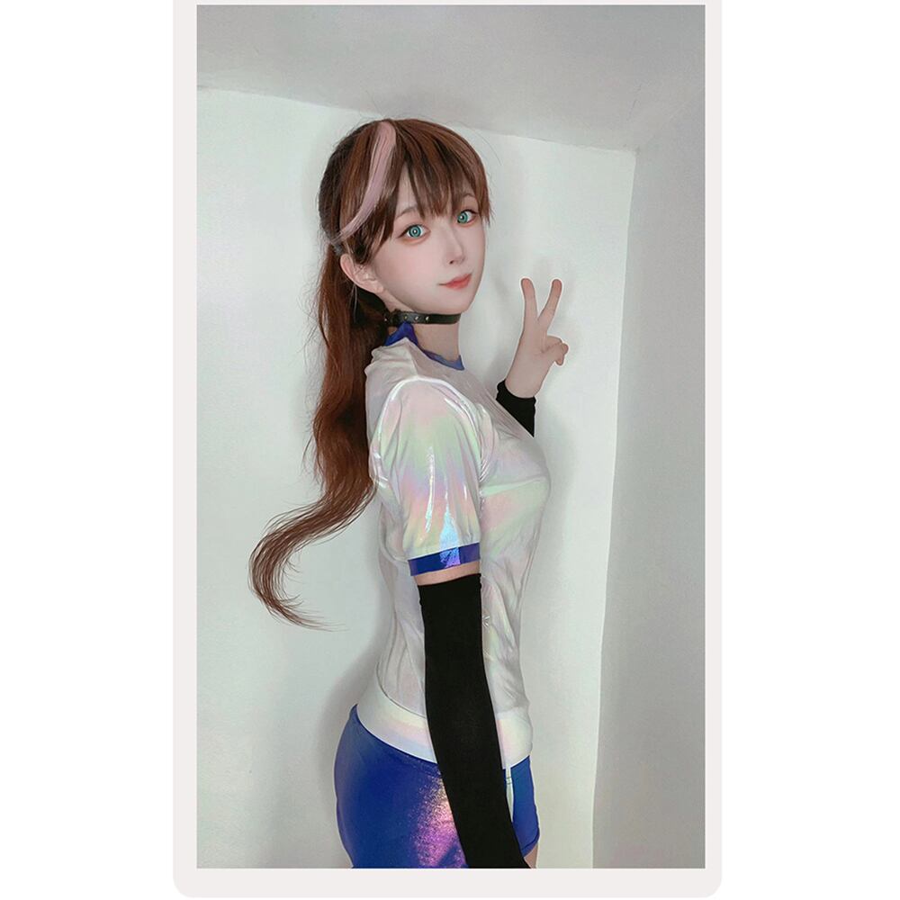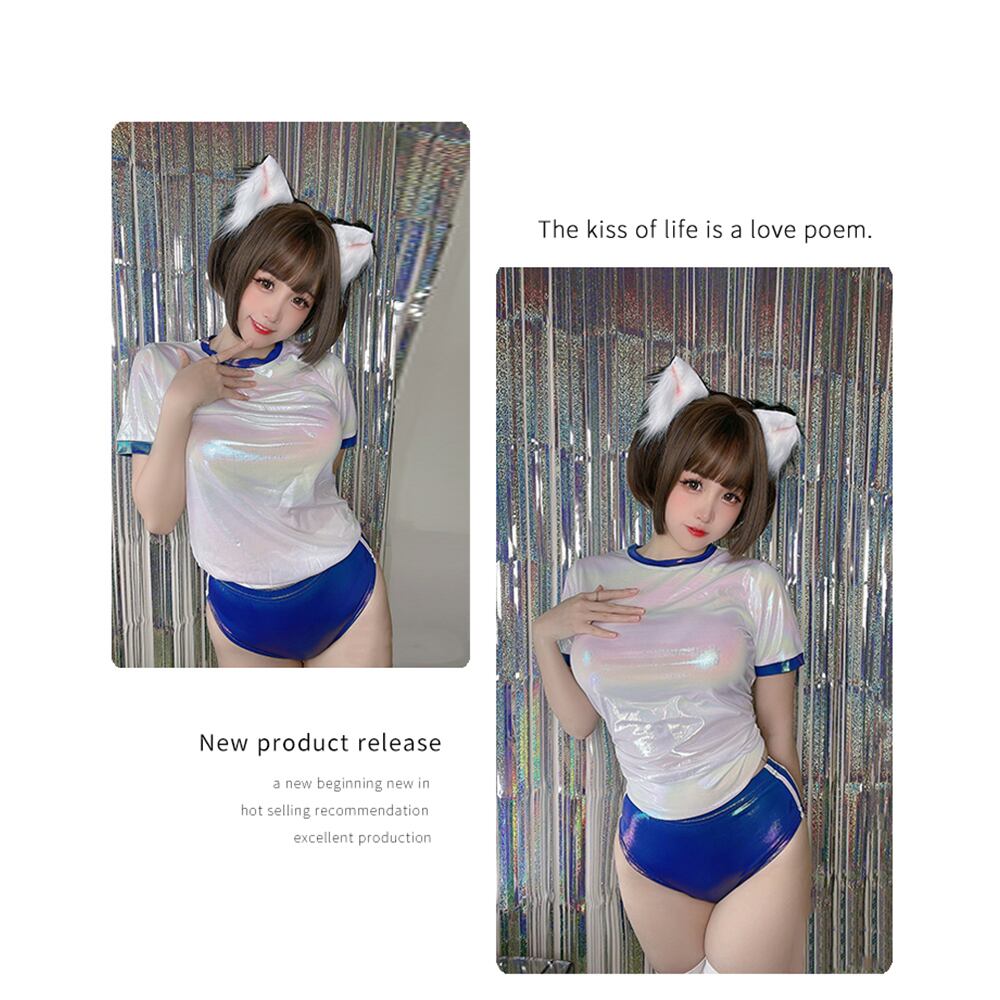 SENMHS セクシーブルマ 体操着 コスプレ 体操服 チアガール スポーツ スク水 スクール水着 競泳水着 極薄水着 レオタード ハイレグ 女子高生 コスチューム レディース ハロウィン イベント 余興 宴会 仮装 上下セット 付き ニーハイストッキング081