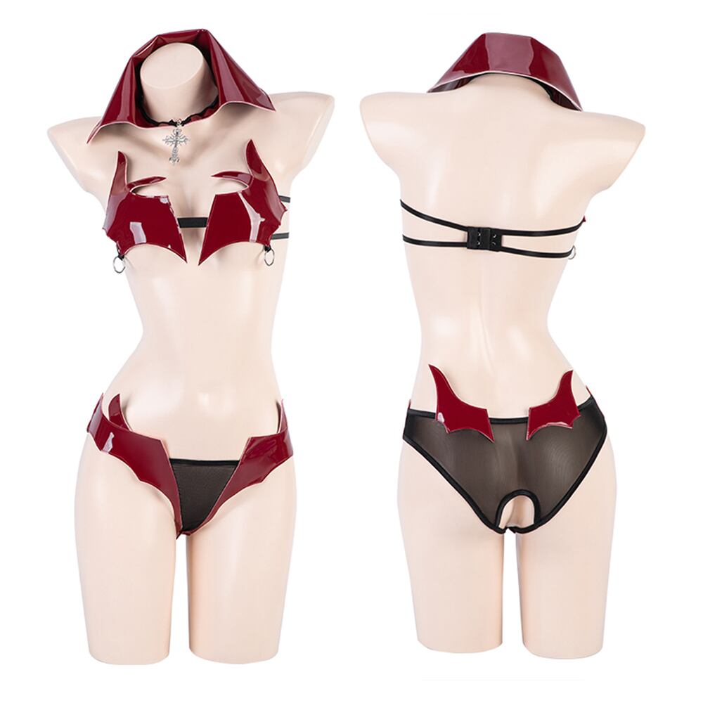 ■お色気たっぷり!超セクシーなレッドデビルに変身できるボンテージ風コスチューム。 バックの翼、ミニトップに魅惑のボディライン